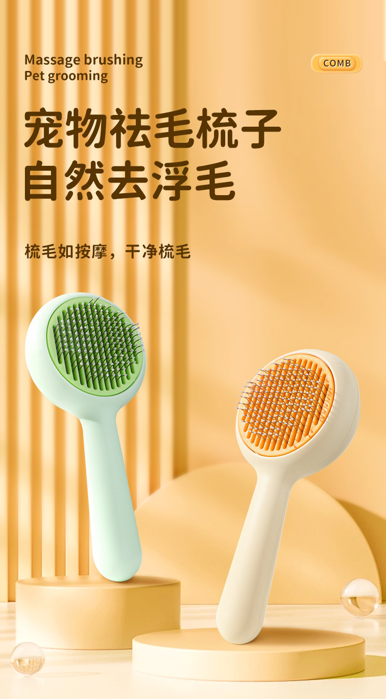 Hawo sikat rambut kecantikan kucing dan anjing, sisir pemodelan penghilang rambut satu klik sisir jarum rambut mengambang sisir pijat hewan peliharaan sisir pembersih diri