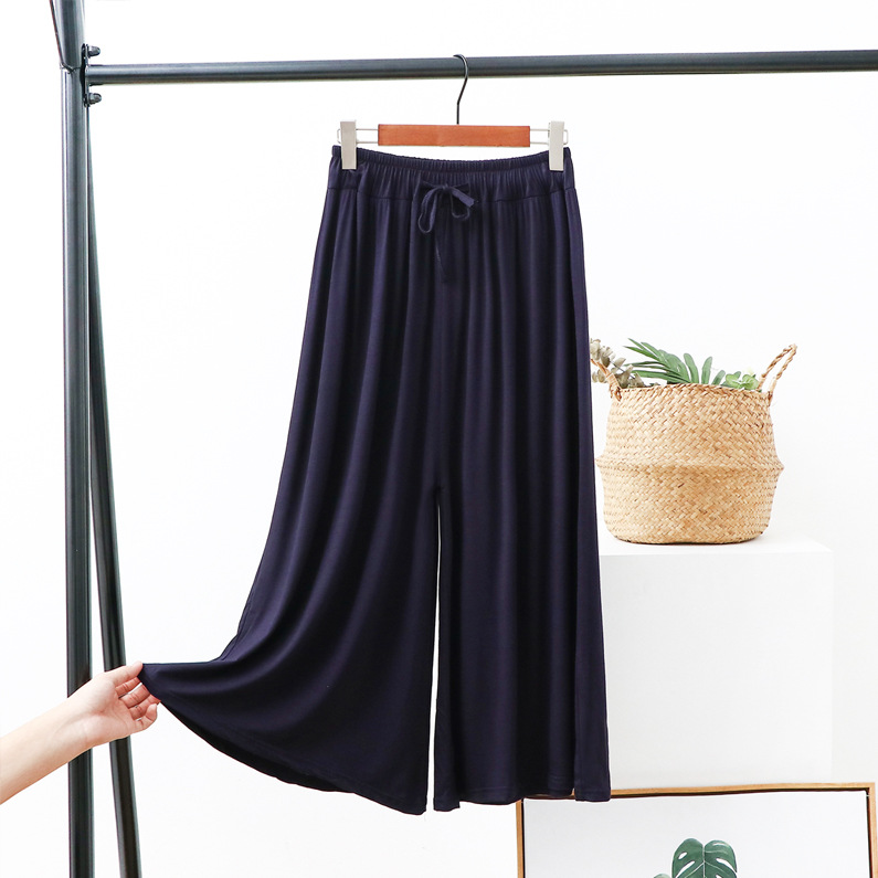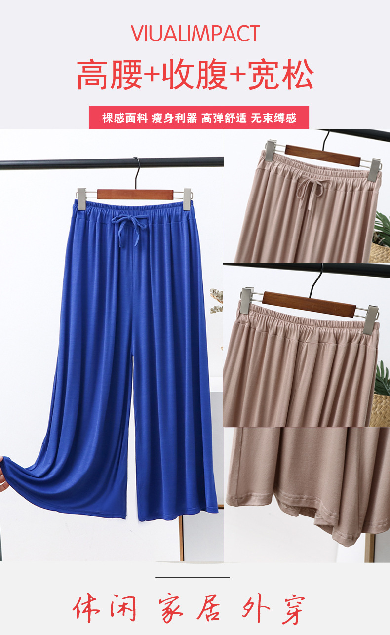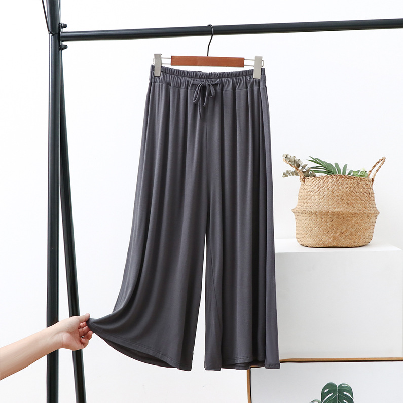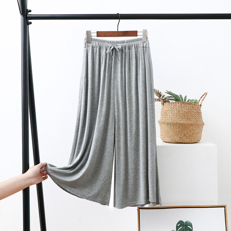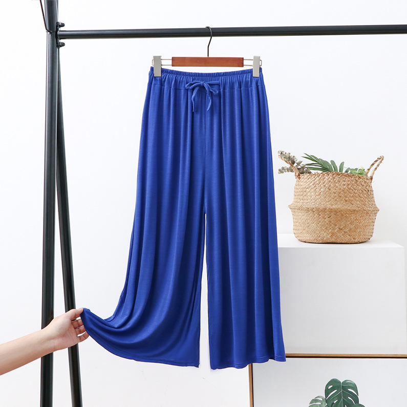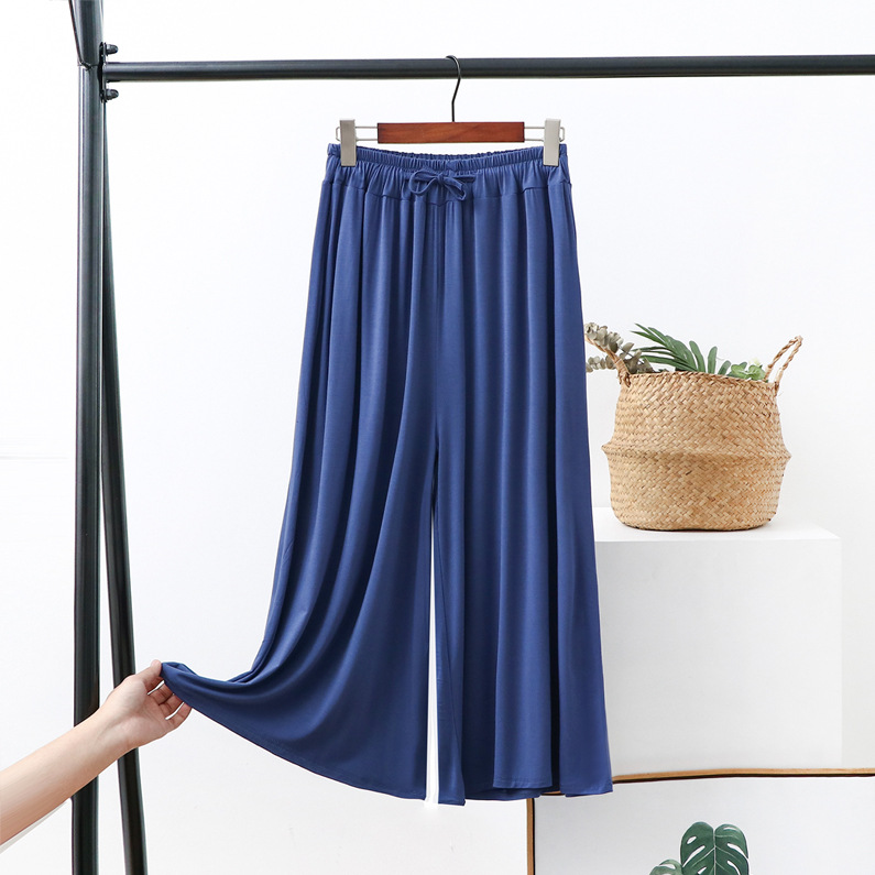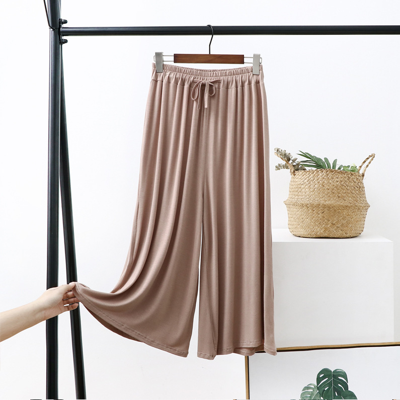 Celana potong kaki lebar wanita, celana kasual ukuran plus longgar baru musim panas tali serut tipis celana potong modal