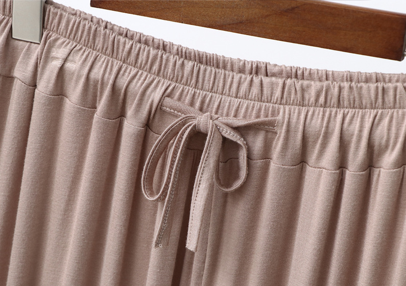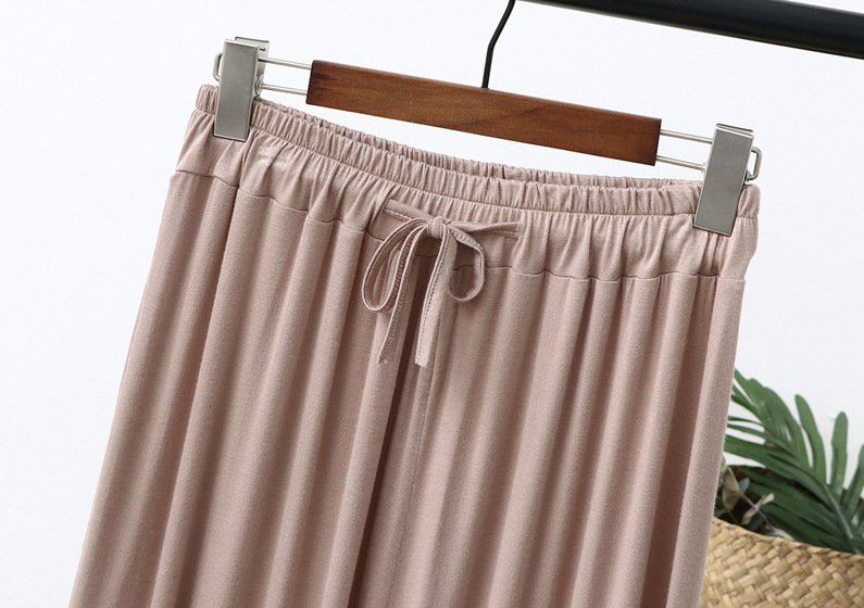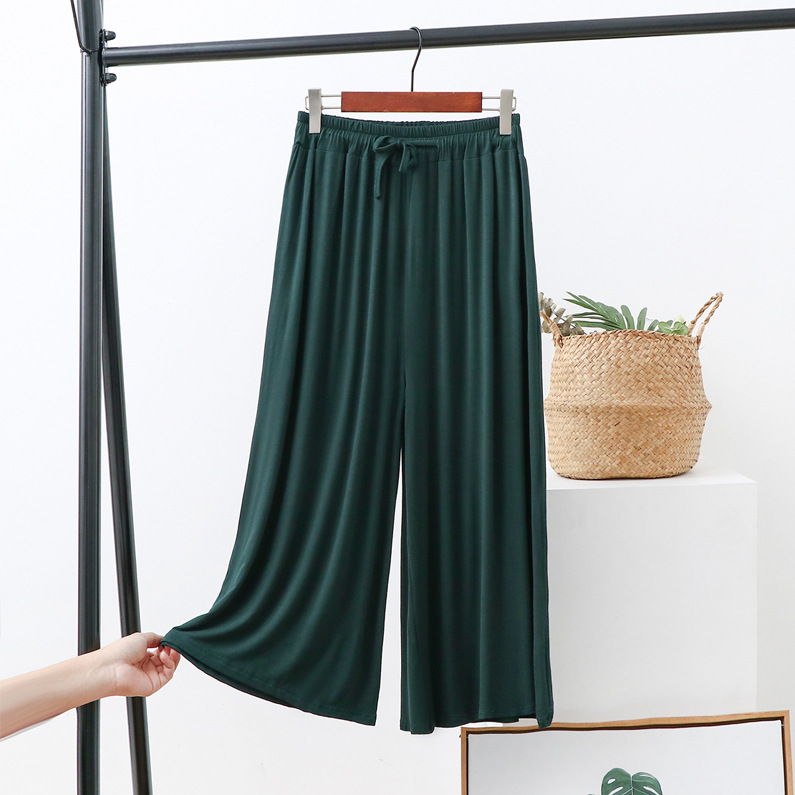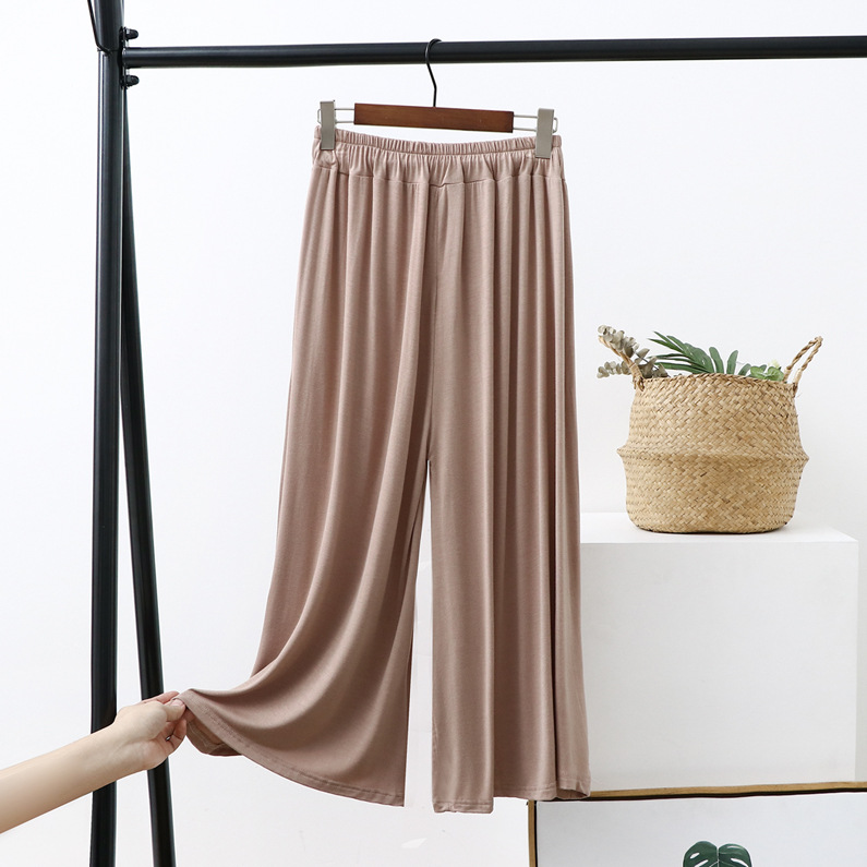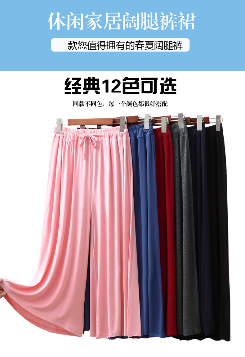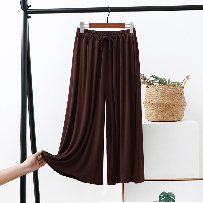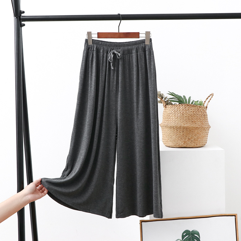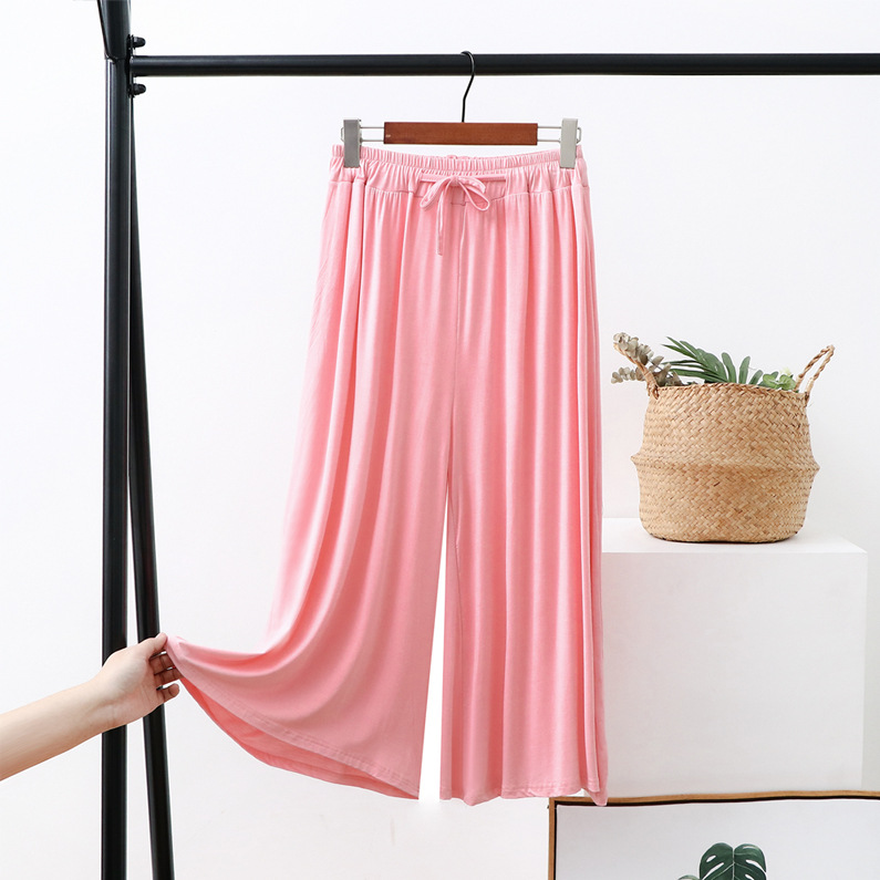 Celana potong kaki lebar wanita, celana kasual ukuran plus longgar baru musim panas tali serut tipis celana potong modal