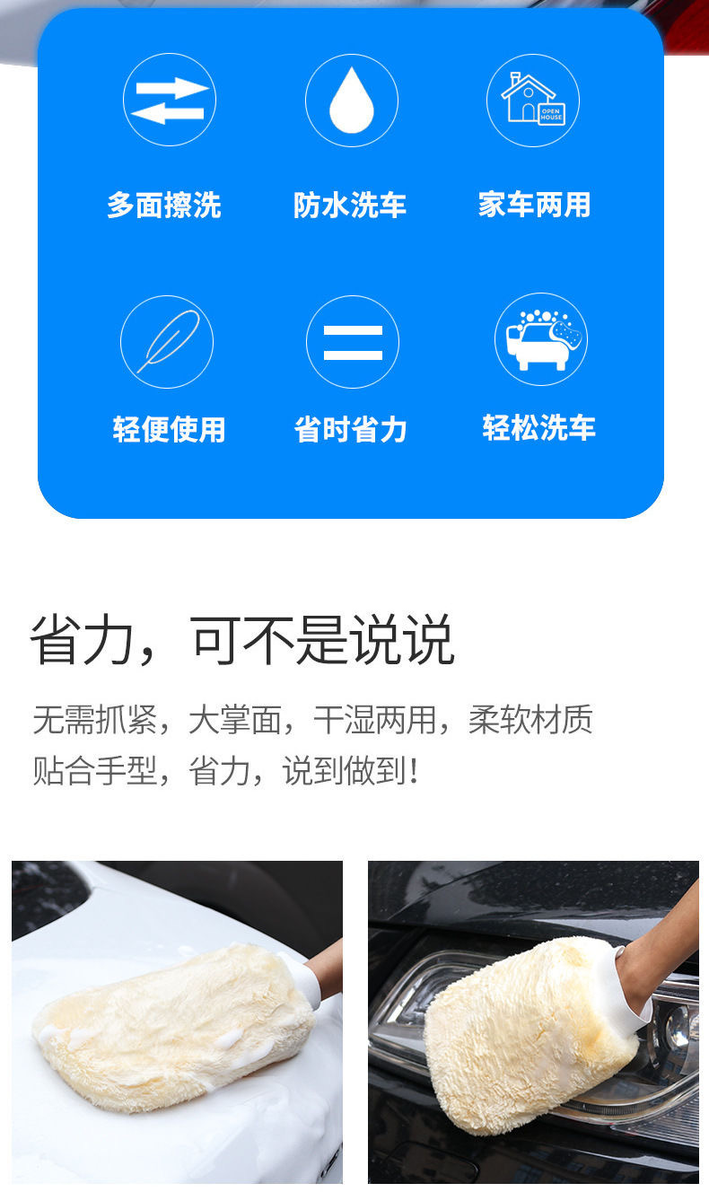 Sarung tangan cuci mobil, wol tebal Membersihkan Mobil, sarung tangan waxing mobil, sarung tangan beruang telapak tangan, alat pembersih kain