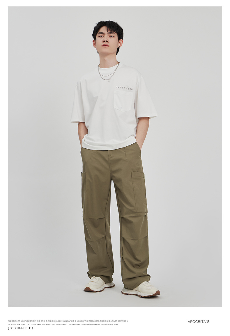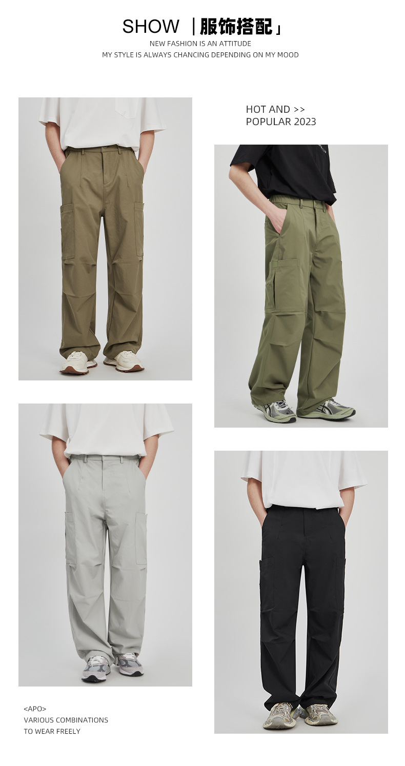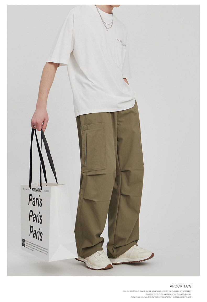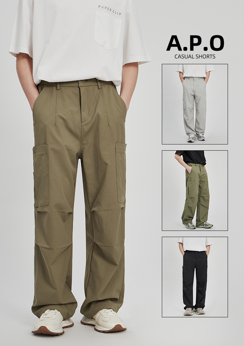 APO Pakaian Pria | Celana Kargo Penerjun Payung Lurus Longgar Trendi Celana Panjang Kasual Luar Ruangan Khusus Lintas Batas Pria