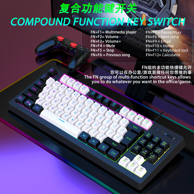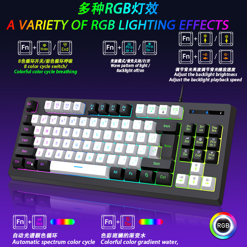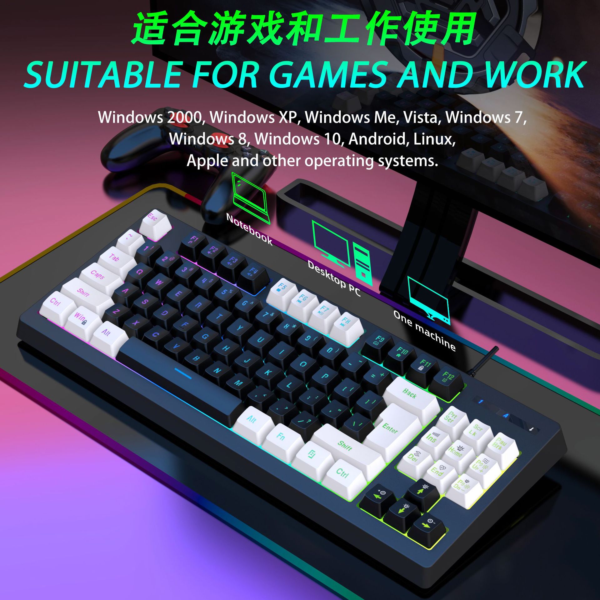 Keyboard gaming berkabel G69 dengan nuansa mekanik, pencahayaan RGB e-sports, 87 tombol, untuk komputer, kantor, penggunaan di rumah, USB, tersedia di luar negeri.