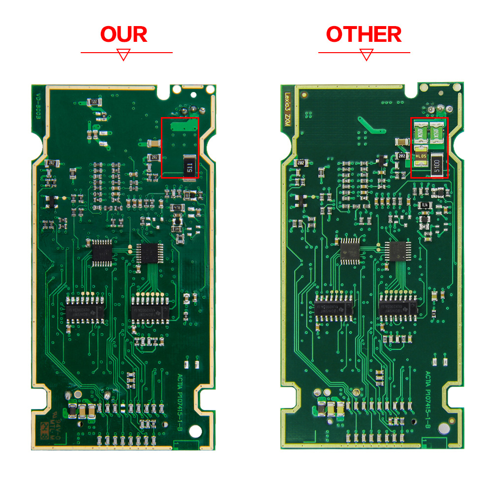 5. Lexia-3 PCB edge is golden with full chips.Double PCB has 7pcs optocouplers, which are new.