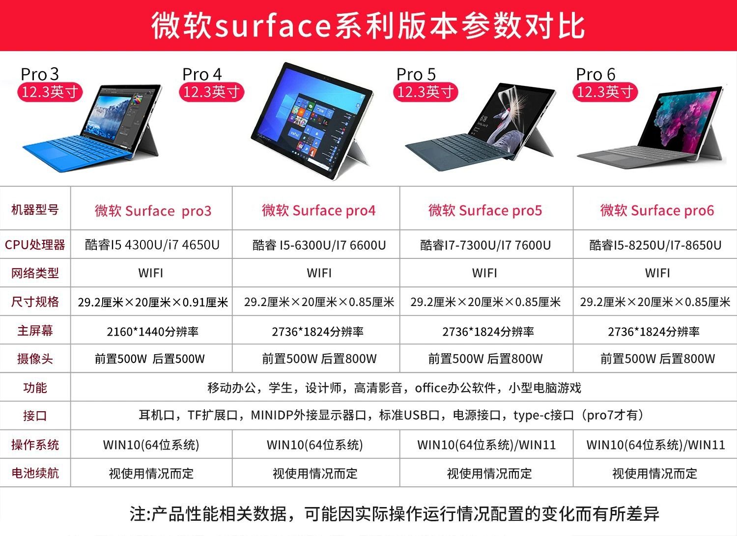 Tablet laptop 2-in-1 Surface Pro 3/4/5 12,3 inci