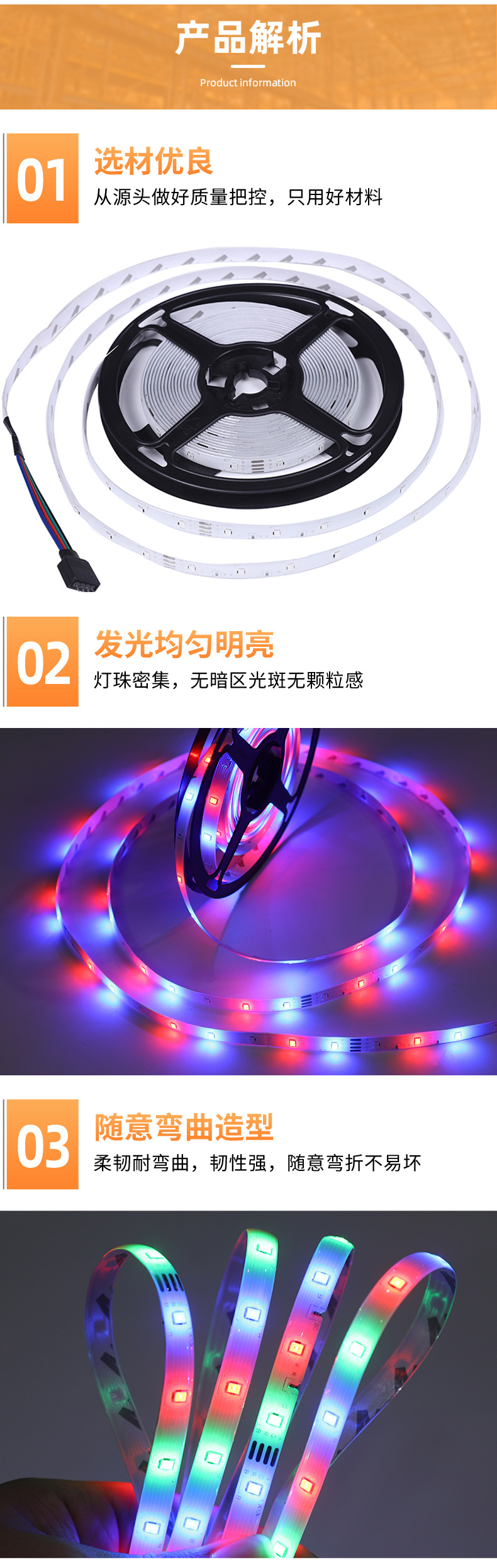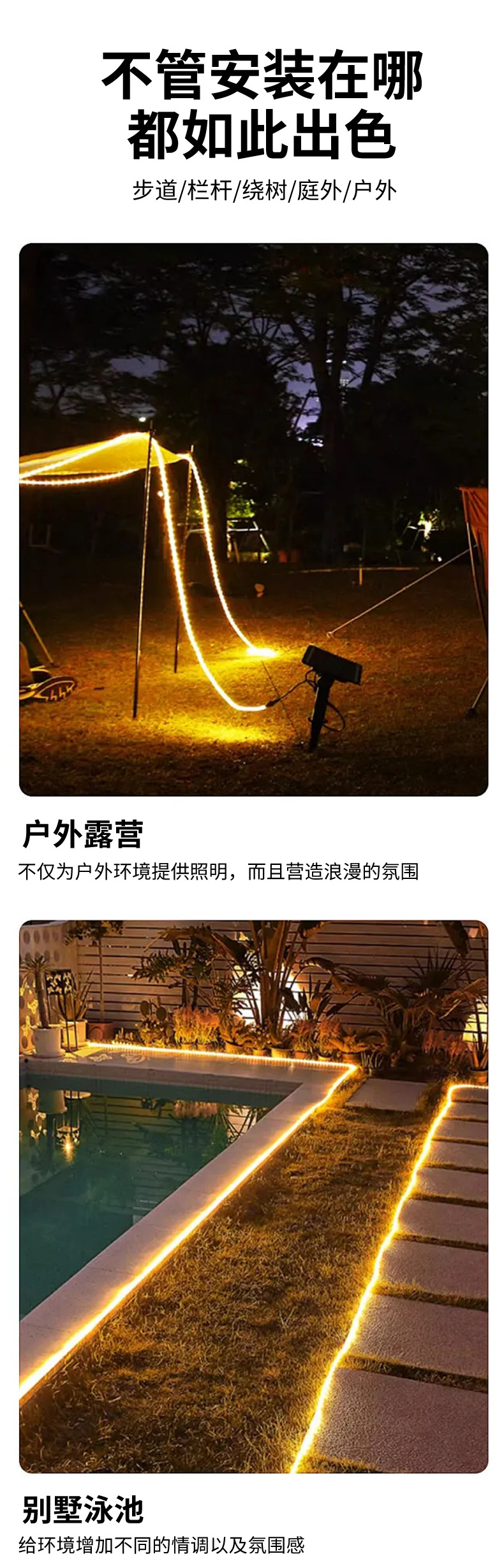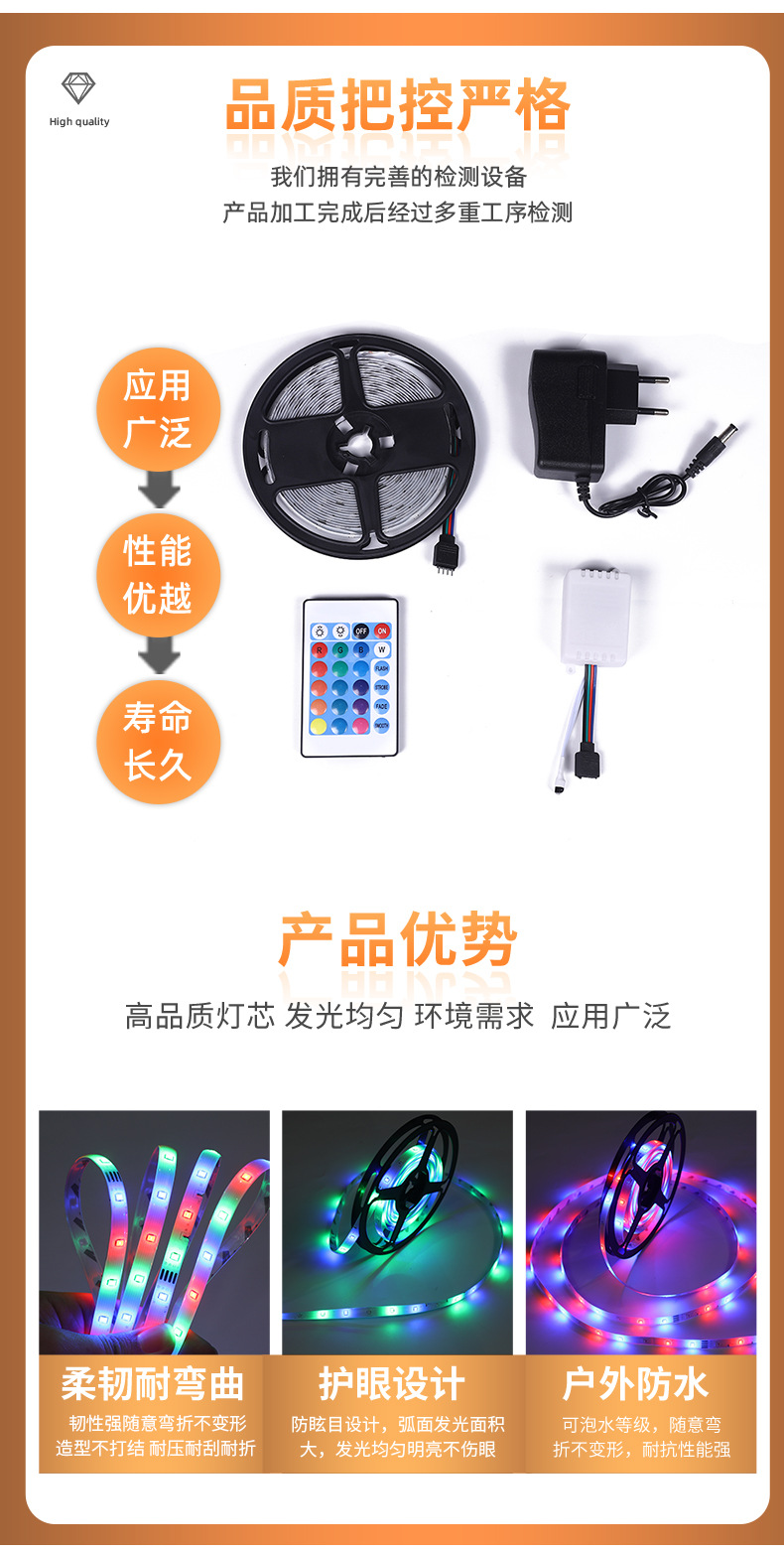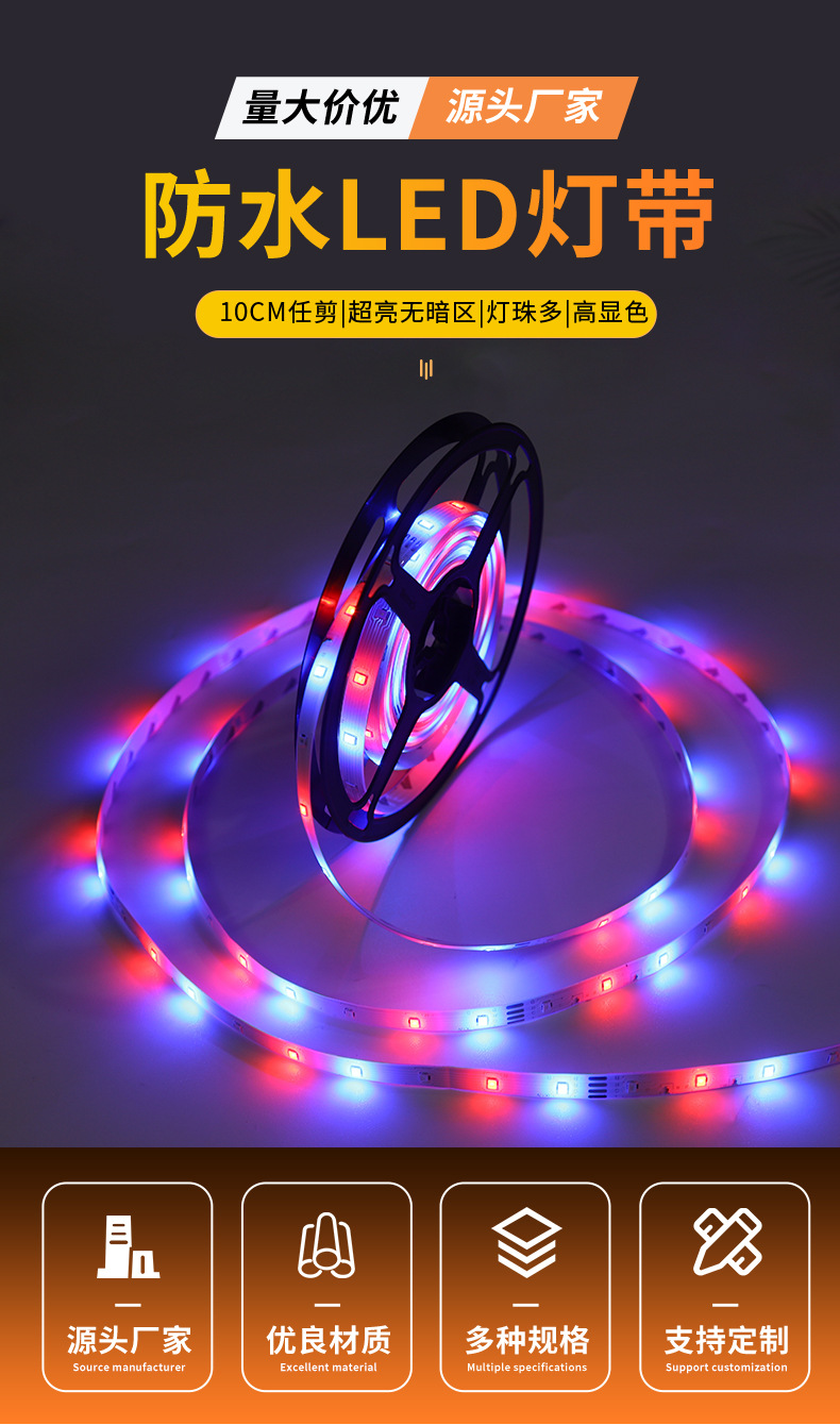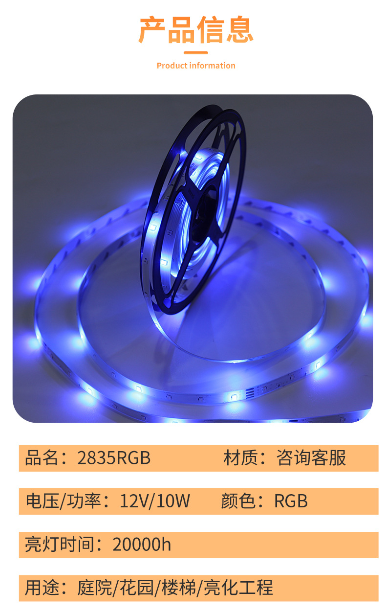 Strip lampu led garis perekat, strip cahaya neon warna-warni 12v 12v lintas batas 2835rgb tegangan rendah luar ruangan