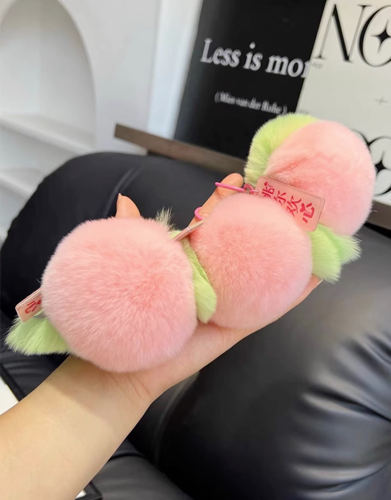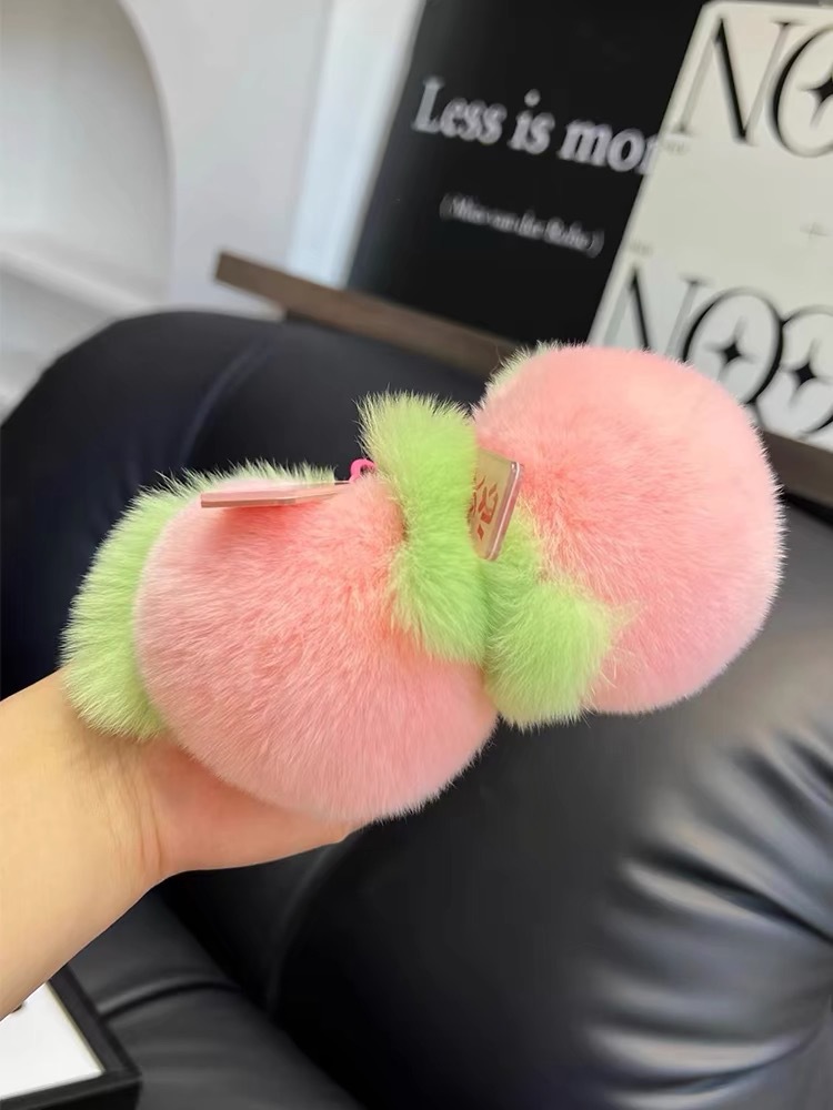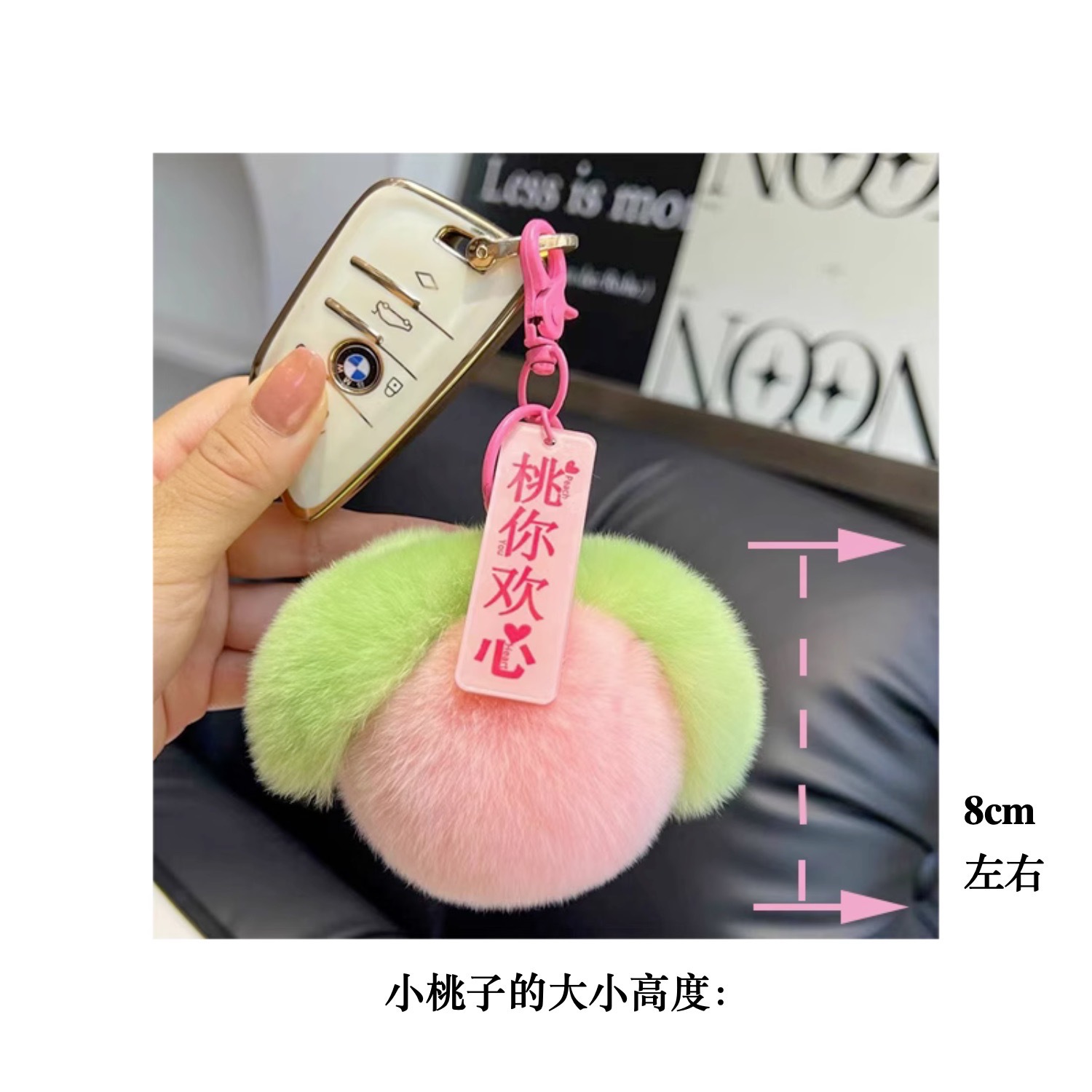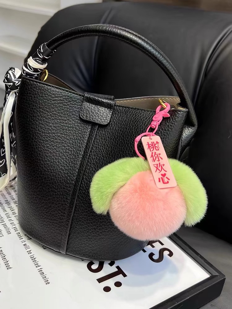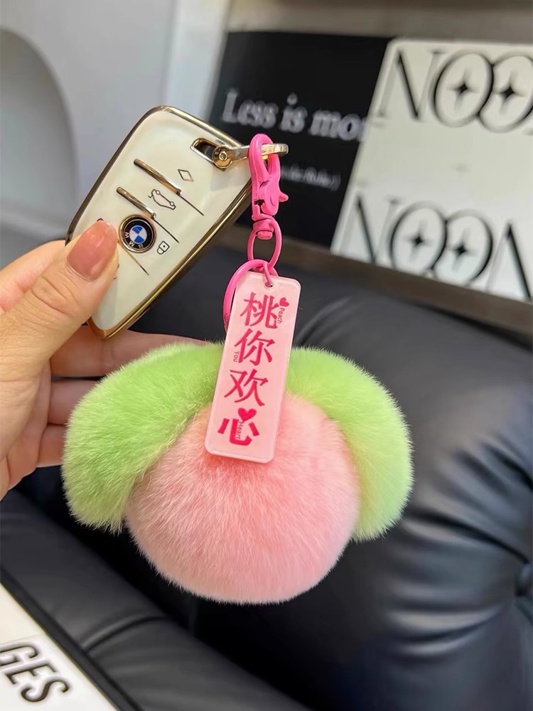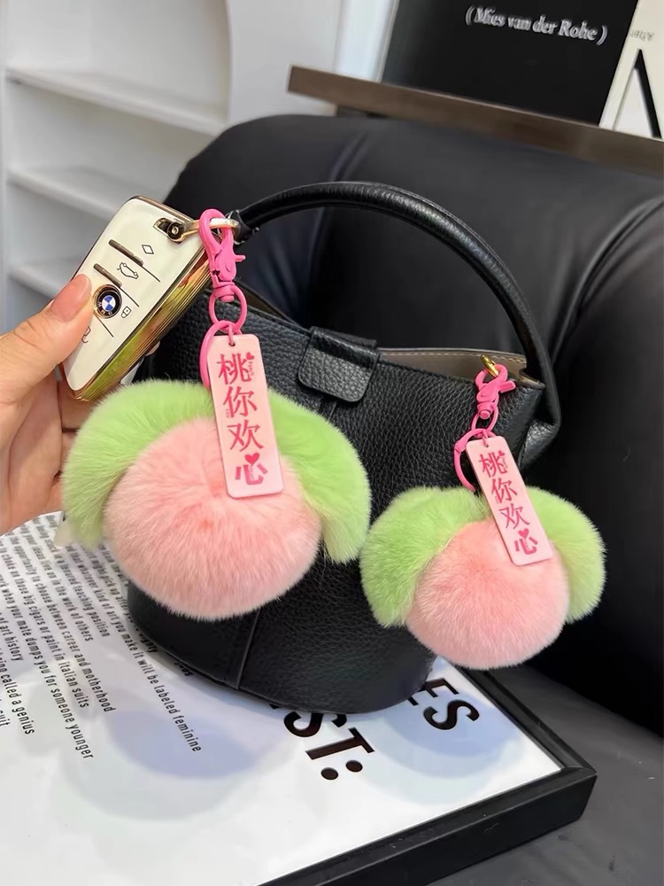 Liontin tas persik mewah gantungan kunci bola bulu lucu gantungan kunci persik kecil