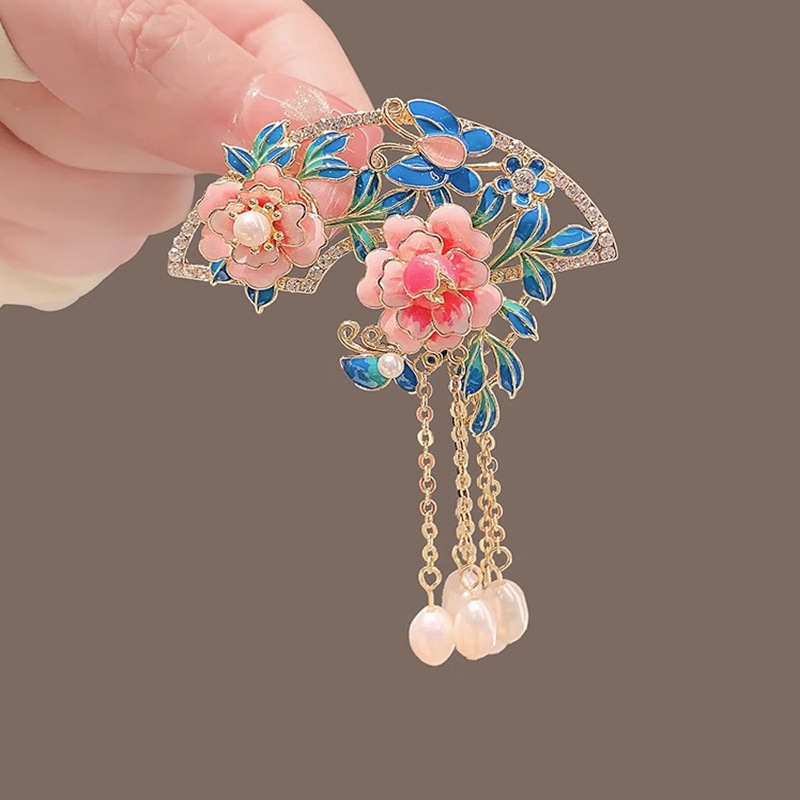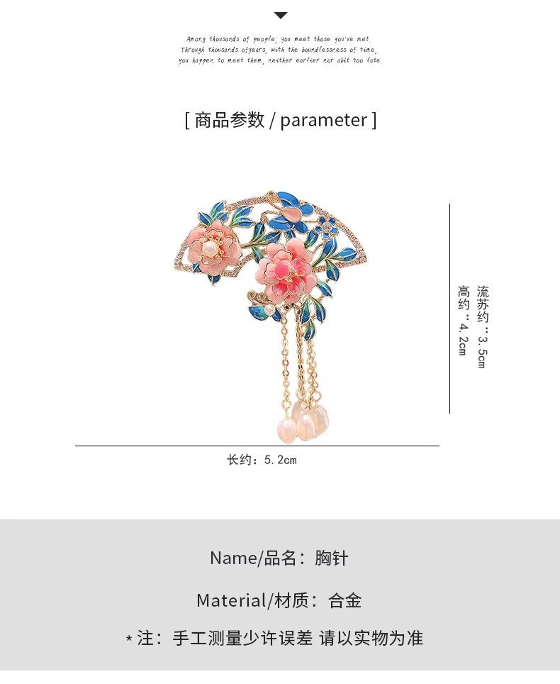Bros bunga peony sutra kuno, aksesori pin cheongsam Hanfu elegan retro kelas atas