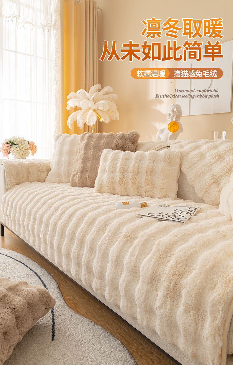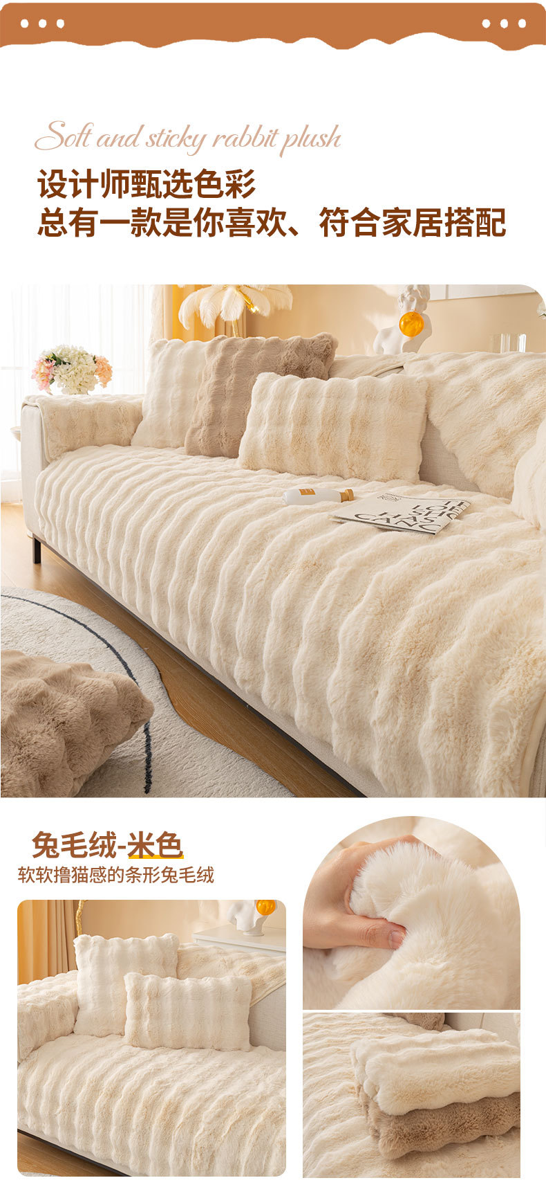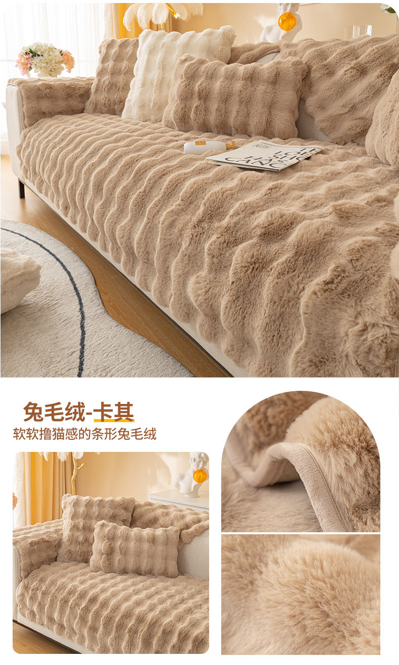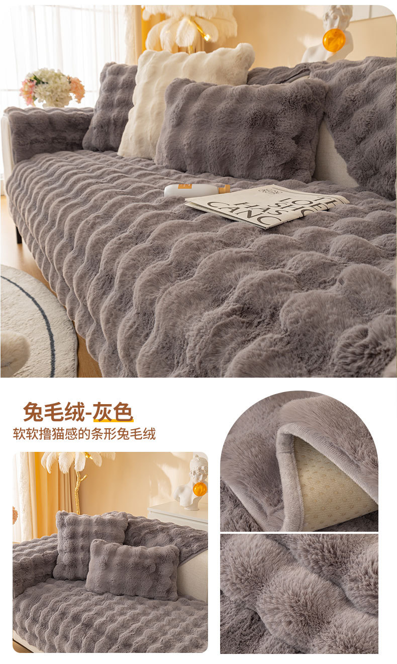1300g Alas Sofa Selebgram Beludru Kelinci Alas Duduk Beludru Ditambah Tebal Musim Dingin Penutup Sofa Kulit Anti Selip