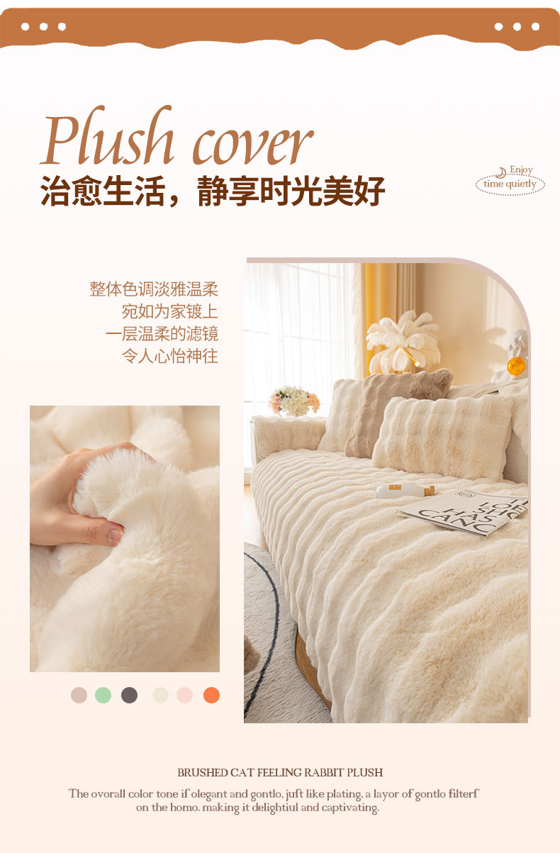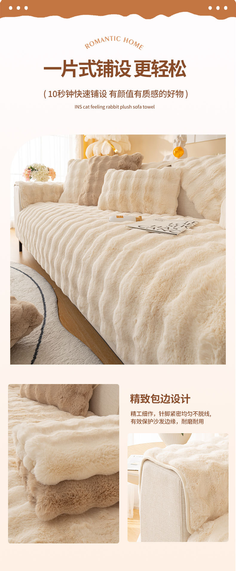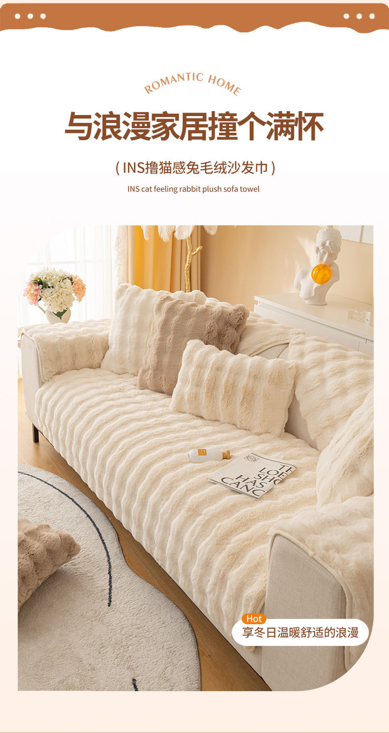 1300g Alas Sofa Selebgram Beludru Kelinci Alas Duduk Beludru Ditambah Tebal Musim Dingin Penutup Sofa Kulit Anti Selip