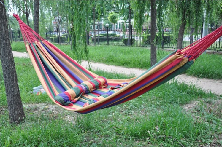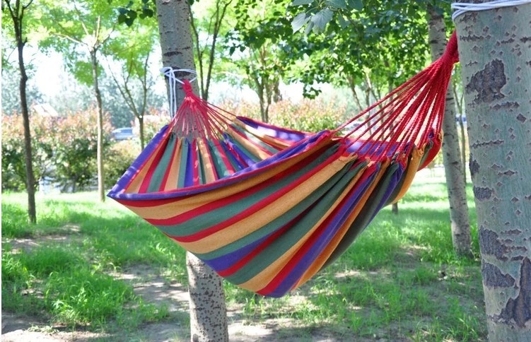 Tempat tidur gantung portabel luar ruangan, tempat tidur gantung kanvas Kemah ganda tunggal santai antilipat untuk yoga udara
