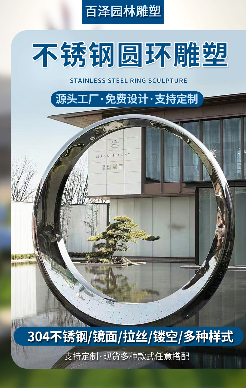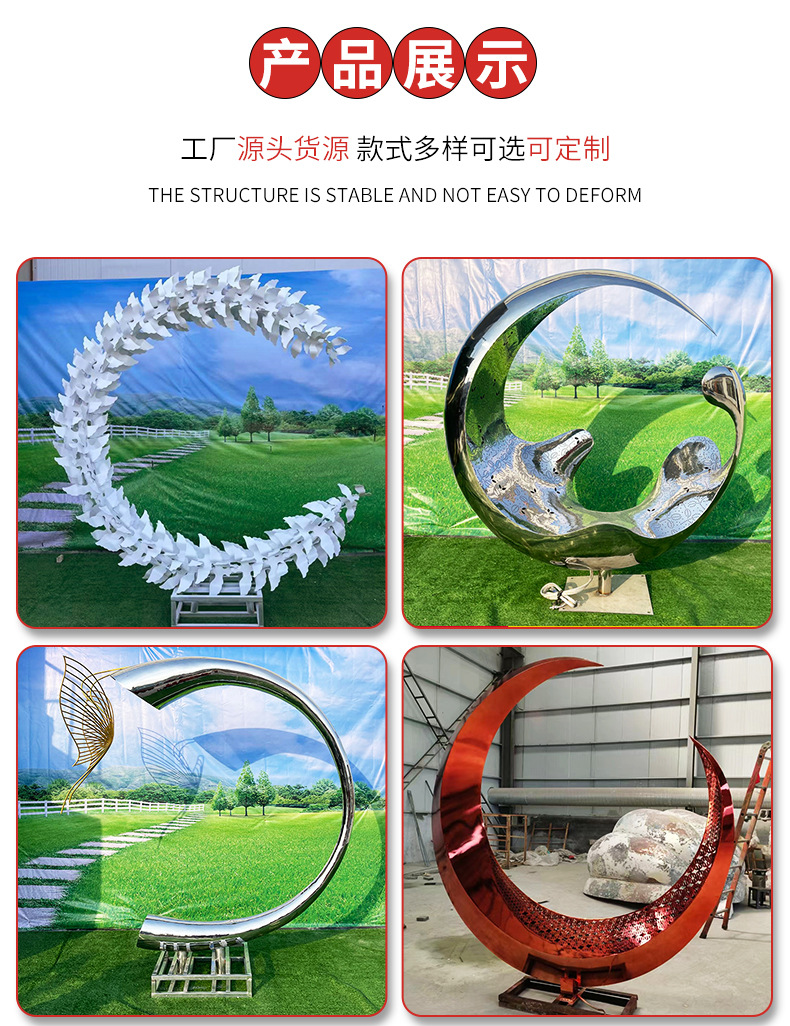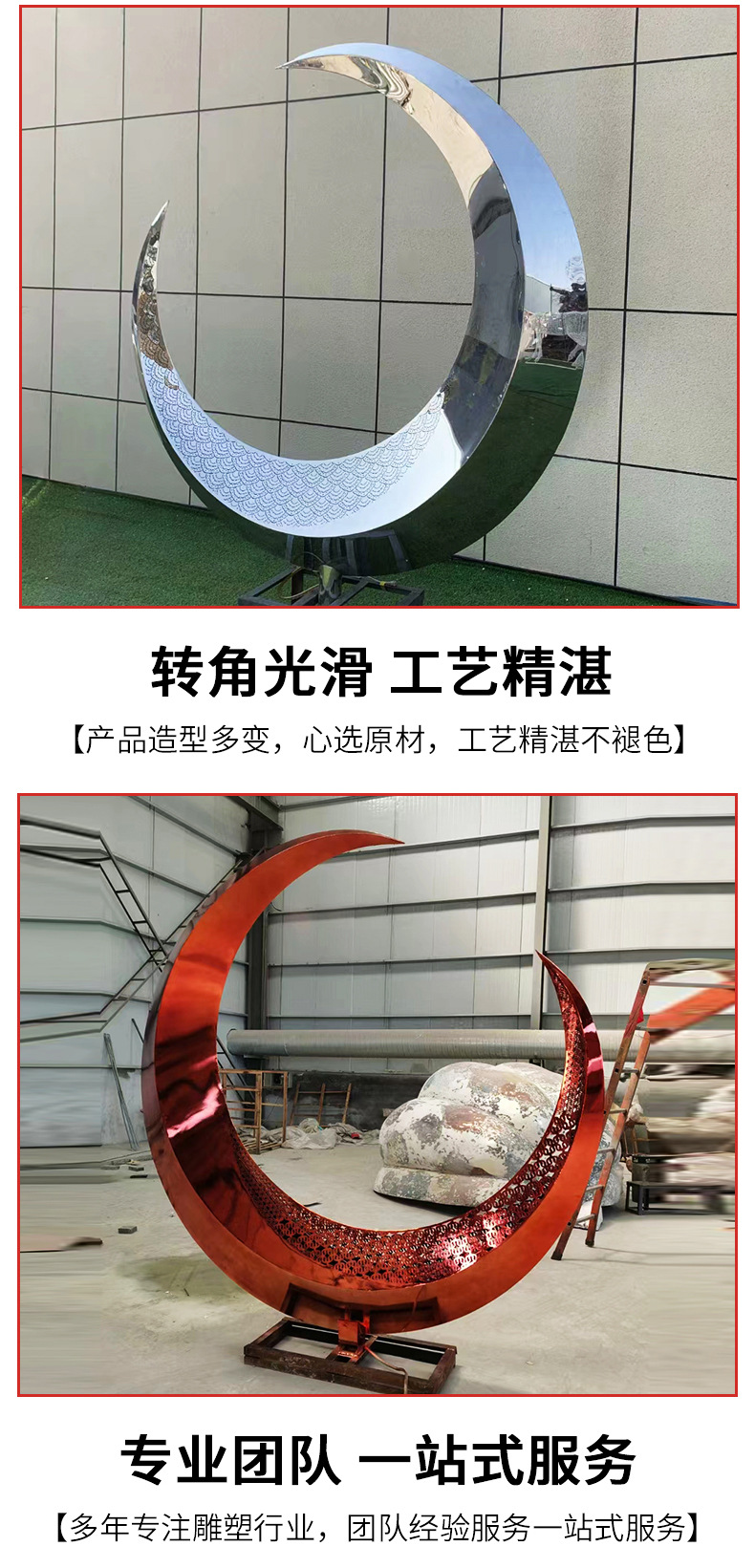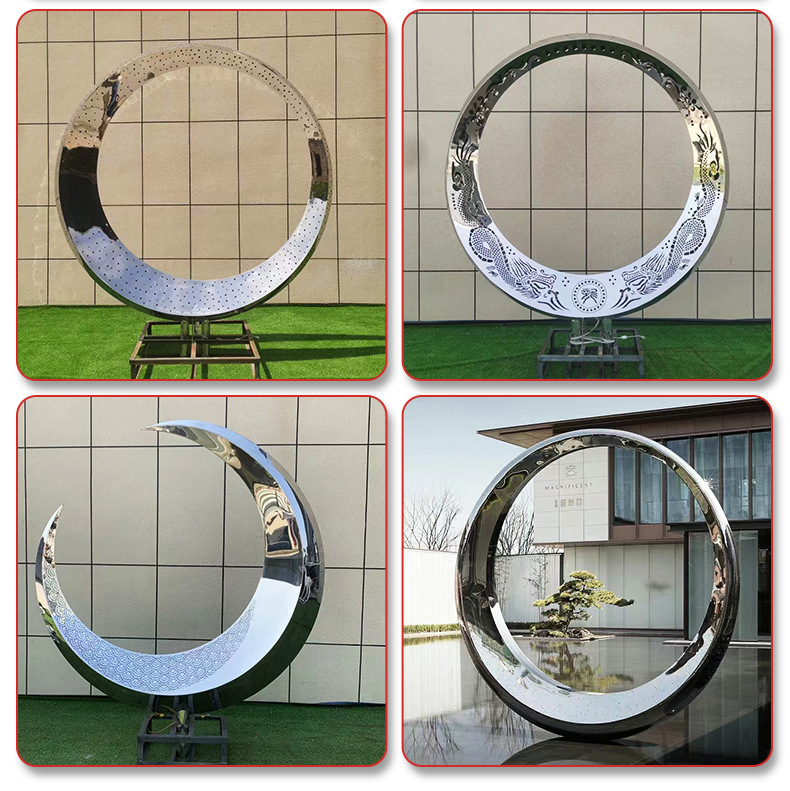 Besar Stainless Steel Landscape Sculpture Square Taman Kota Kreatif Abstrak Landscape Proyek Cermin Bulan Patung