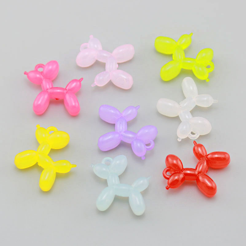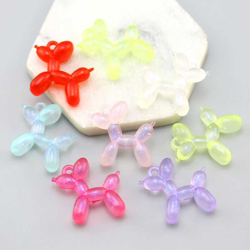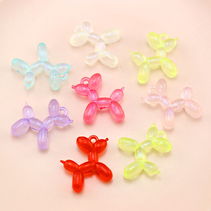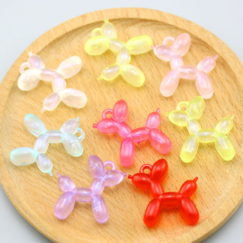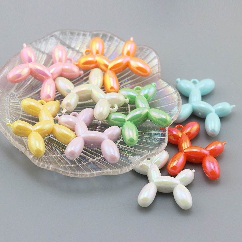 Aksesori perhiasan DIY liontin gantungan kunci boneka stereo anjing balon bercahaya mutiara warna-warni akrilik