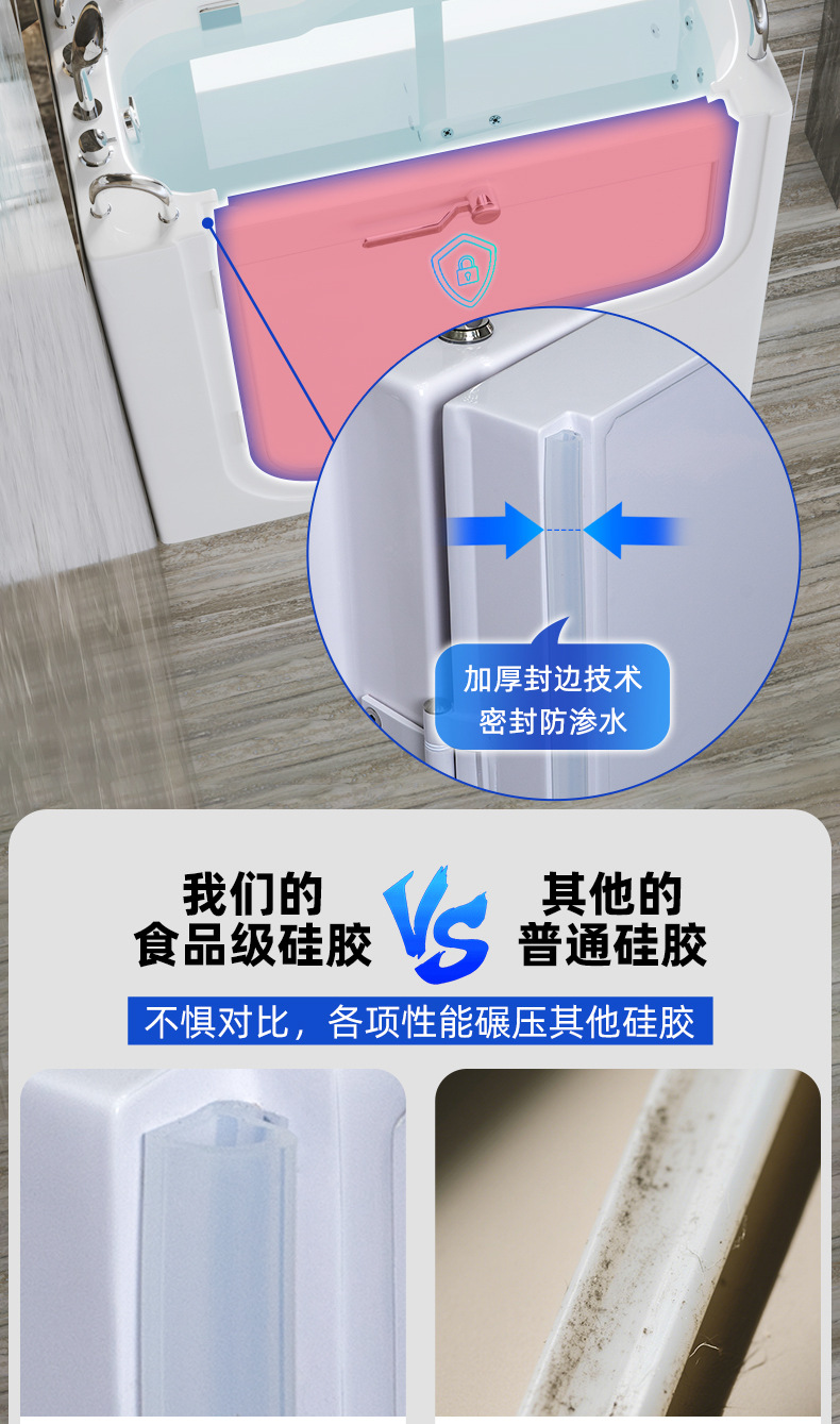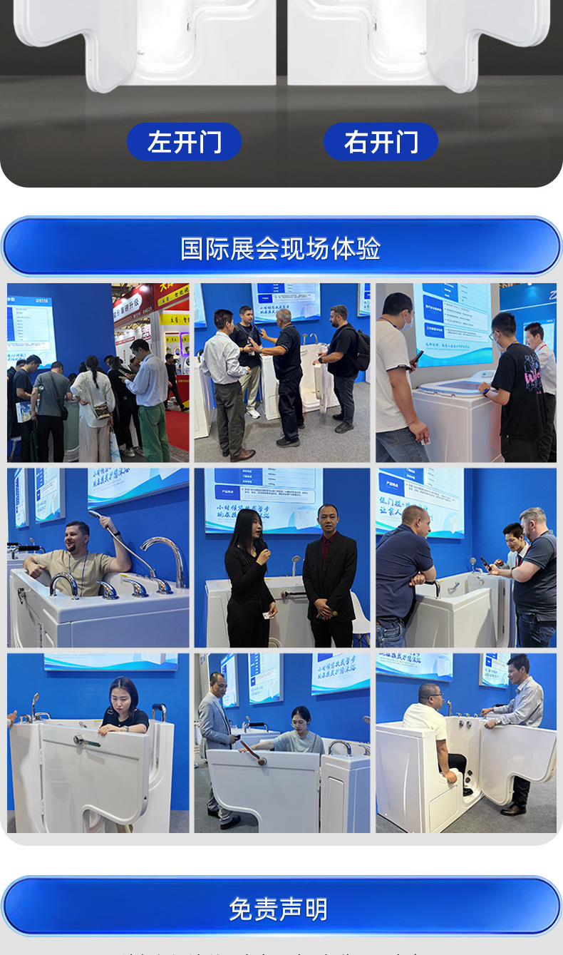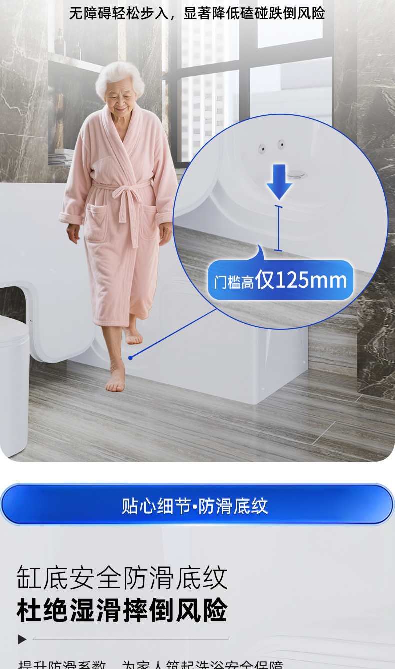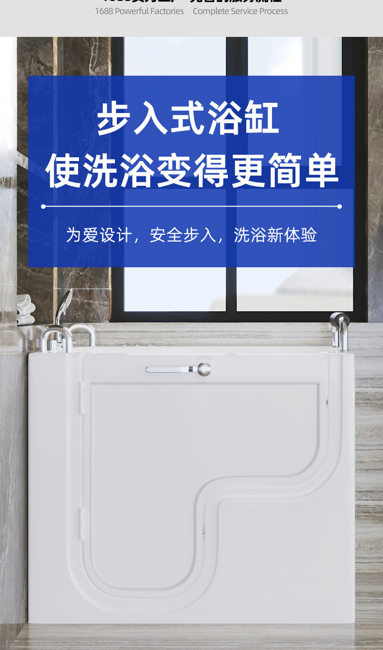 Bak mandi bukaan samping untuk lansia, mandi penyandang disabilitas, tempat duduk walk-in, perendaman dalam akrilik, pijat selancar, senyap
