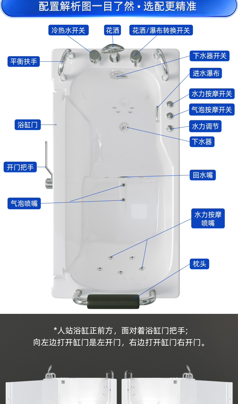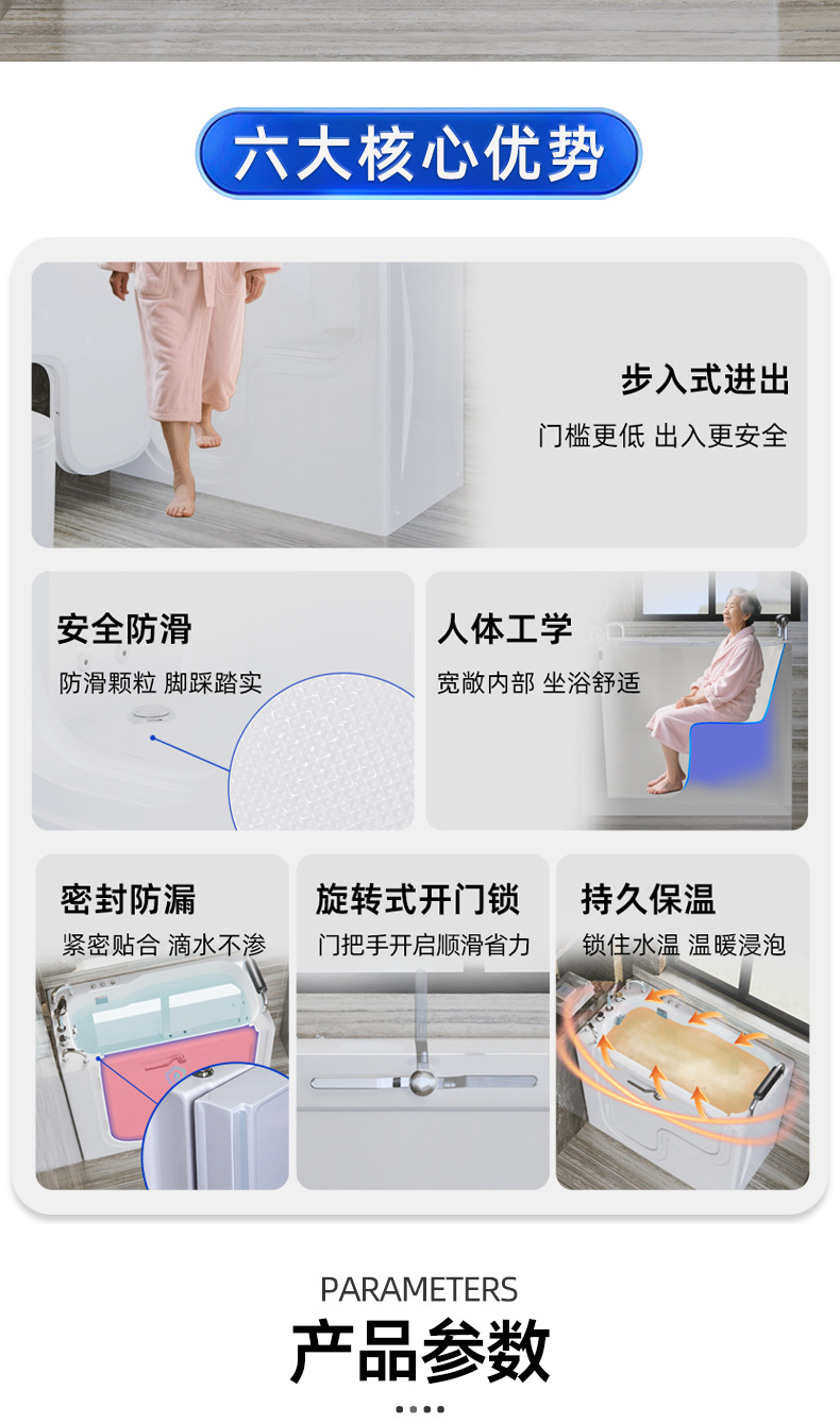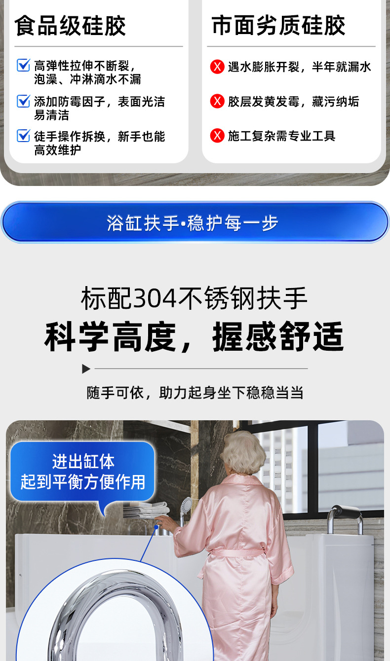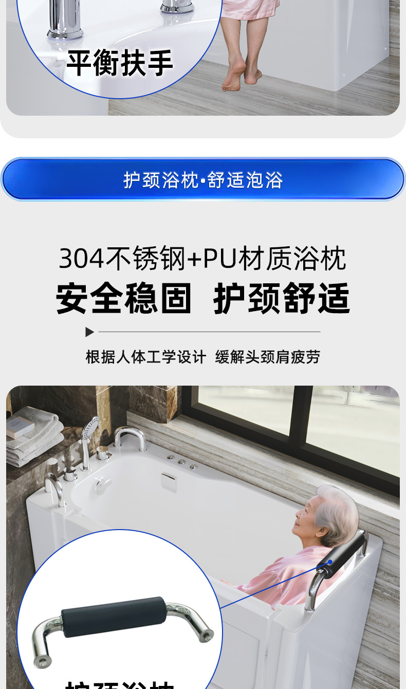 Bak mandi bukaan samping untuk lansia, mandi penyandang disabilitas, tempat duduk walk-in, perendaman dalam akrilik, pijat selancar, senyap