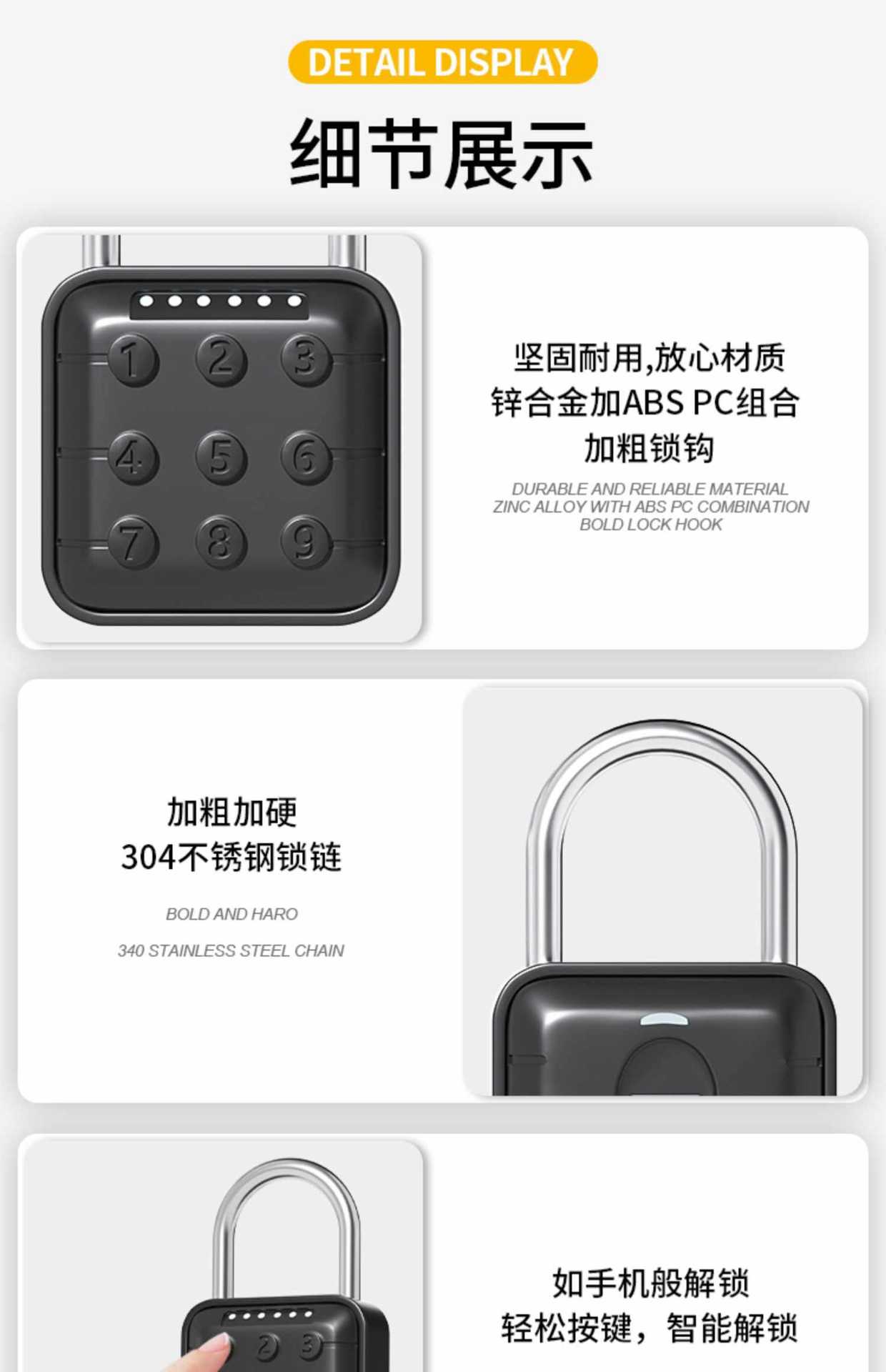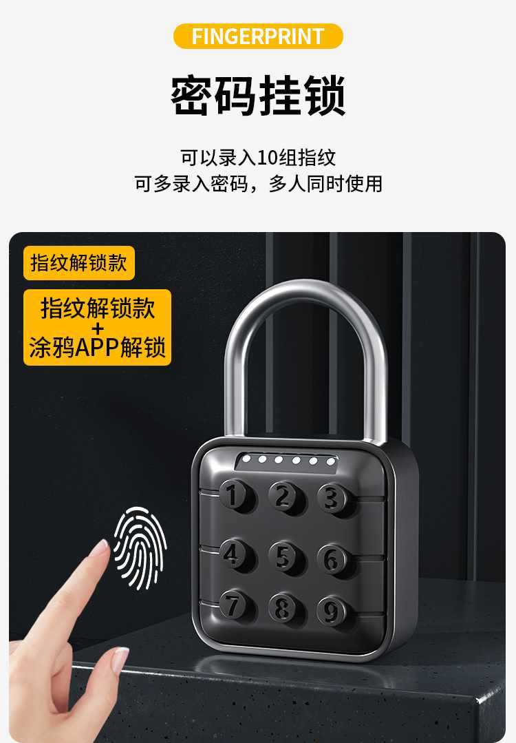 Gembok cerdas sidik jari, gembok Pintu anti pencurian kata sandi, gembok elektronik cerdas luar ruangan tahan air anti karat