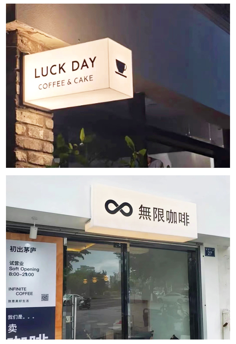Kotak lampu akrilik led kustomisasi pintu toko papan reklame led semua dalam satu bercahaya kreatif luar ruangan B & B logo papan reklame