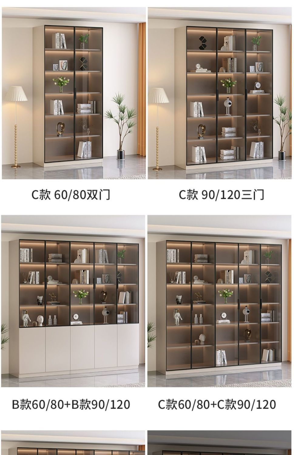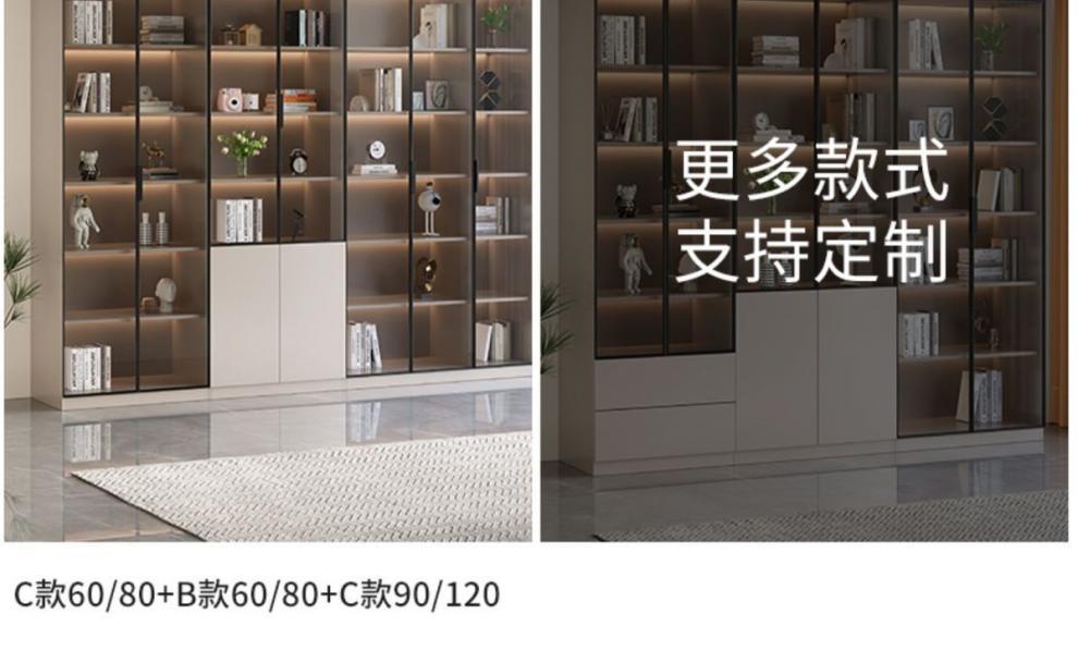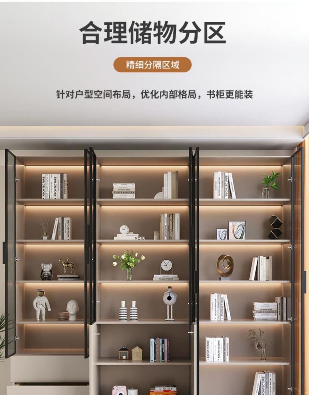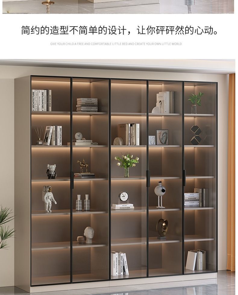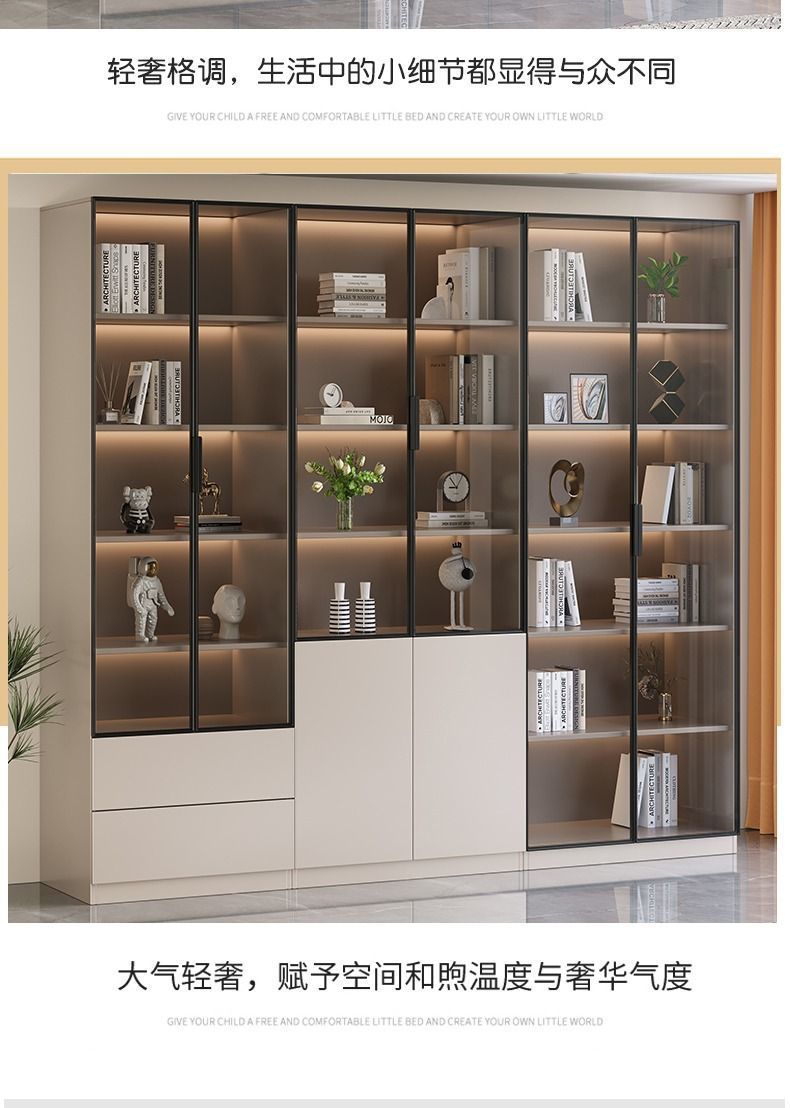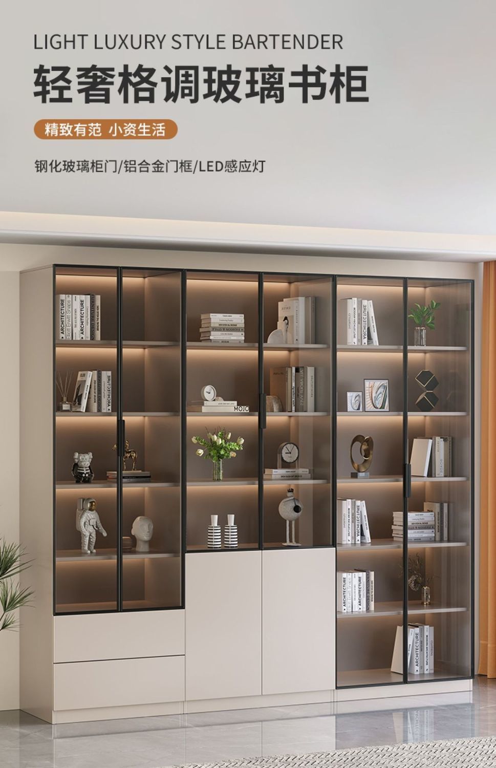 Rak buku terintegrasi ke lemari buku Tiongkok mewah mewah mewah kelas atas dengan pintu kaca kabinet tampilan buatan tangan rak buku dinding seluruh