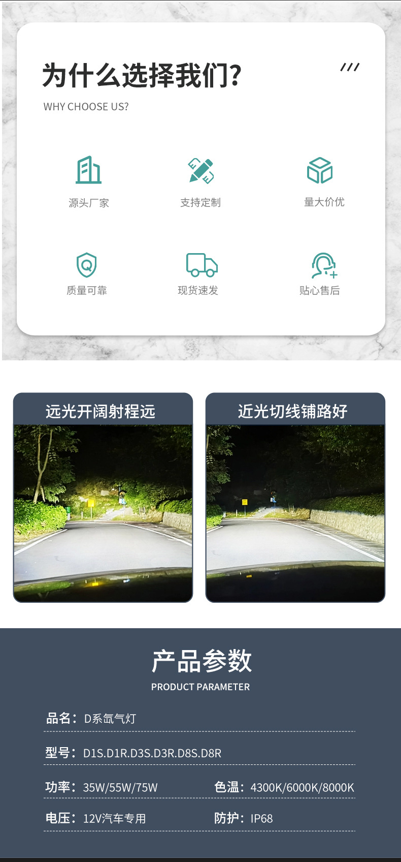 Lampu HID Xenon Mobil D1S.D1R. D3S. D3R. D8S. Lampu mobil xenon D8R dimodifikasi untuk mengintegrasikan lampu jauh dan dekat.