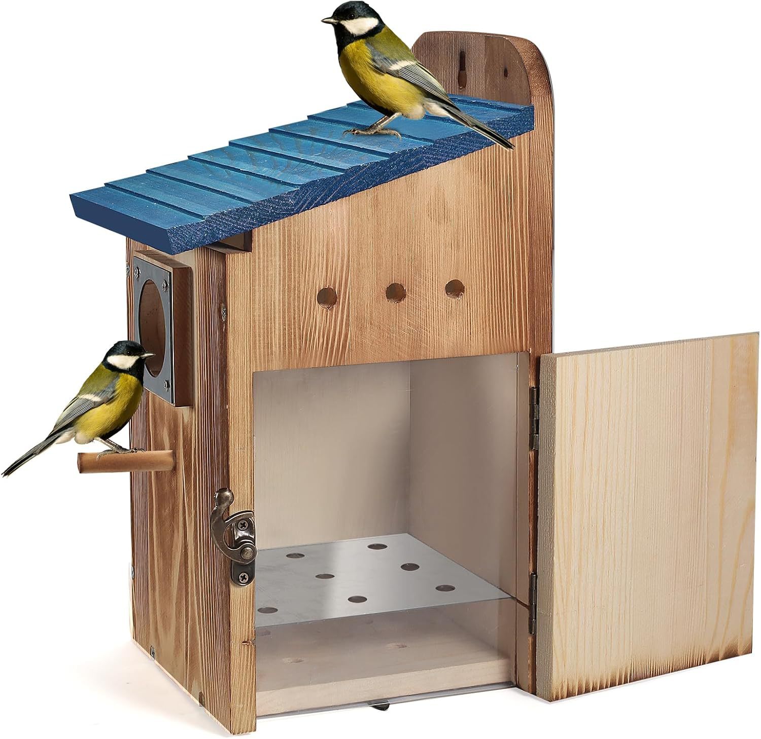 Grosir sarang burung kayu satu buah, kandang burung kreatif luar ruangan, sarang burung kolibri kayu padat, rumah burung pemberi makan kayu