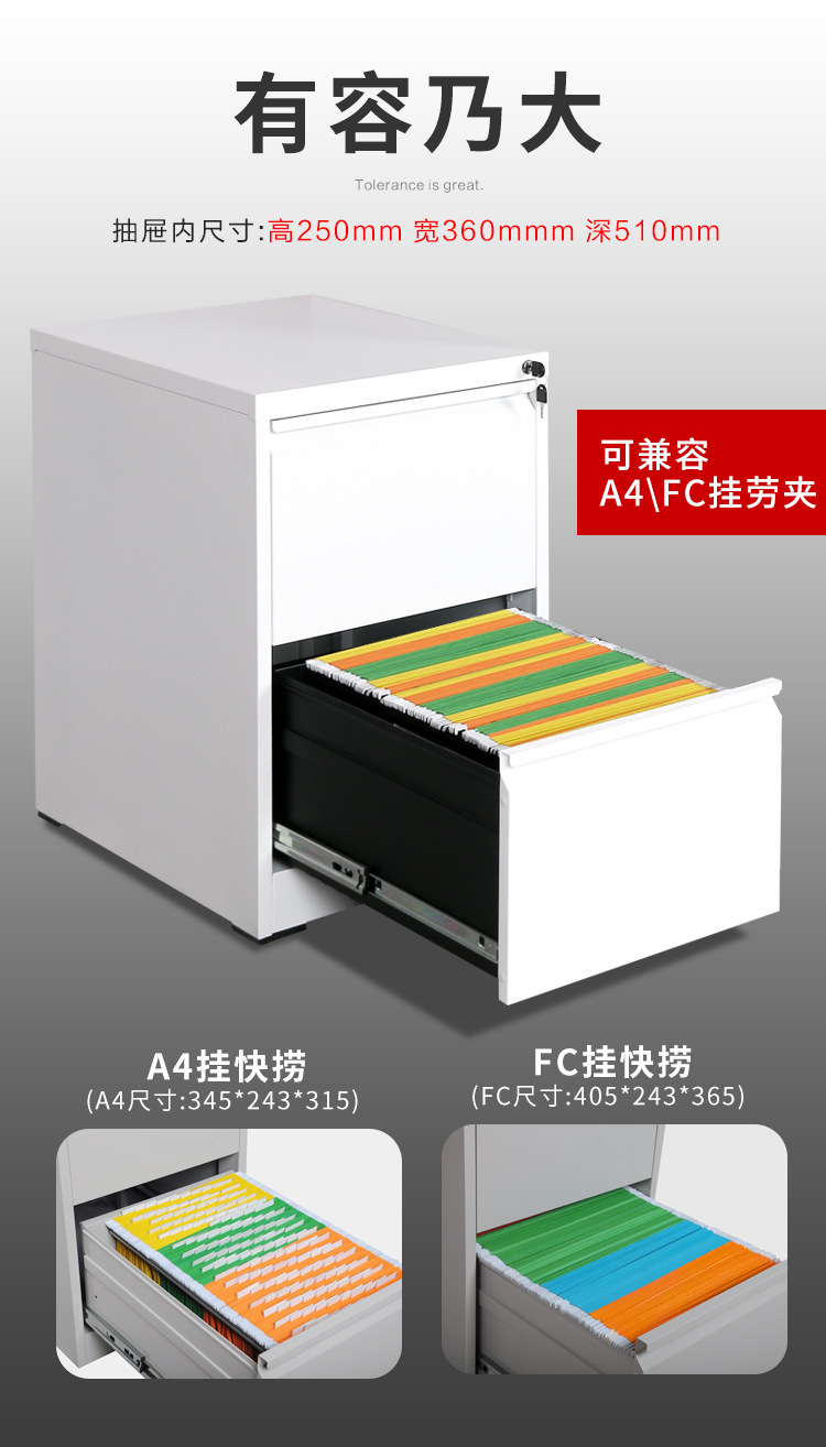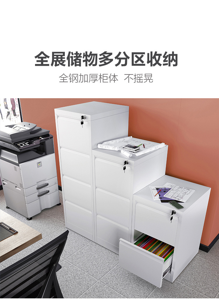 Lemari arsip dengan laci untuk dokumen, lemari mobile vertikal multi-layer A4FC dengan kunci, tersedia dalam dua, tiga, atau empat laci.