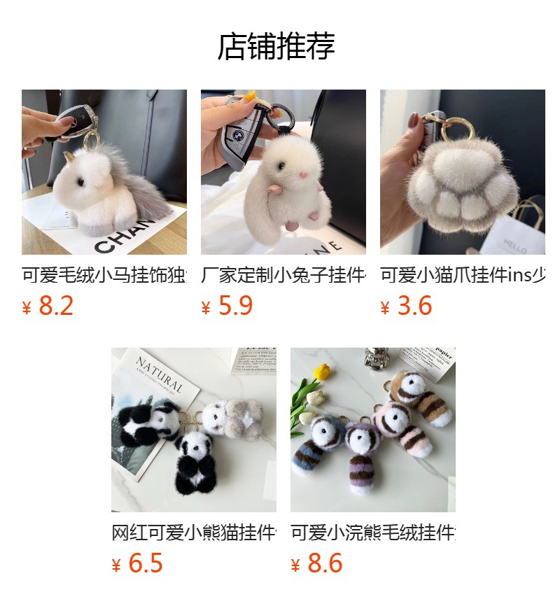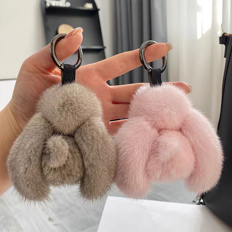 仿水貂小兔子毛绒挂件手工皮草钥匙扣可爱书包挂件毛绒小饰品