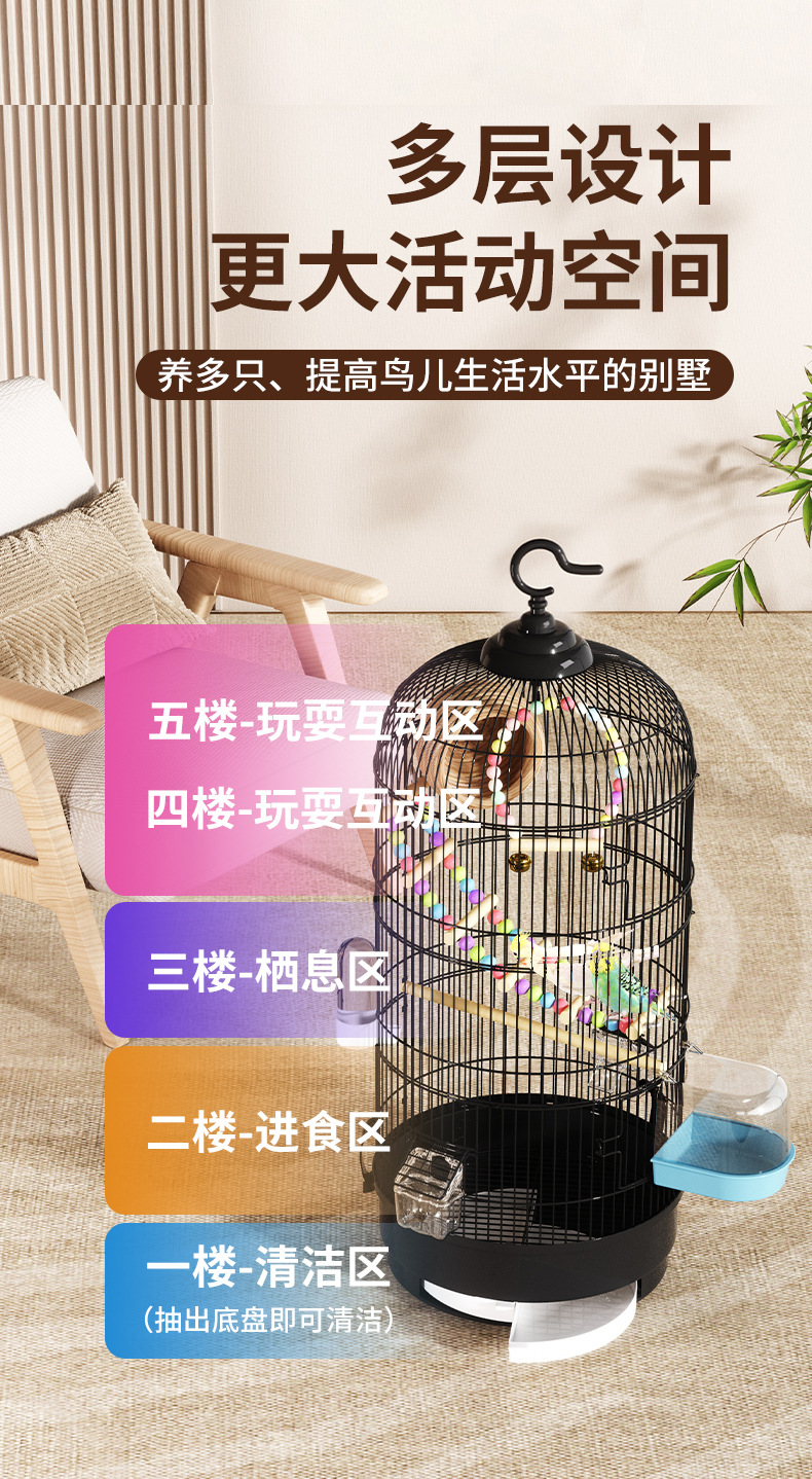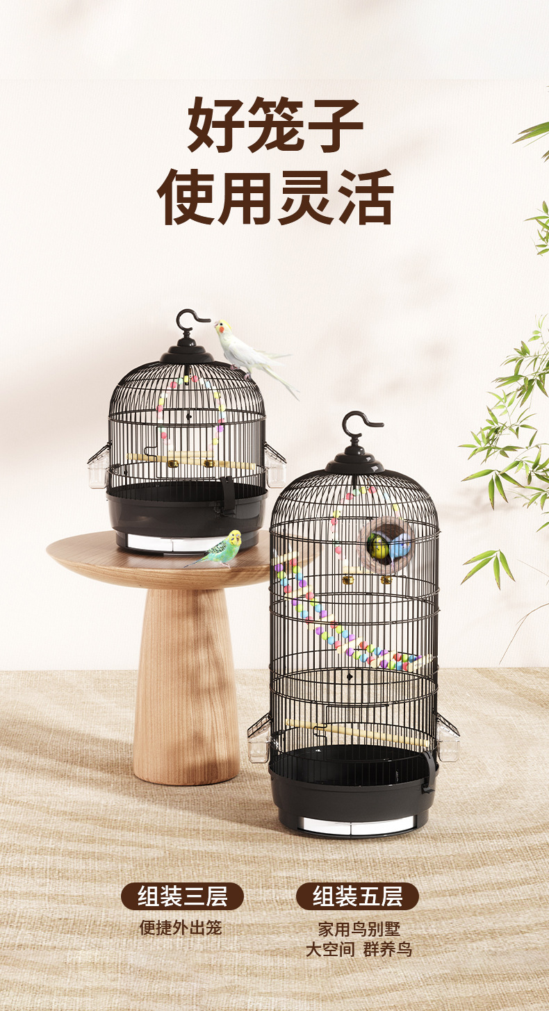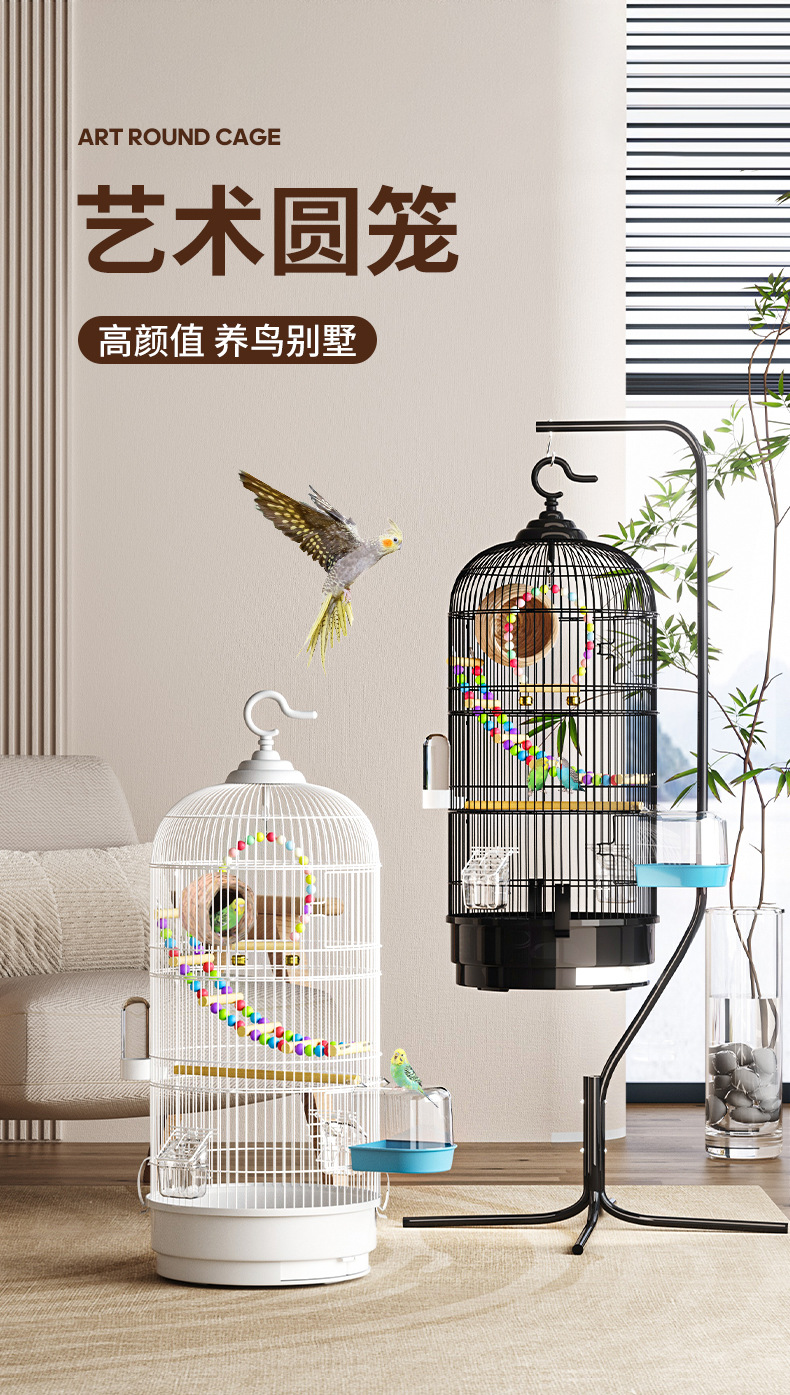 Sangkar burung beo kandang harimau Xuanfeng ukuran besar sangkar burung logam bulat koleksi lengkap sangkar burung bordir mata mewah villa delapan saudara