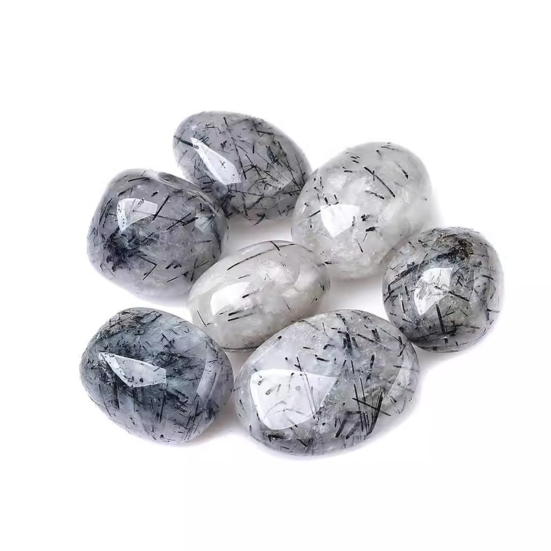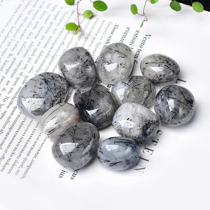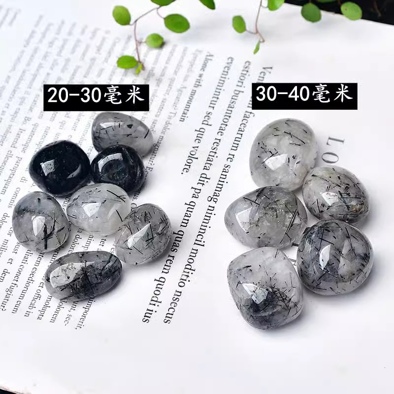 Rambut hitam alami kristal batu mentah partikel besar dekorasi menangani tangki ikan pot bunga lanskap dekoratif batu bijih spesimen