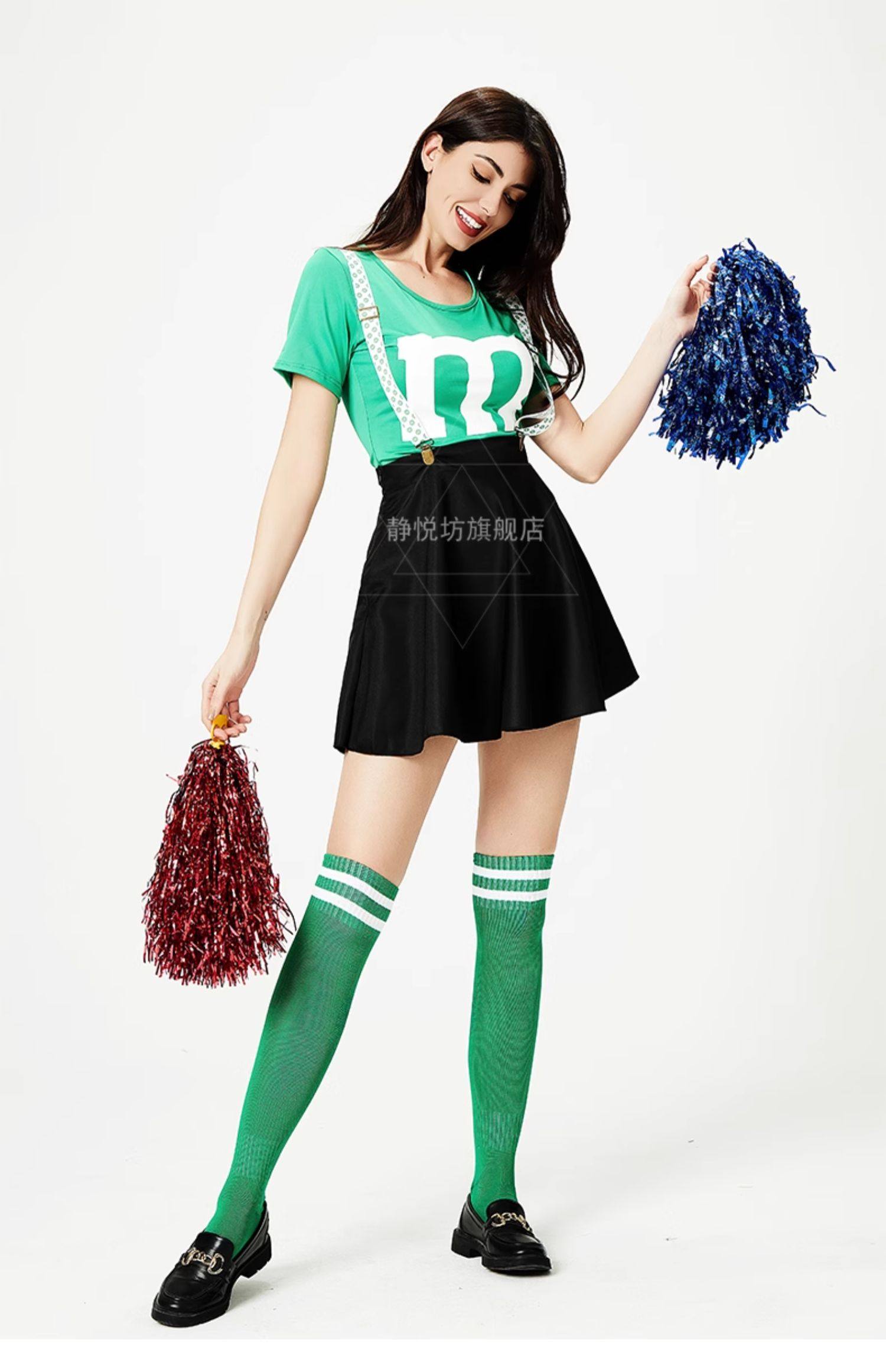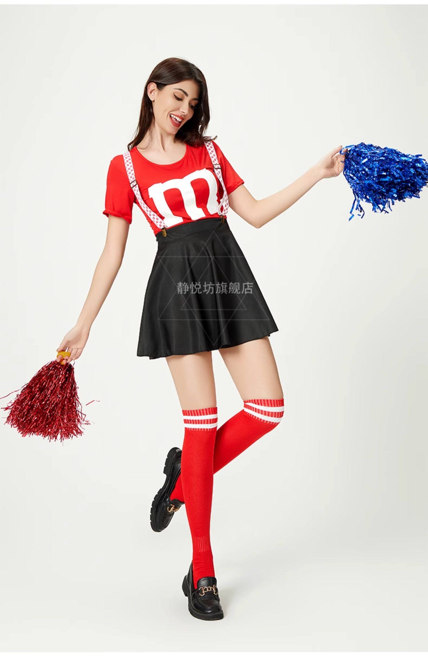 Set pakaian pemandu sorak sepak bola wanita untuk seragam tim kompetisi pertunjukan panggung pertunjukan siswa pemandu sorak tim anak perempuan.