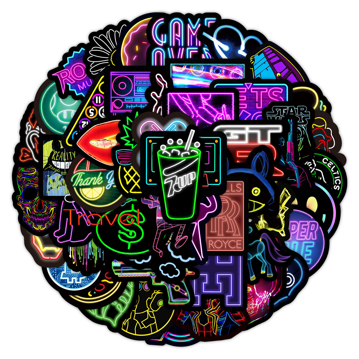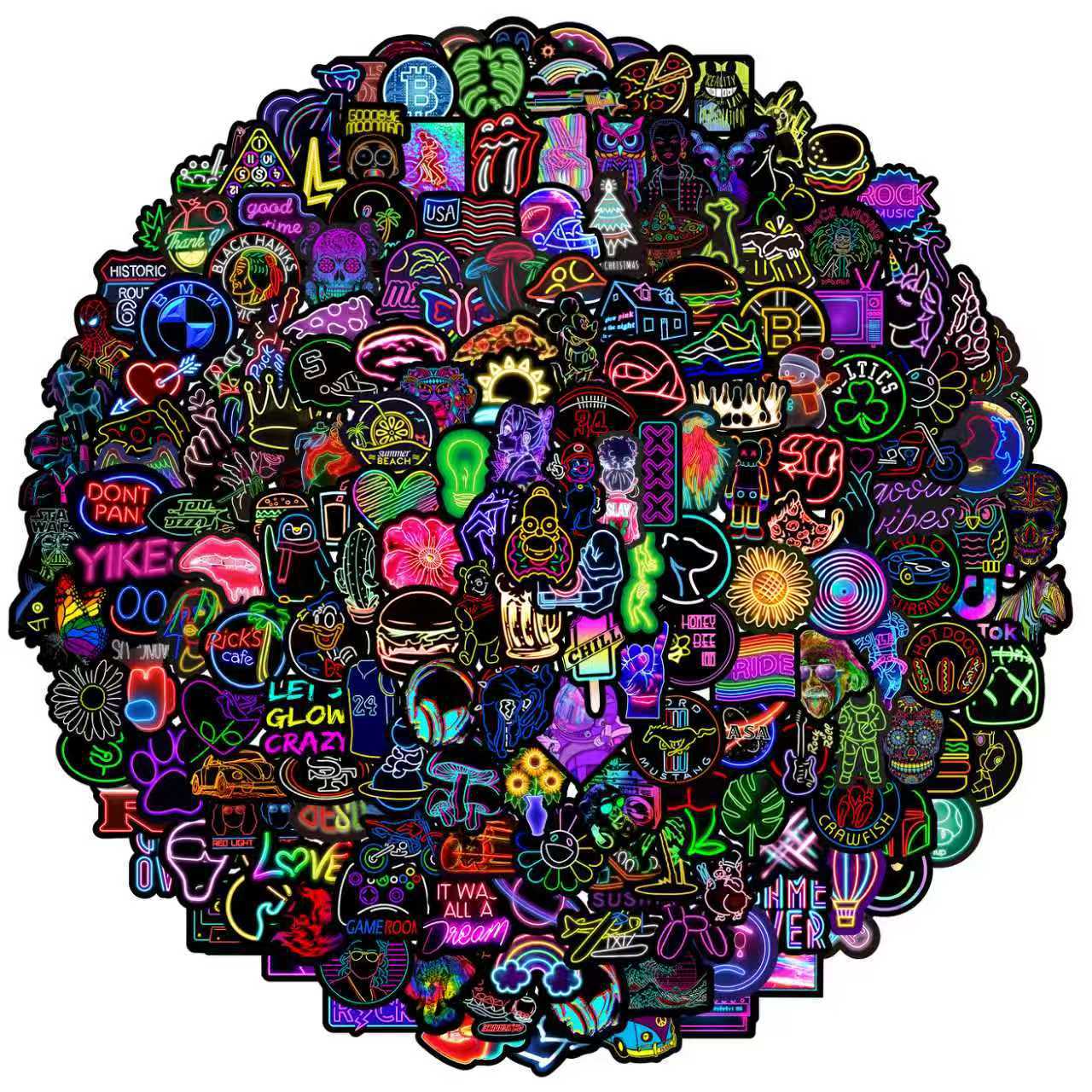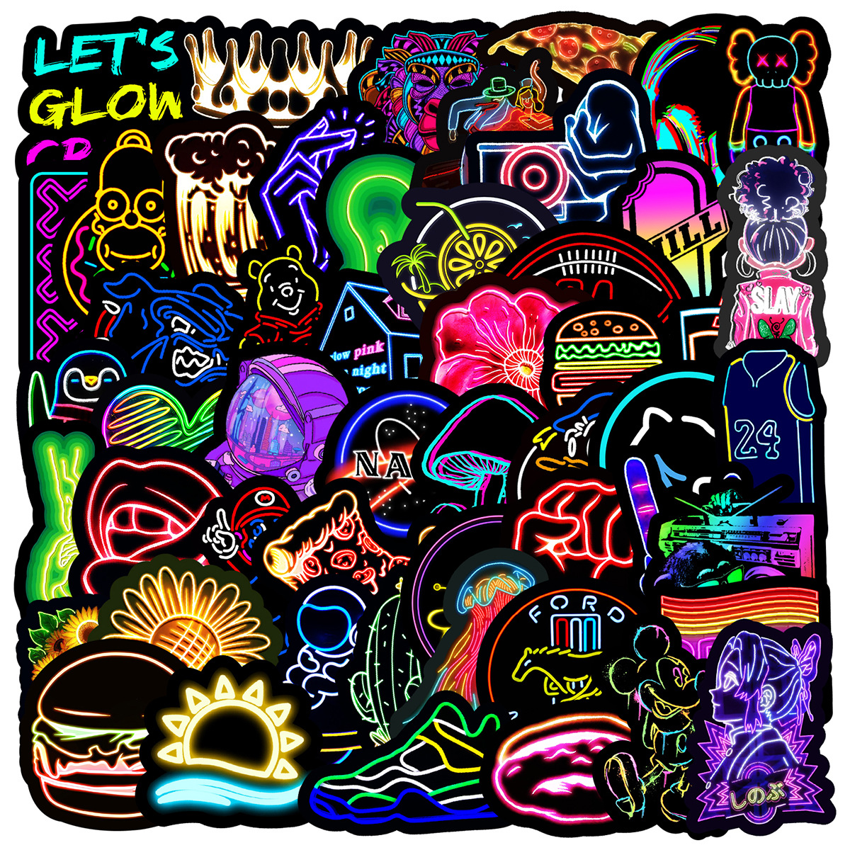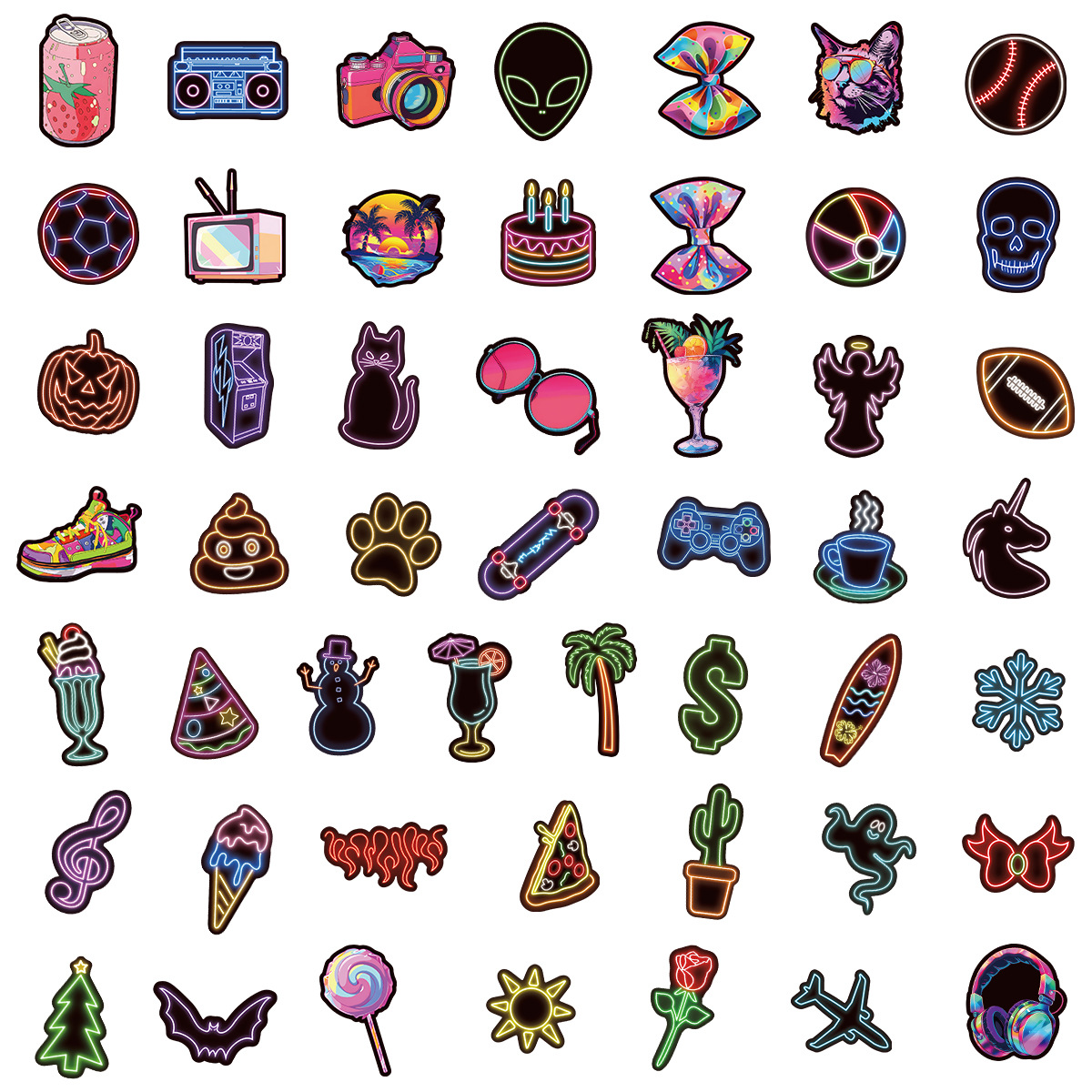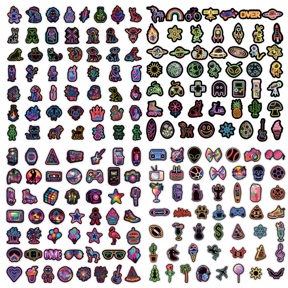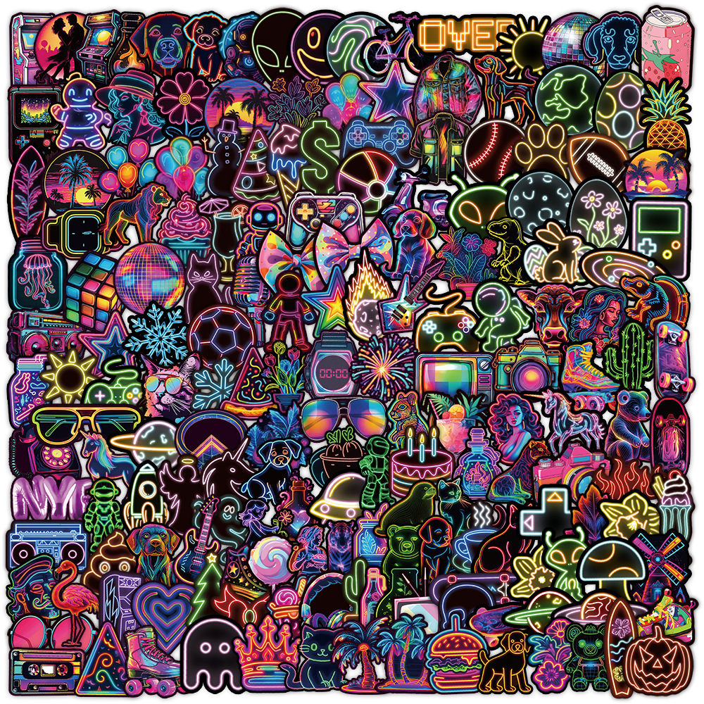 Stiker grafiti gaya neon, 50/100/200 lembar stiker dekorasi cangkir air notebook komputer ponsel tahan air