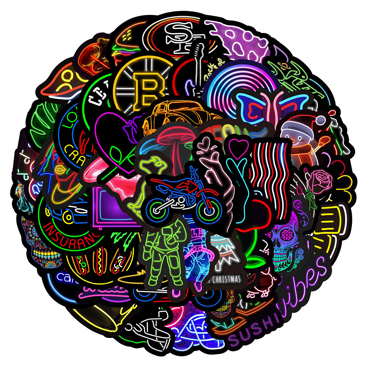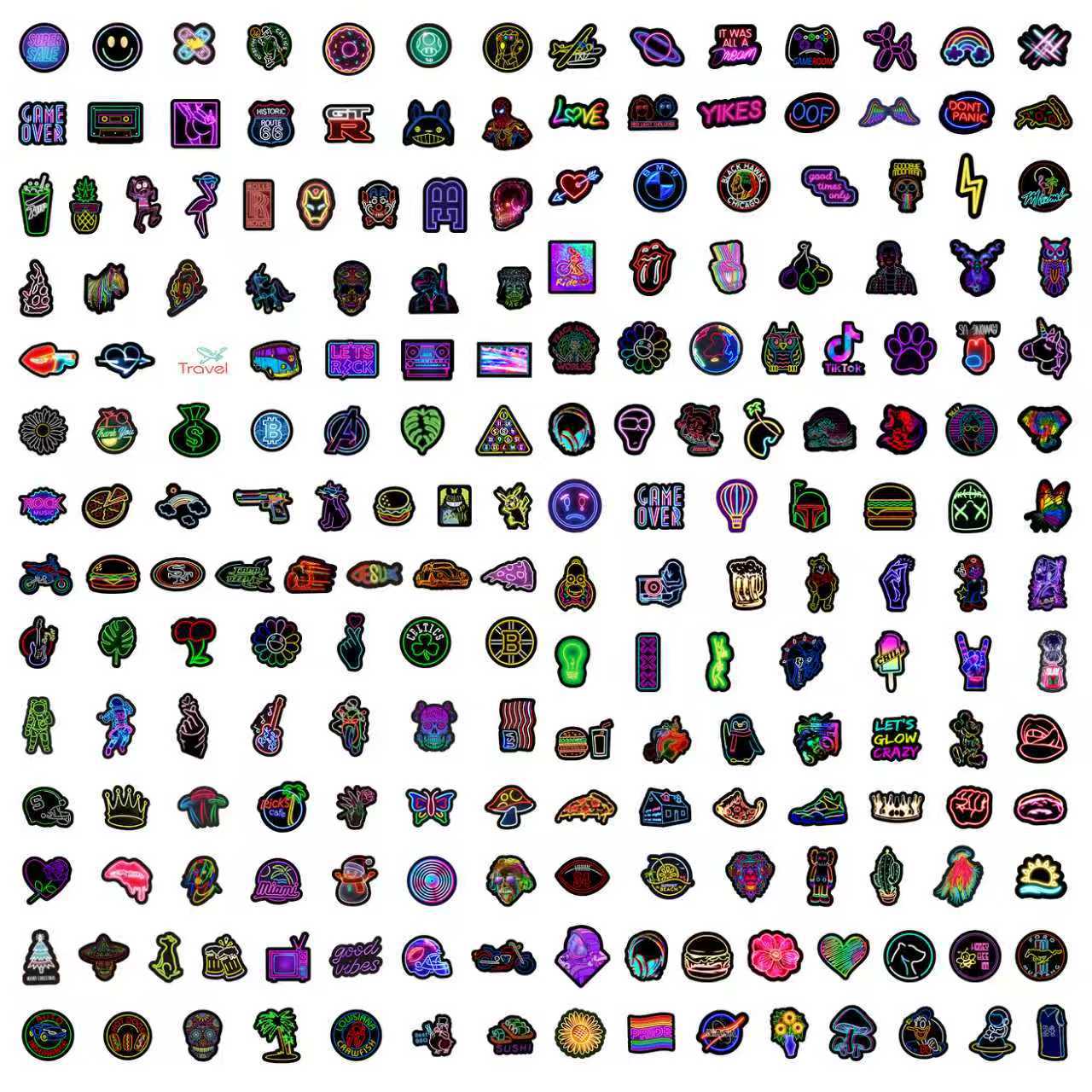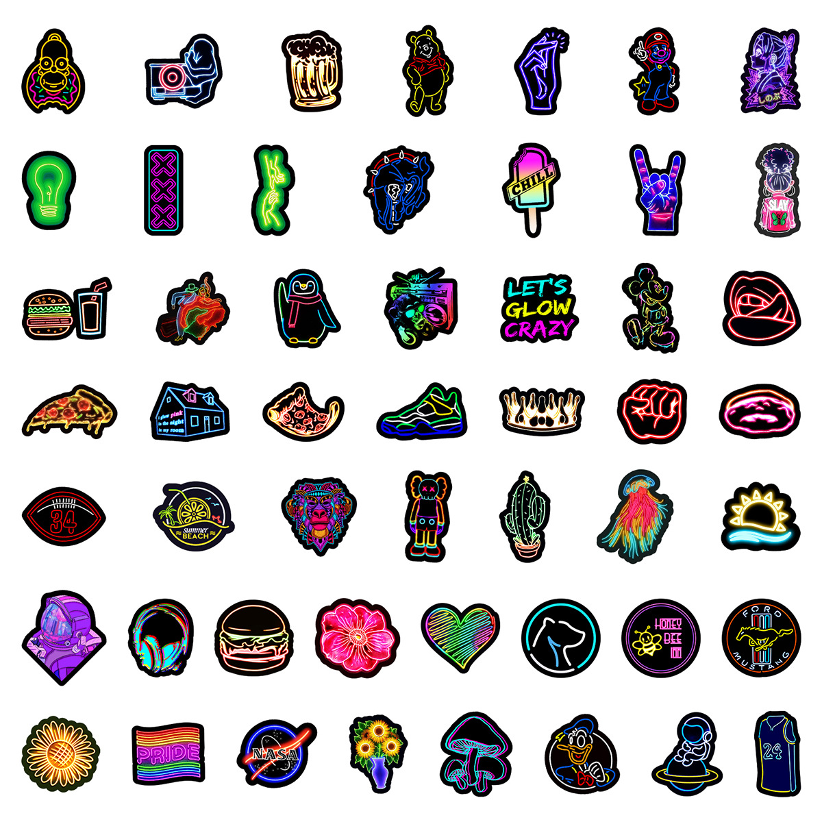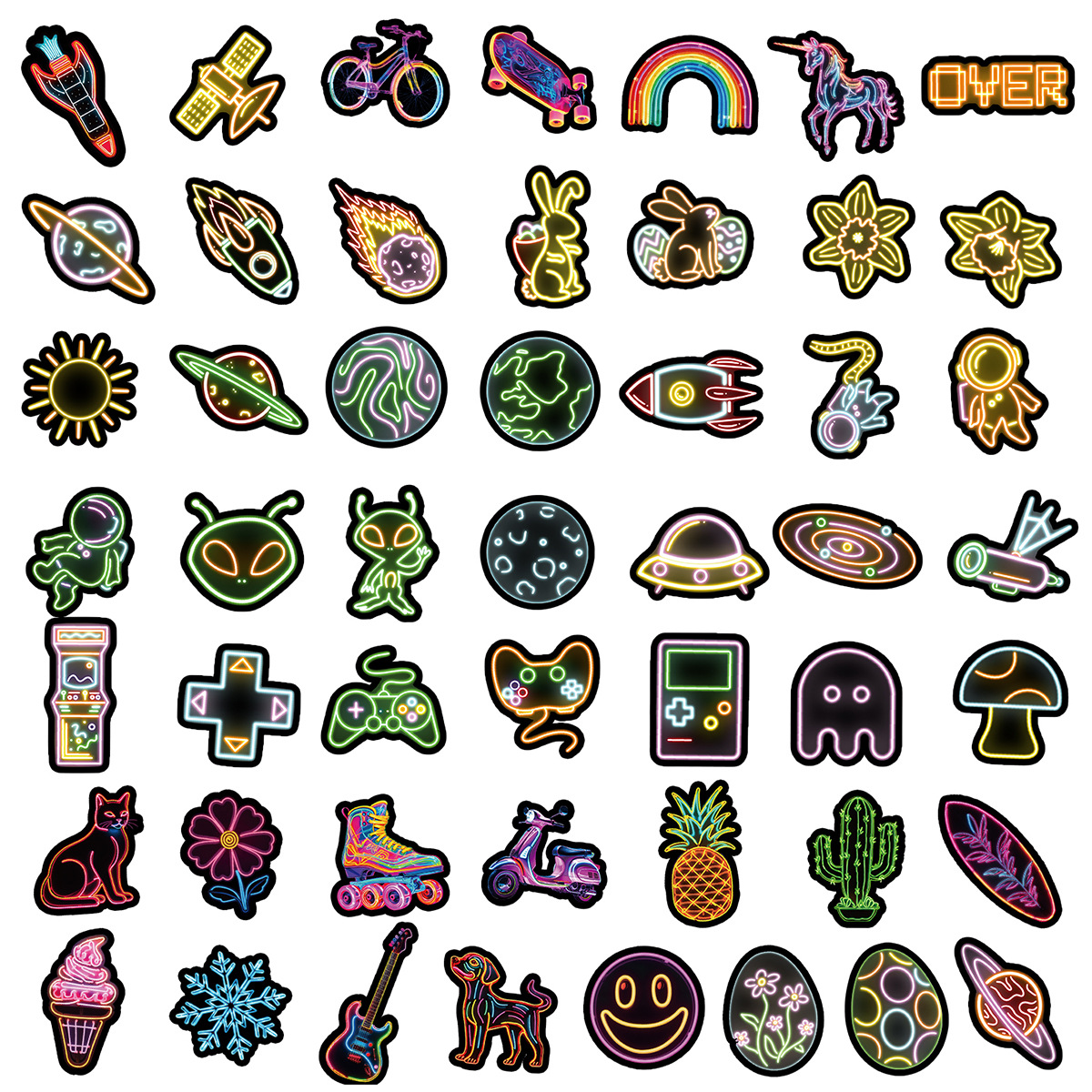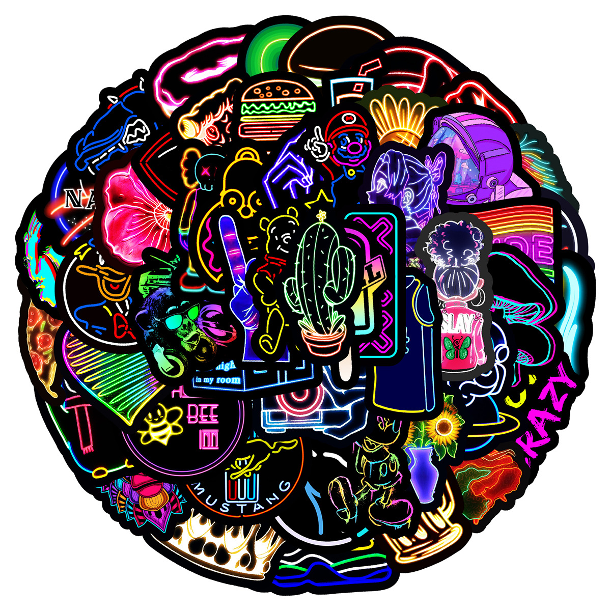 Stiker grafiti gaya neon, 50/100/200 lembar stiker dekorasi cangkir air notebook komputer ponsel tahan air