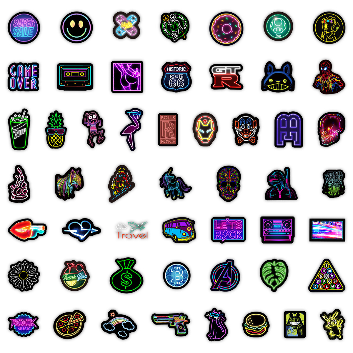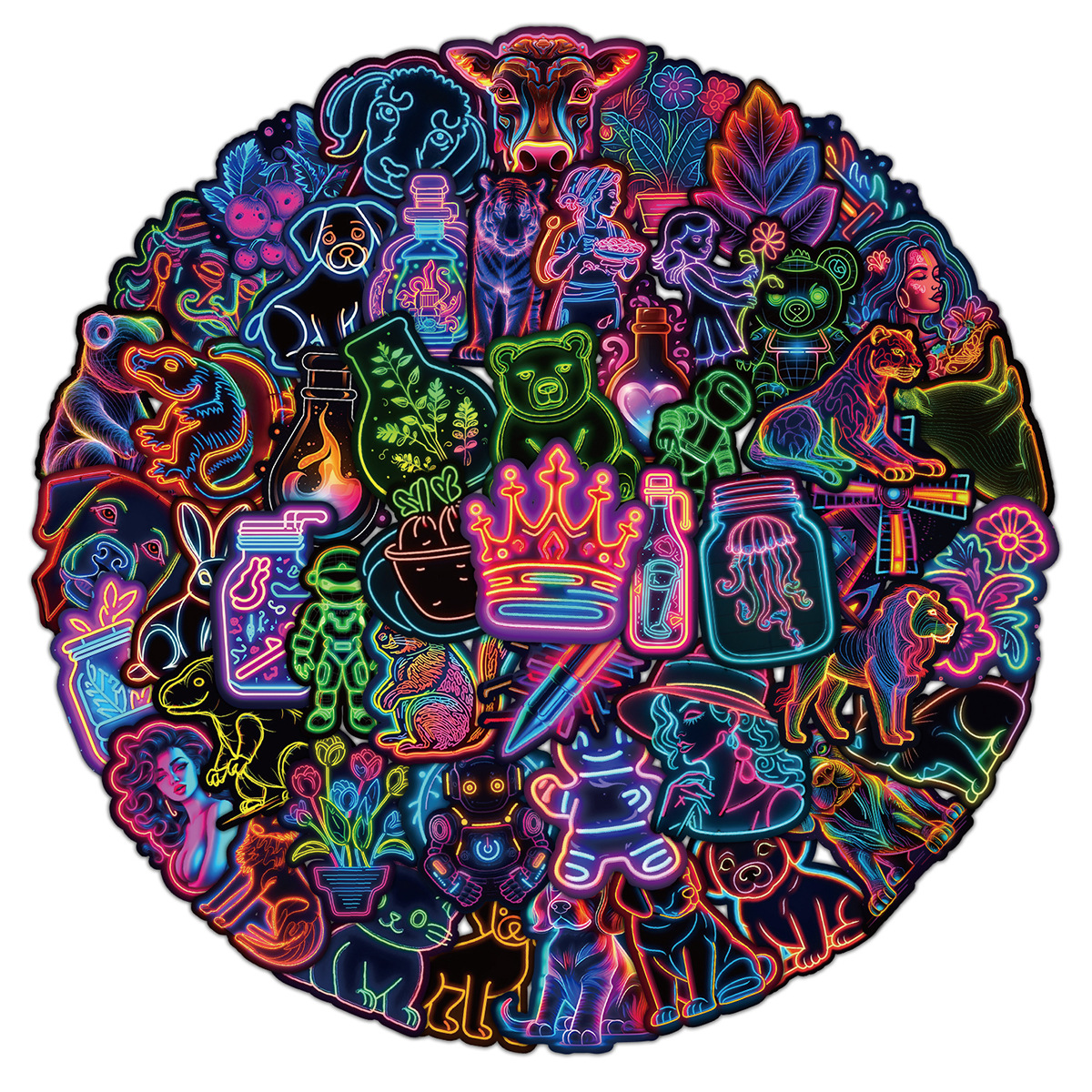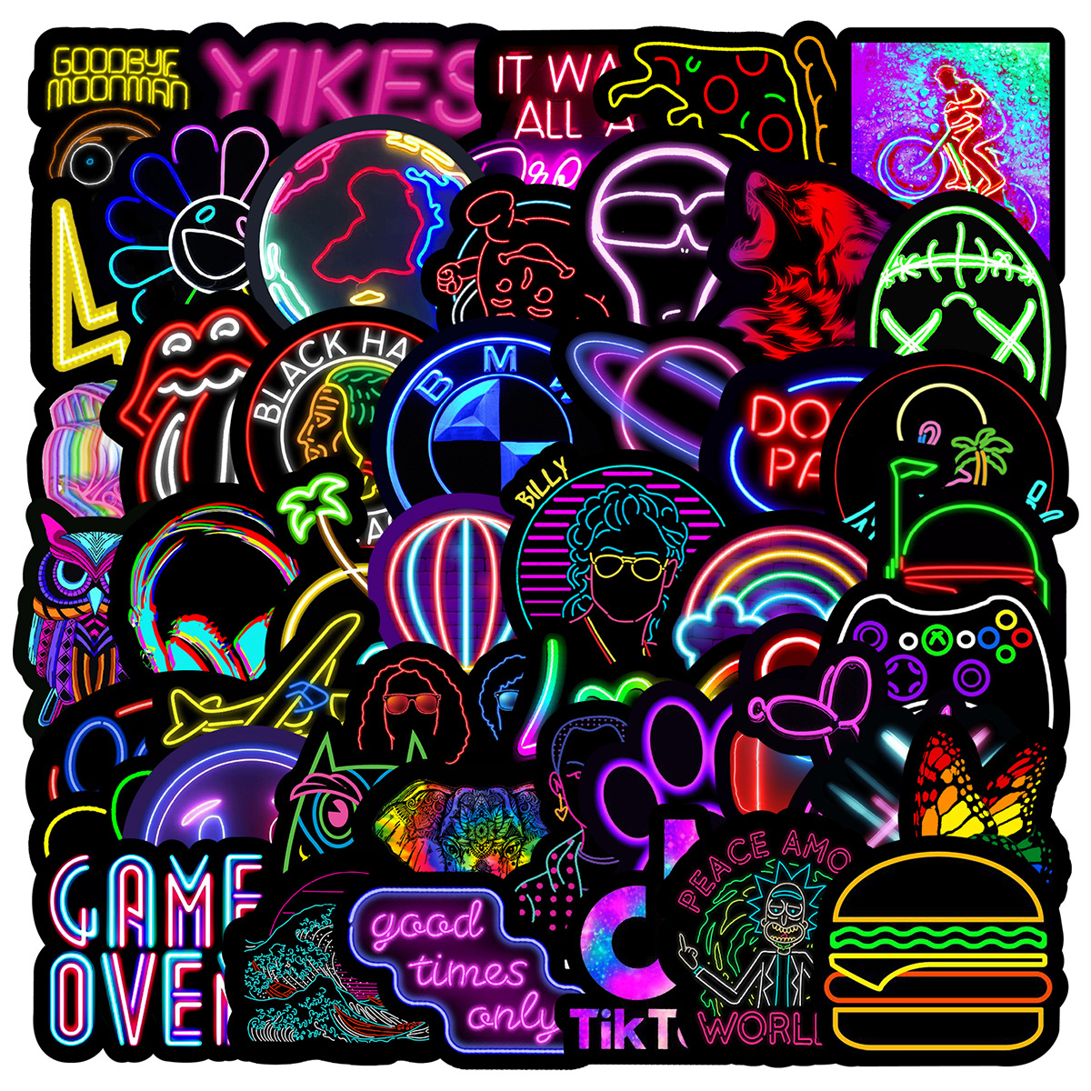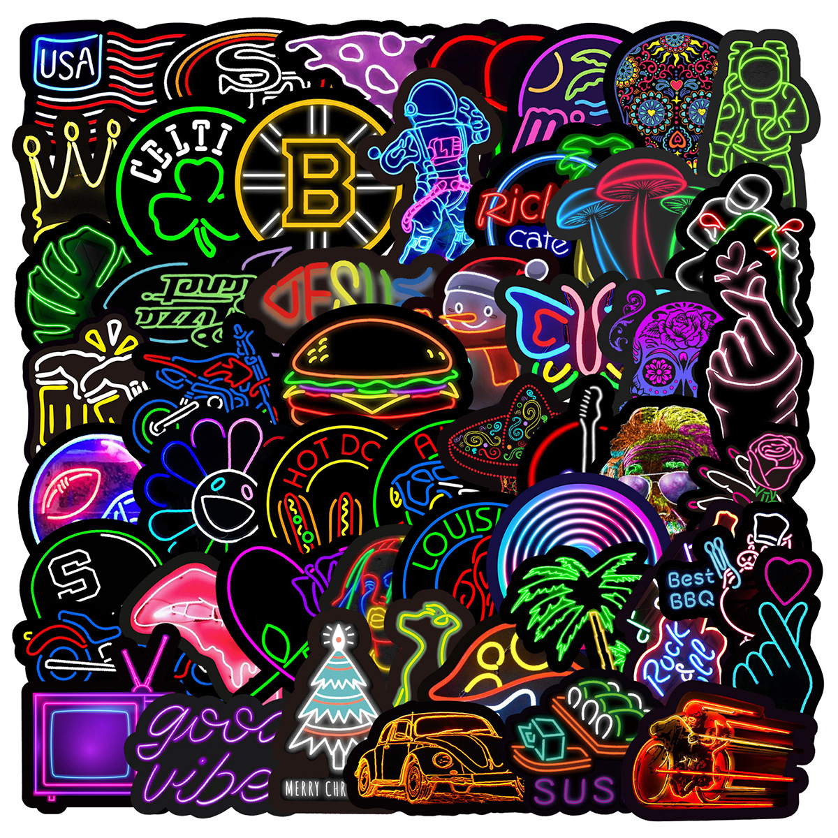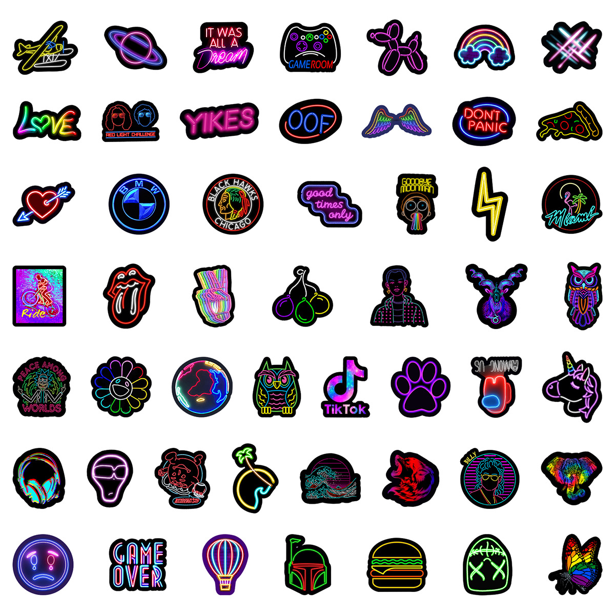 Stiker grafiti gaya neon, 50/100/200 lembar stiker dekorasi cangkir air notebook komputer ponsel tahan air