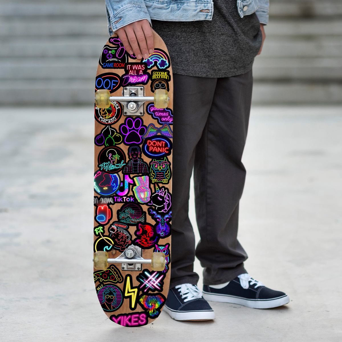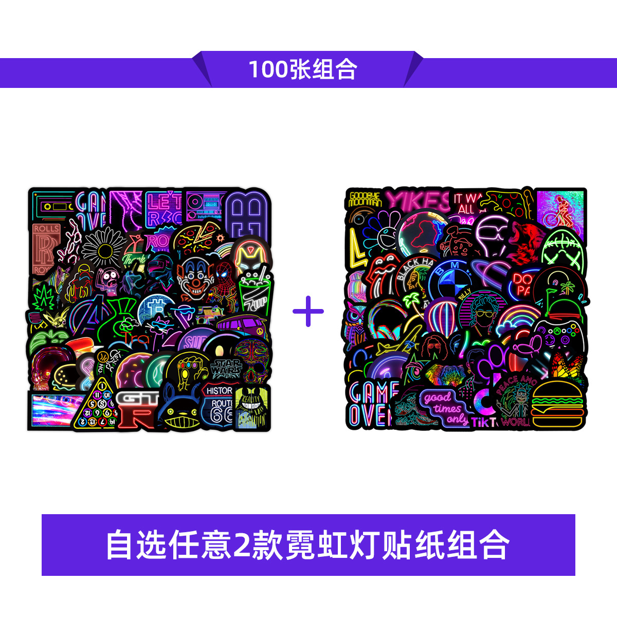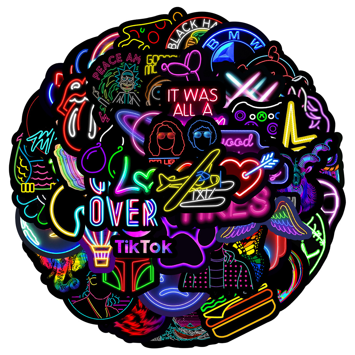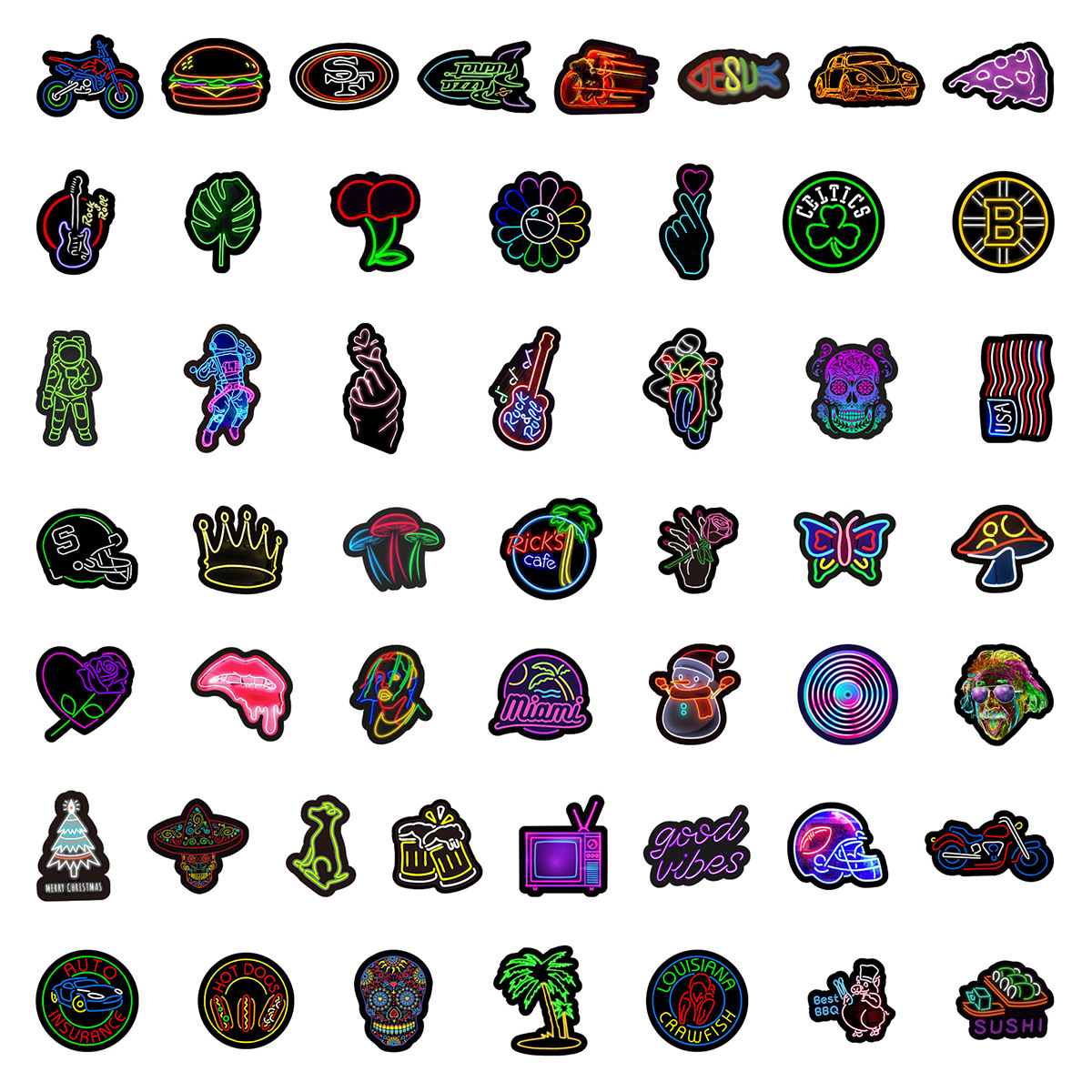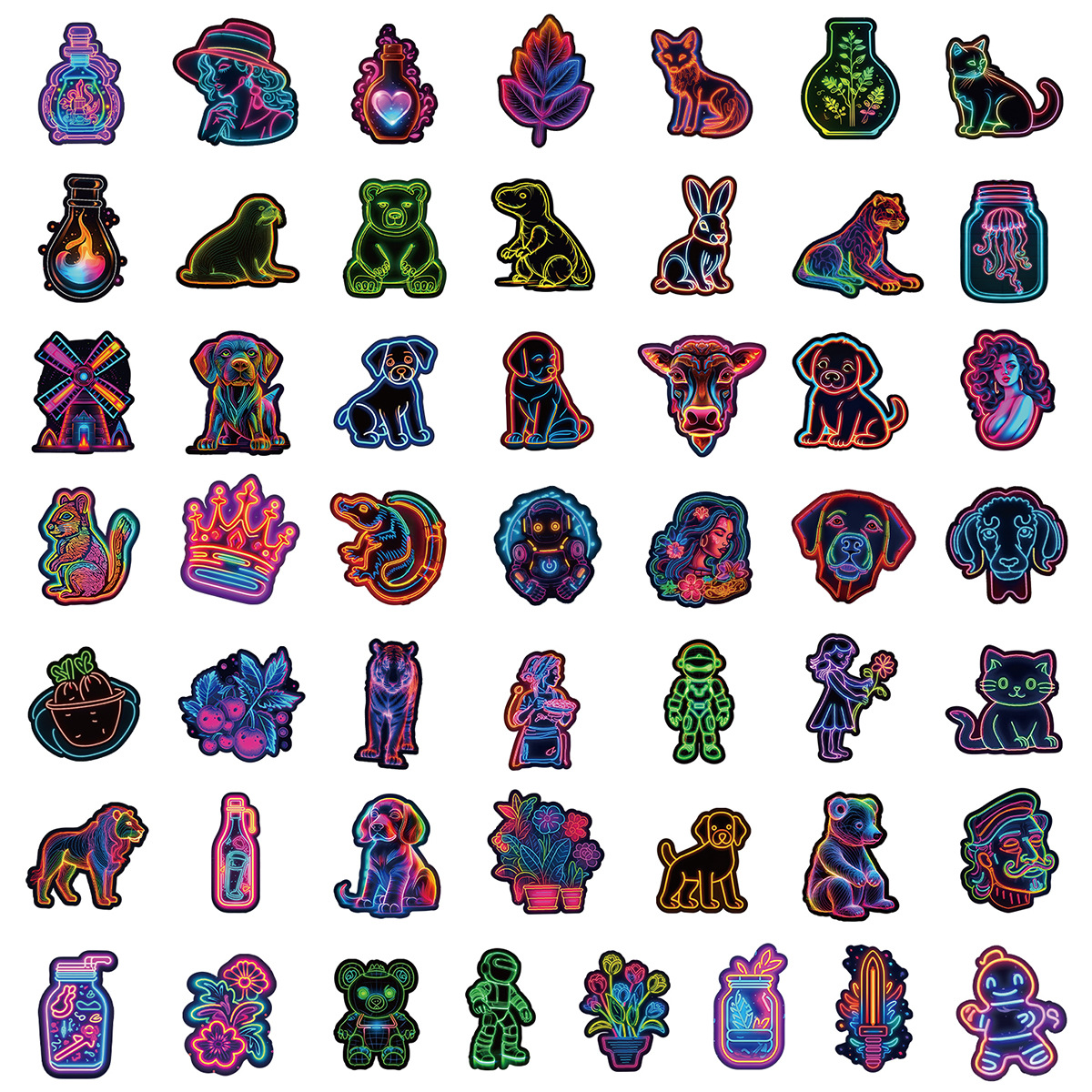 Stiker grafiti gaya neon, 50/100/200 lembar stiker dekorasi cangkir air notebook komputer ponsel tahan air