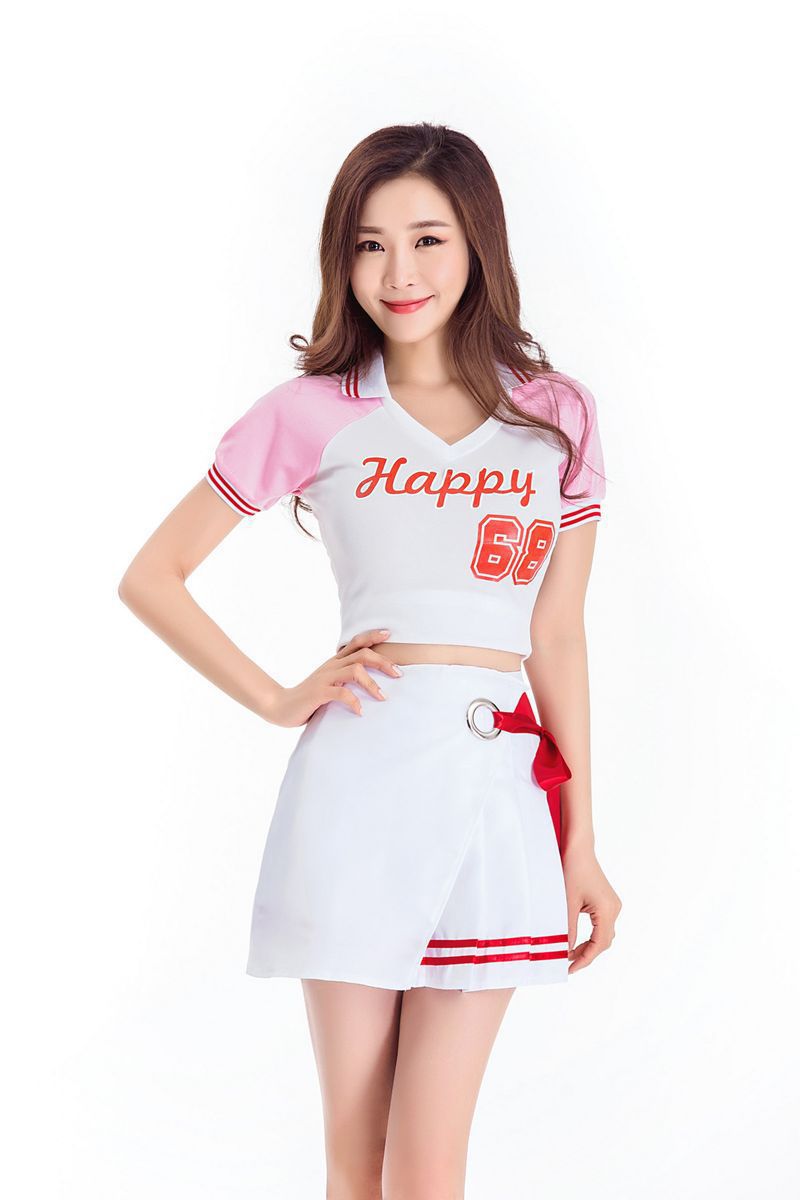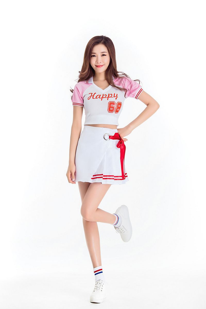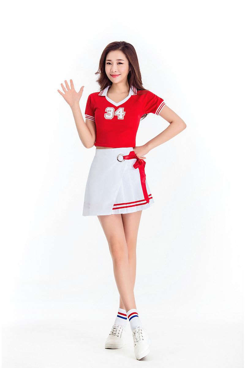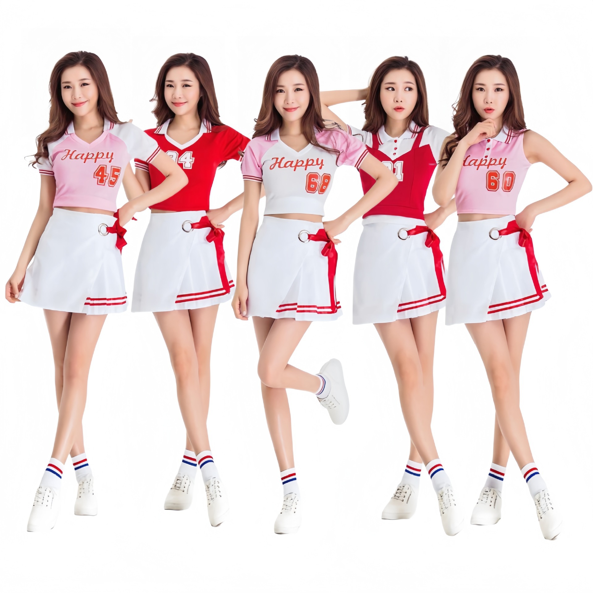 Universe pakaian performa cheerleader wanita, setelan baju atasan pendek dua potong untuk pelajar, baju performa Grup wanita