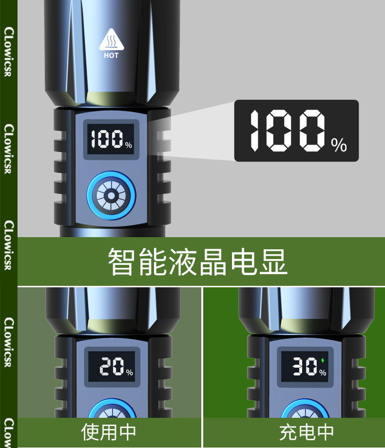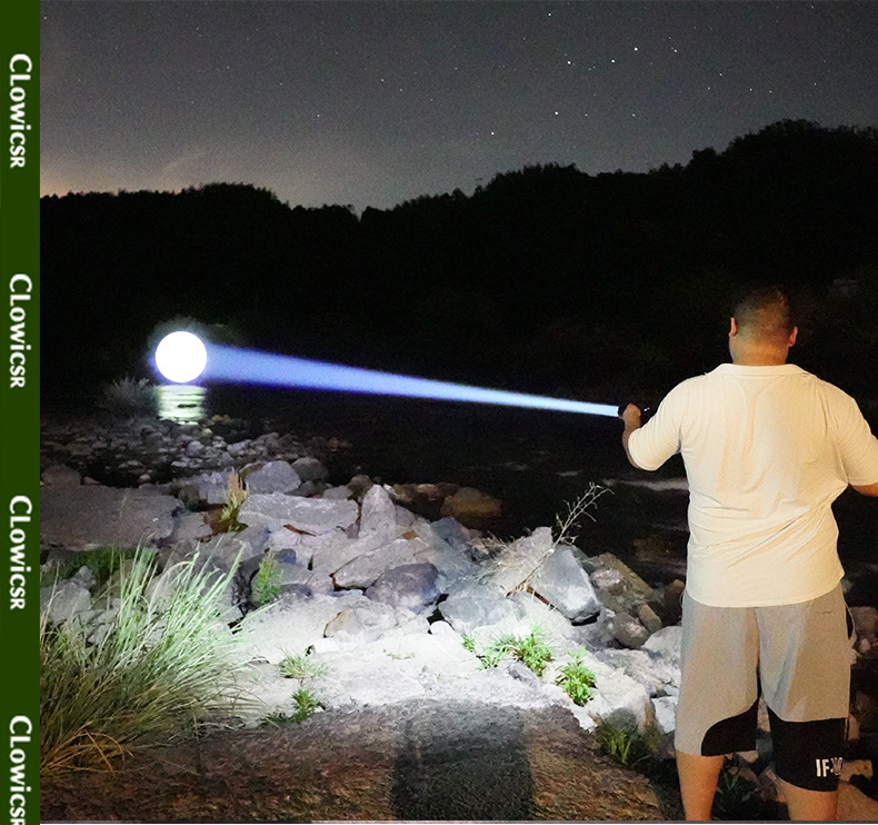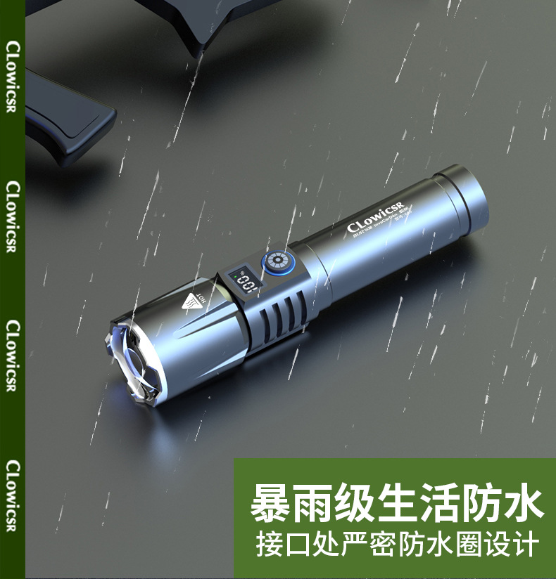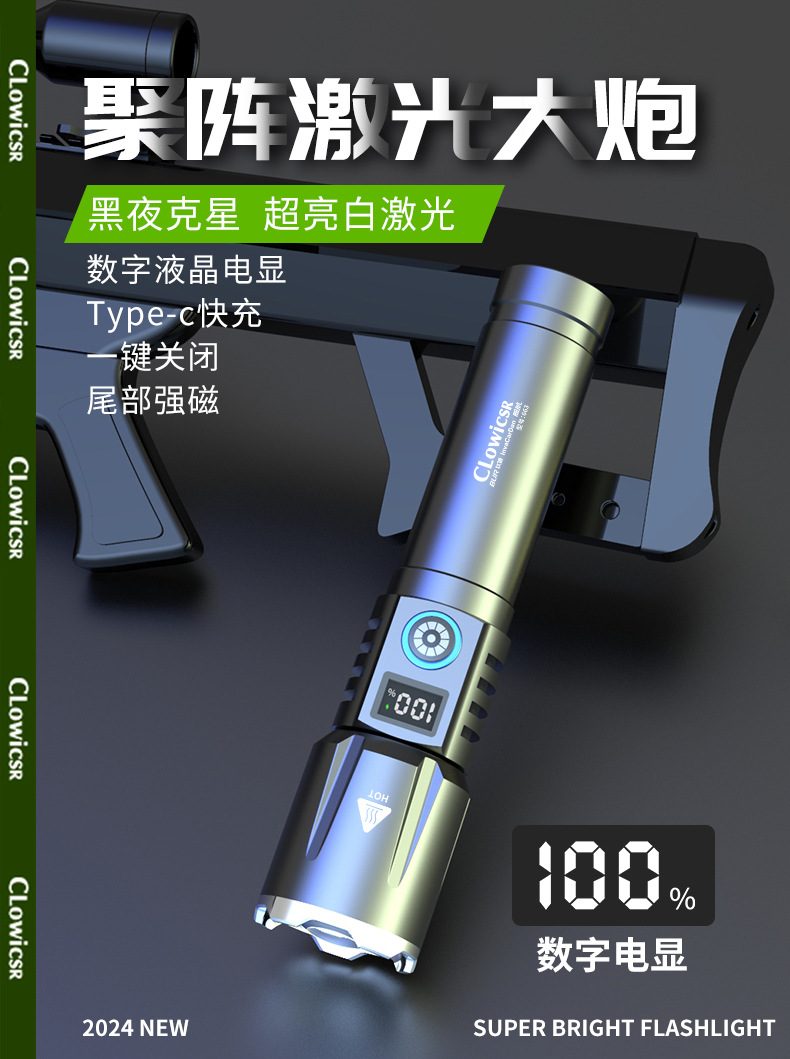 Senter laser Putih lintas batas, senter jarak jauh tampilan digital LCD lampu kuat pengisian luar ruangan magnet zoom taktis super terang