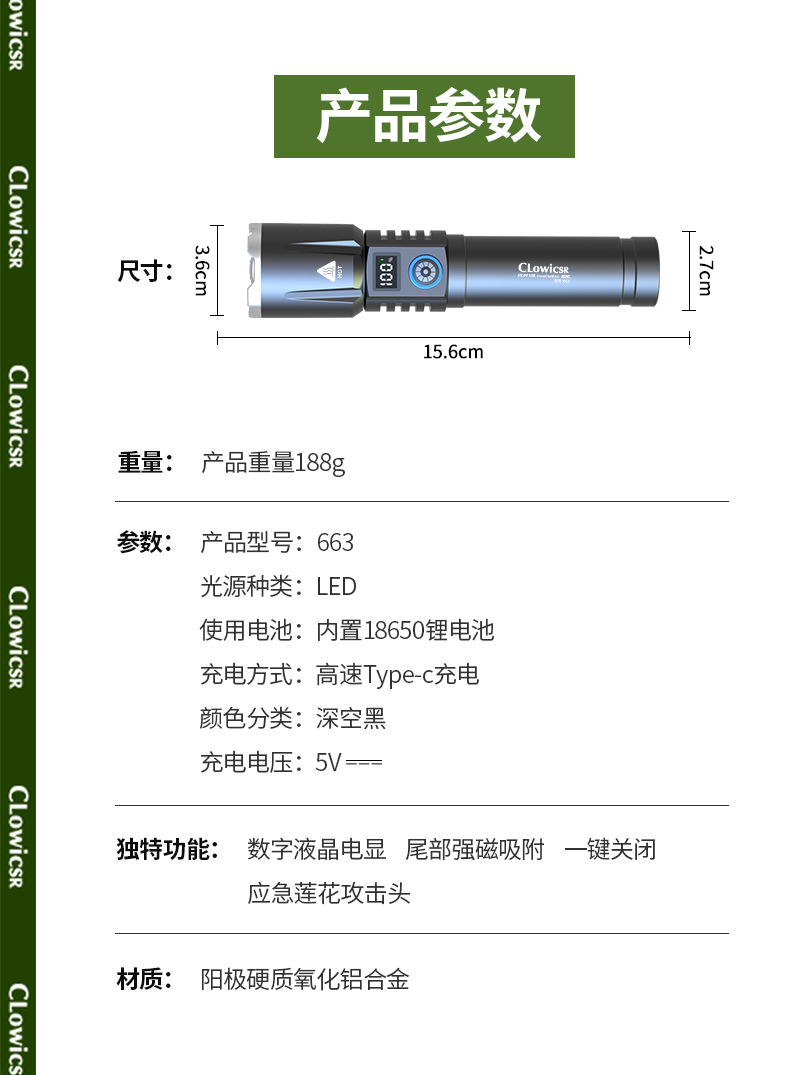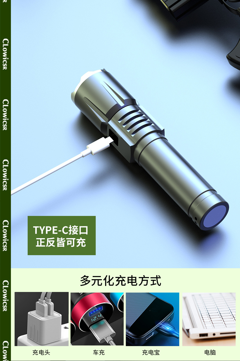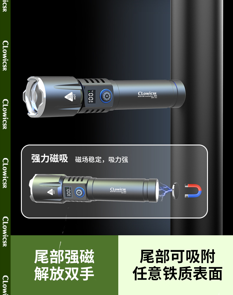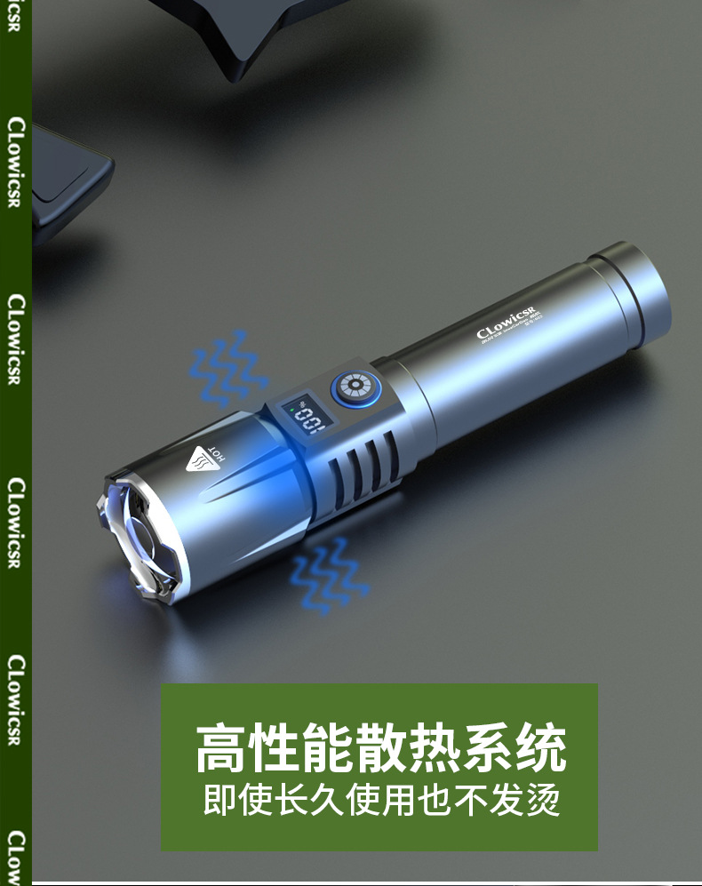 Senter laser Putih lintas batas, senter jarak jauh tampilan digital LCD lampu kuat pengisian luar ruangan magnet zoom taktis super terang
