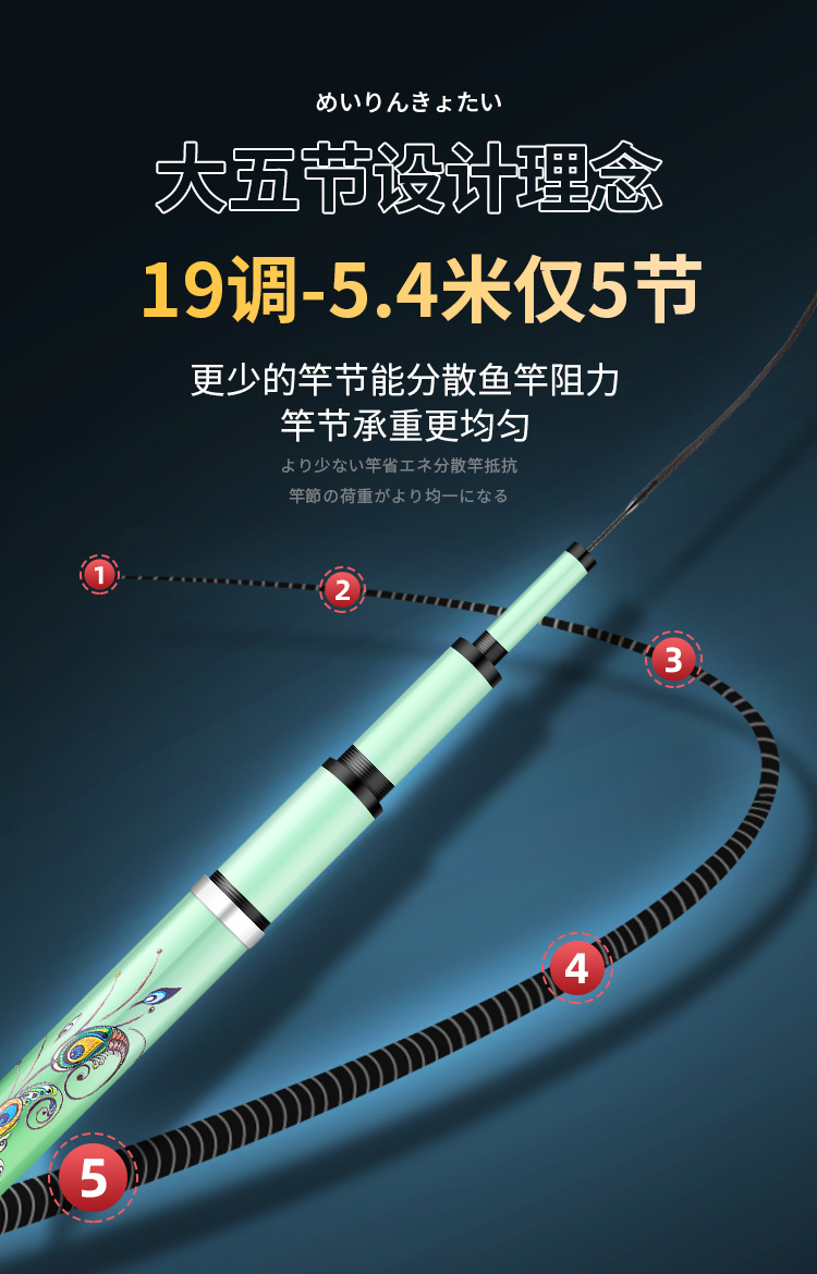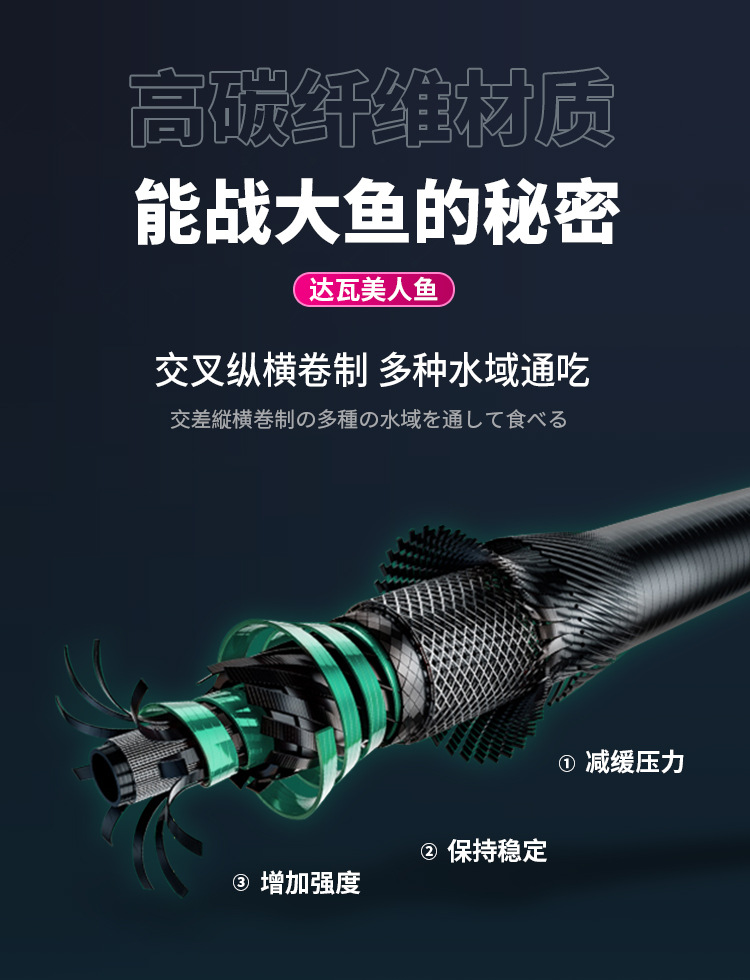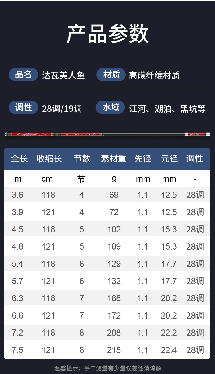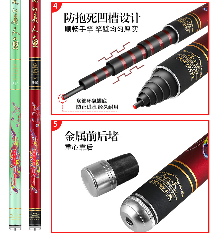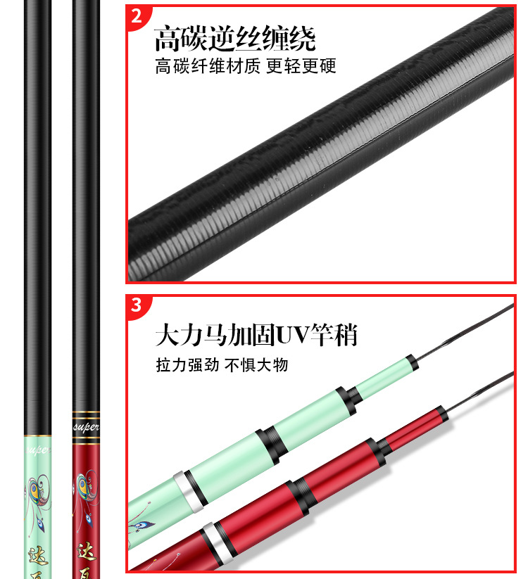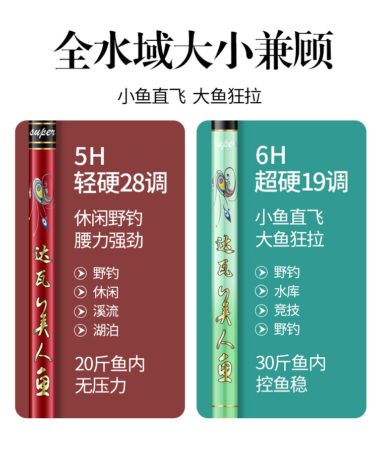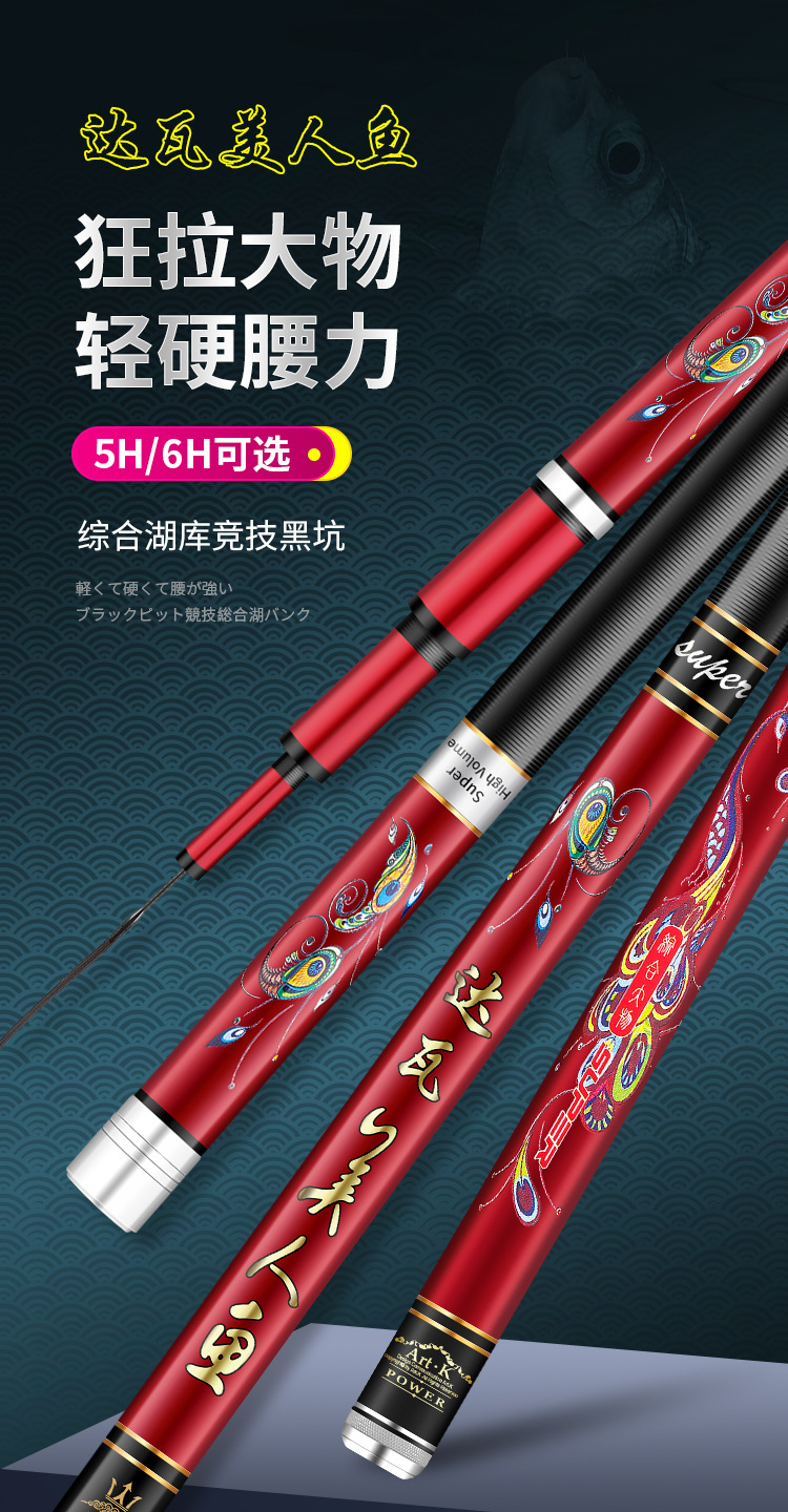Dawa putri duyung tongkat pancing karbon tongkat pancing 5H28 disesuaikan 6H19 tongkat pancing ikan mas hitam pit batang komprehensif grosir tersedia