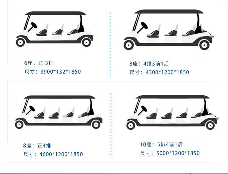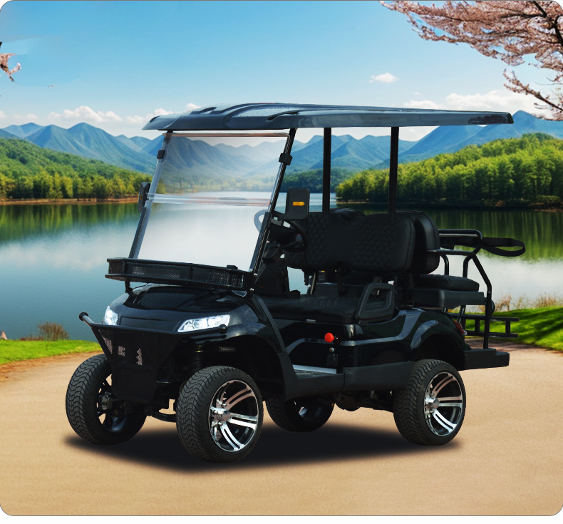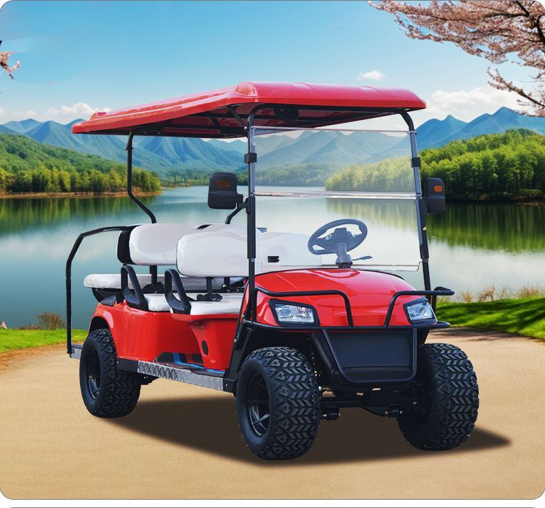 Kereta golf elektrik 4 tempat duduk 6 tempat duduk 8 kursi, mobil resepsi patroli wisata off-road, warna Keranjang golf