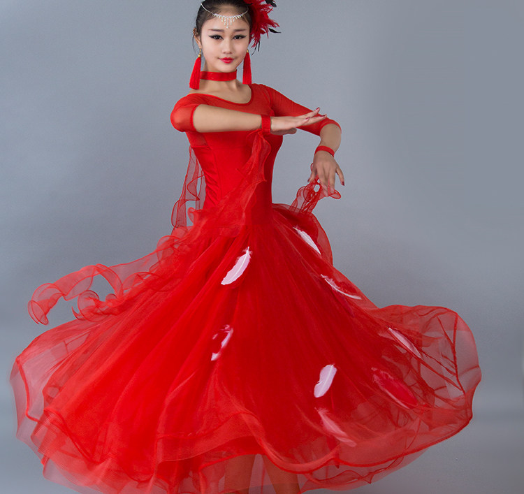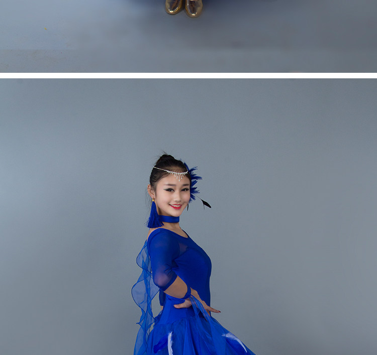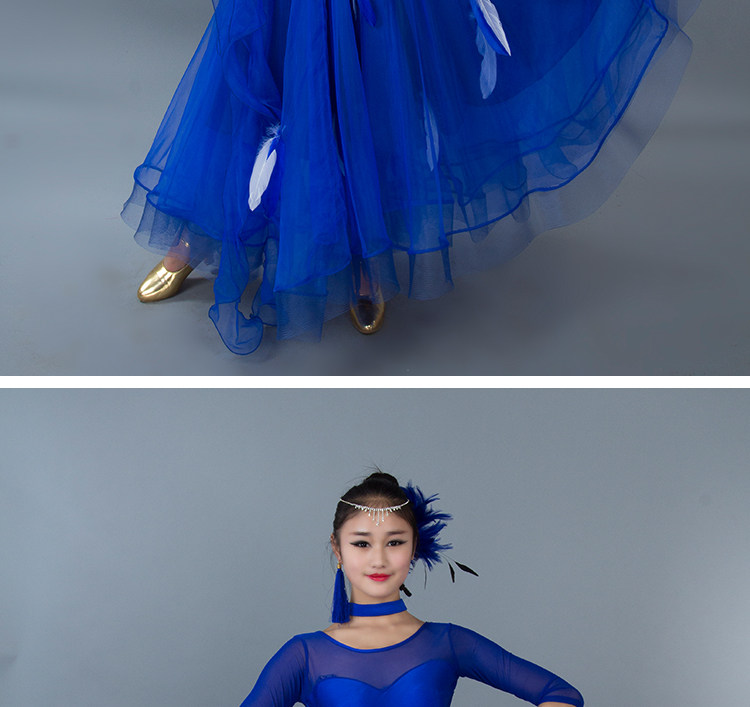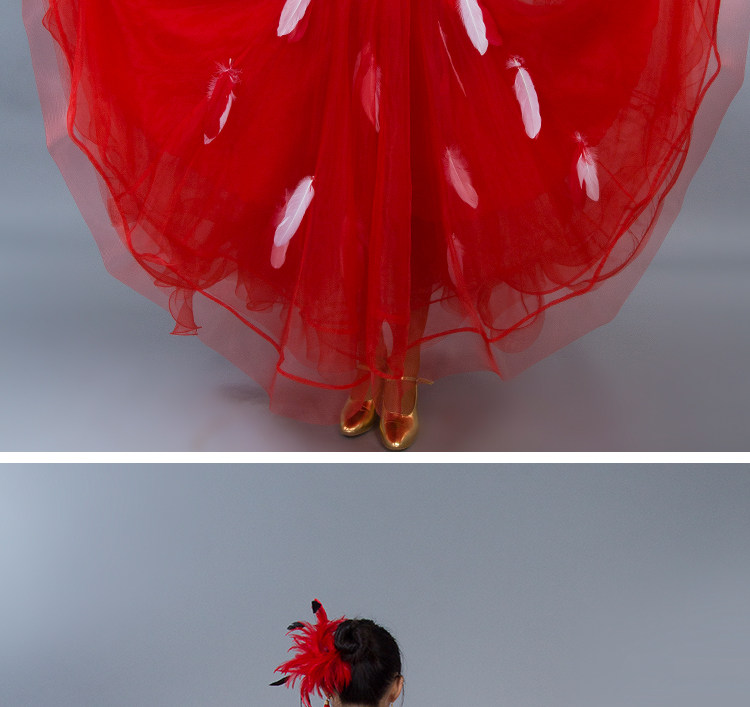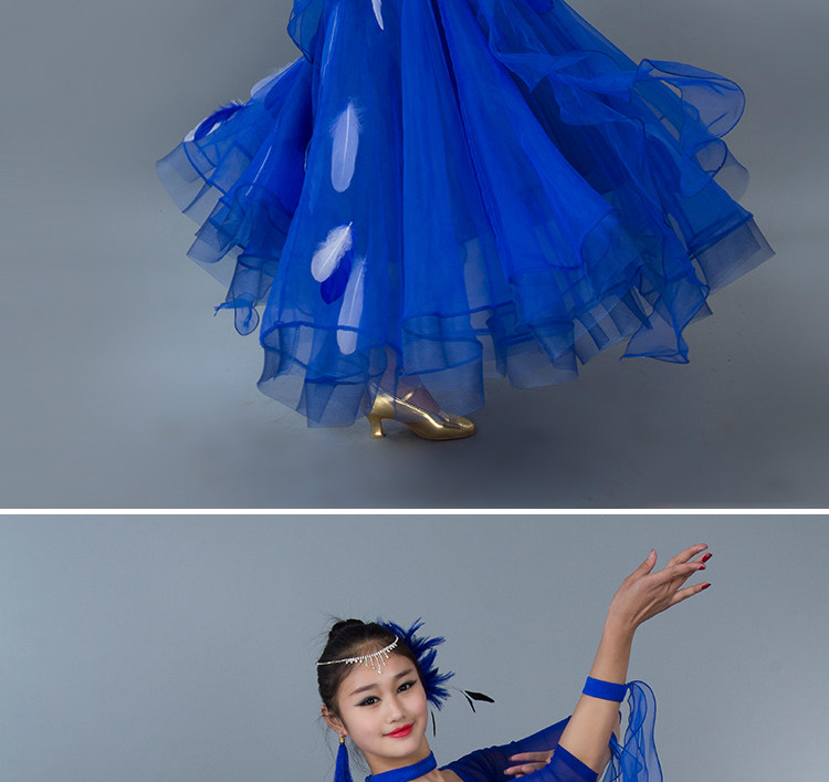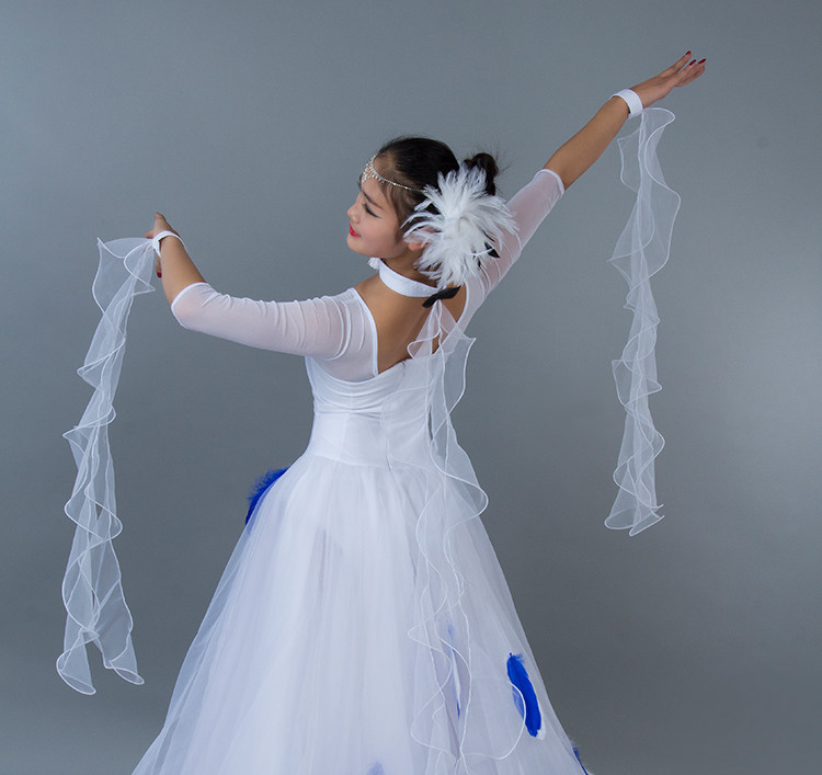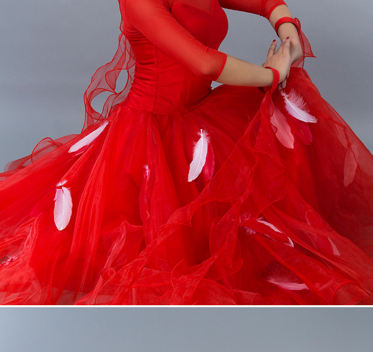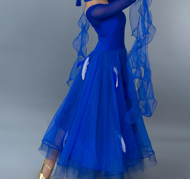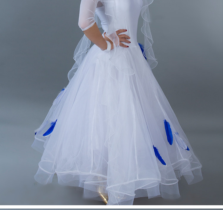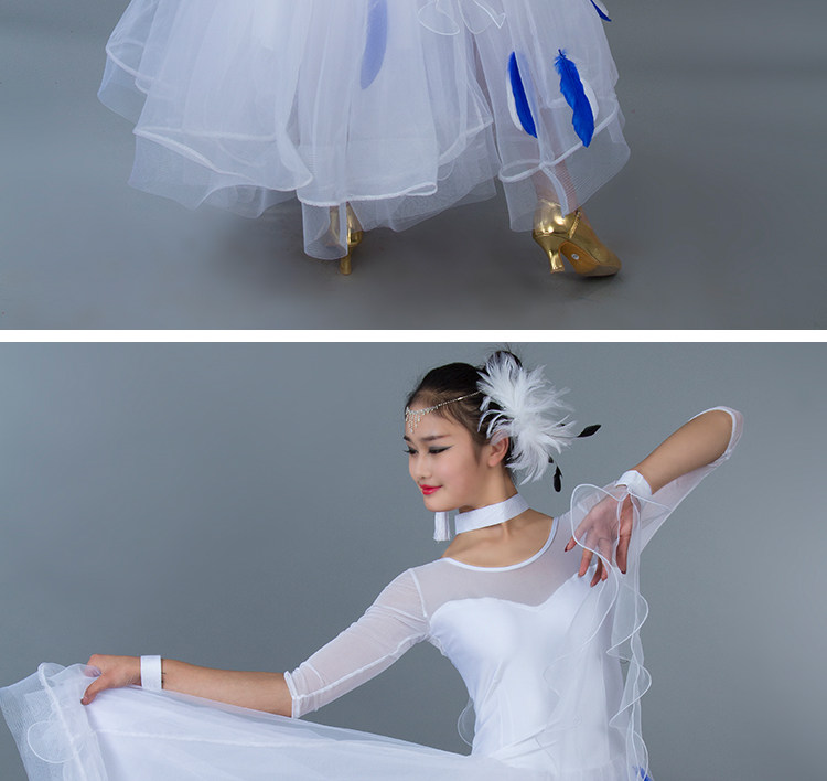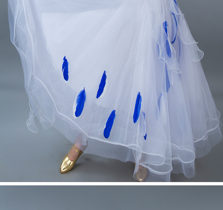 Kostum dansa modern bulu baru gaun tari standar nasional rok kompetisi rok tari Waltz rok ayunan besar MD052