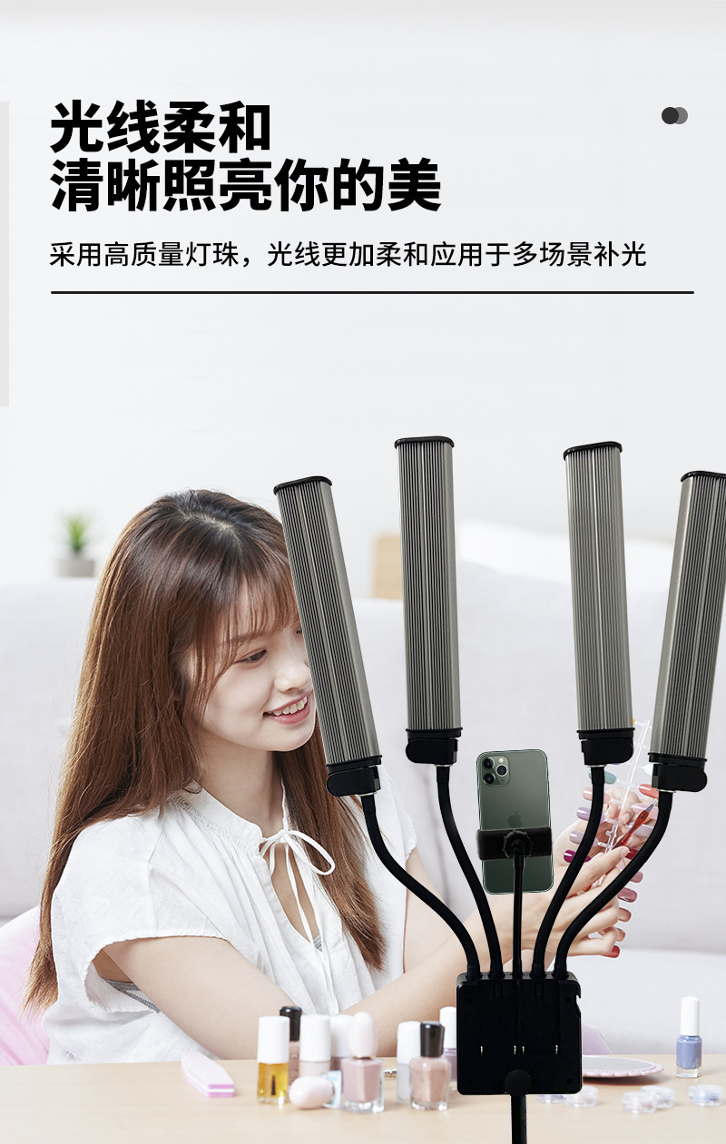 Lampu LED kecantikan ponsel, lampu fotografi empat tabung dapat dilipat lintas batas