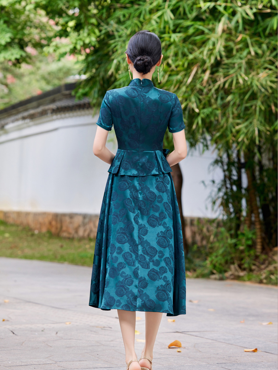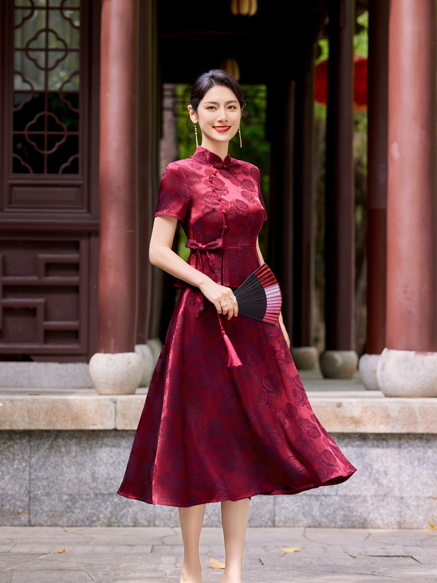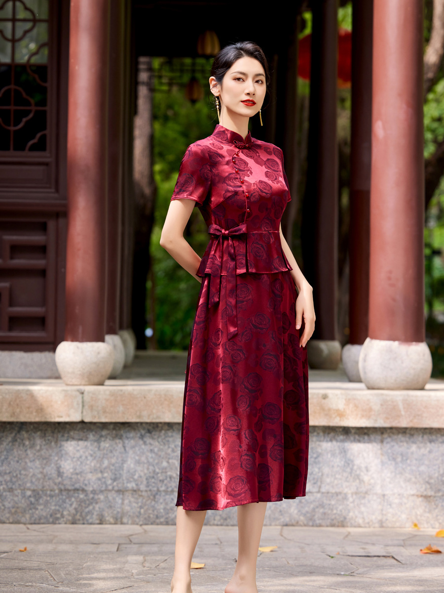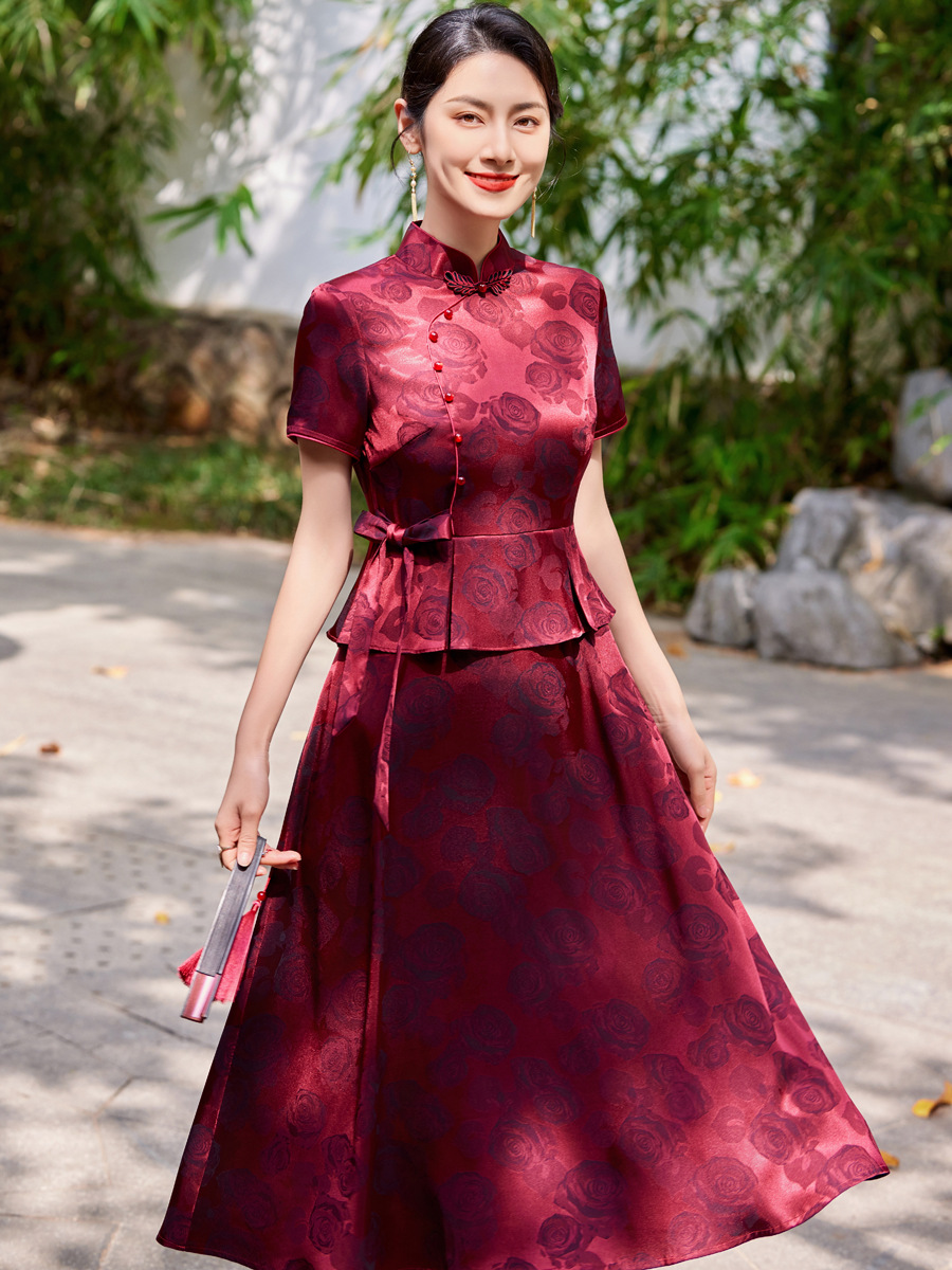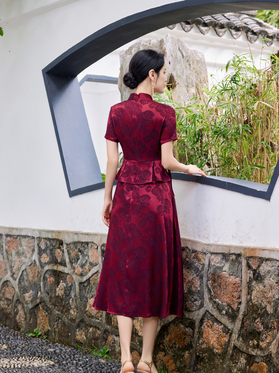 Xi gaun jamuan Pernikahan Ibu imitasi asetat, gaun cheongsam gaya nasional mulia palsu dua potong