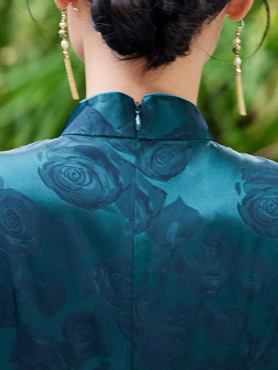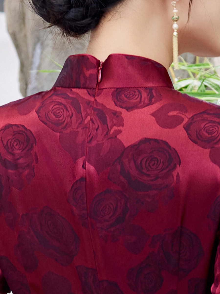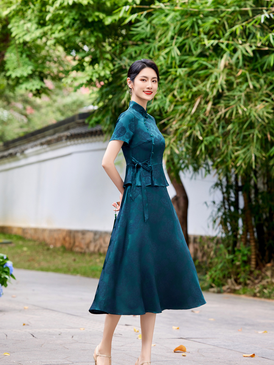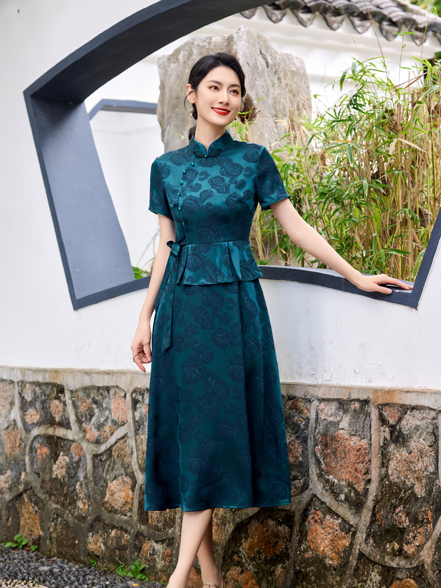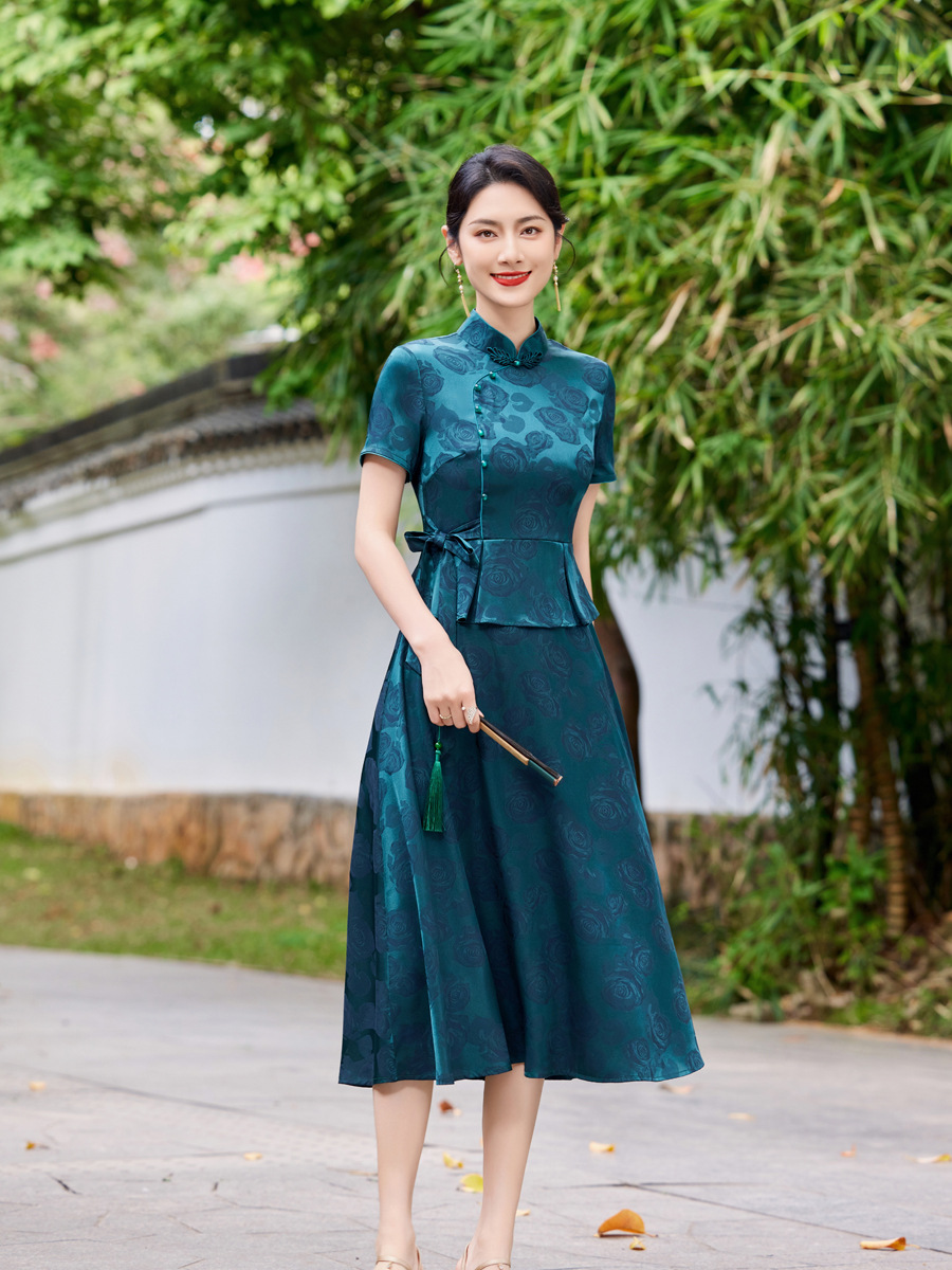 Xi gaun jamuan Pernikahan Ibu imitasi asetat, gaun cheongsam gaya nasional mulia palsu dua potong