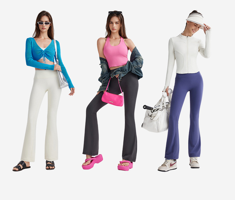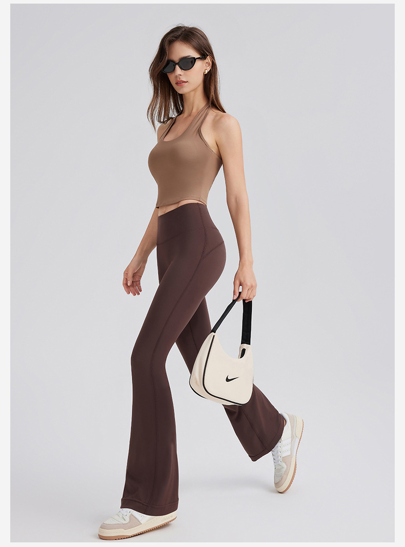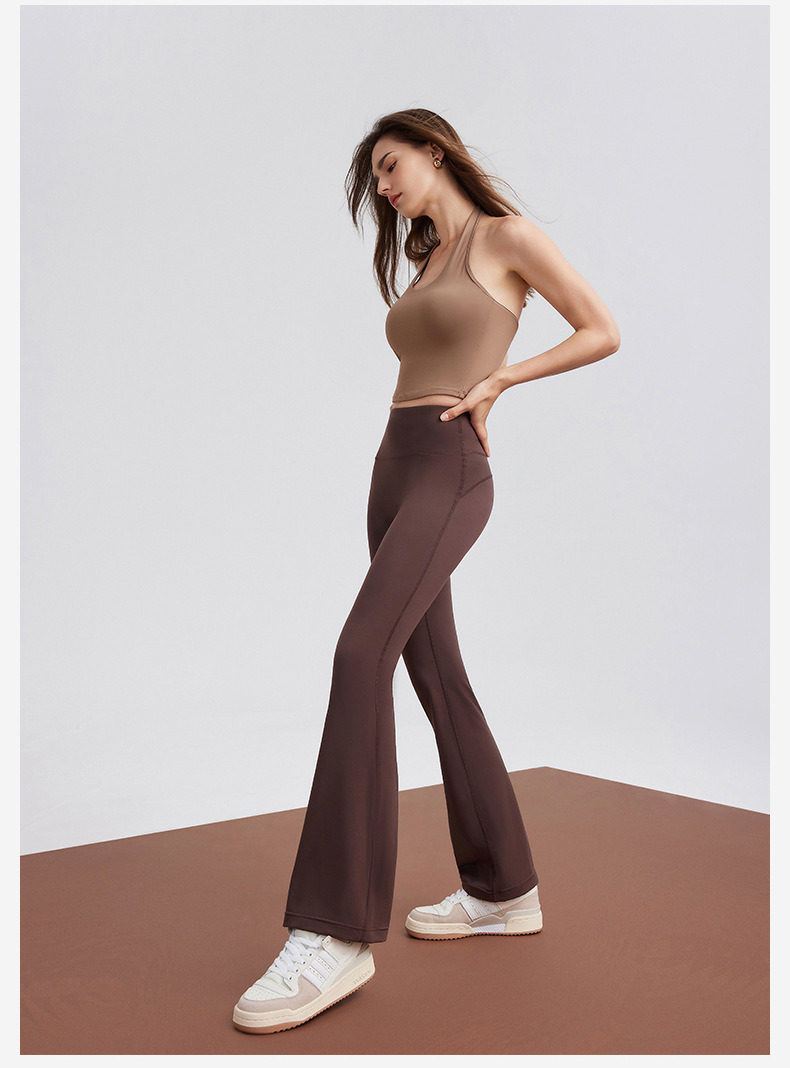 Celana yoga telanjang untuk dipakai wanita sebagai pakaian luar, celana kasual kebugaran olahraga pengangkat pantat tampilan pelangsing pinggang tinggi tipis gaya Amerika berkobar mikro