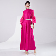 Gaun Miyake ukuran besar perdagangan luar negeri lintas batas, mode baru gradasi, rok panjang muslim wanita Timur Tengah kelas atas untuk wanita