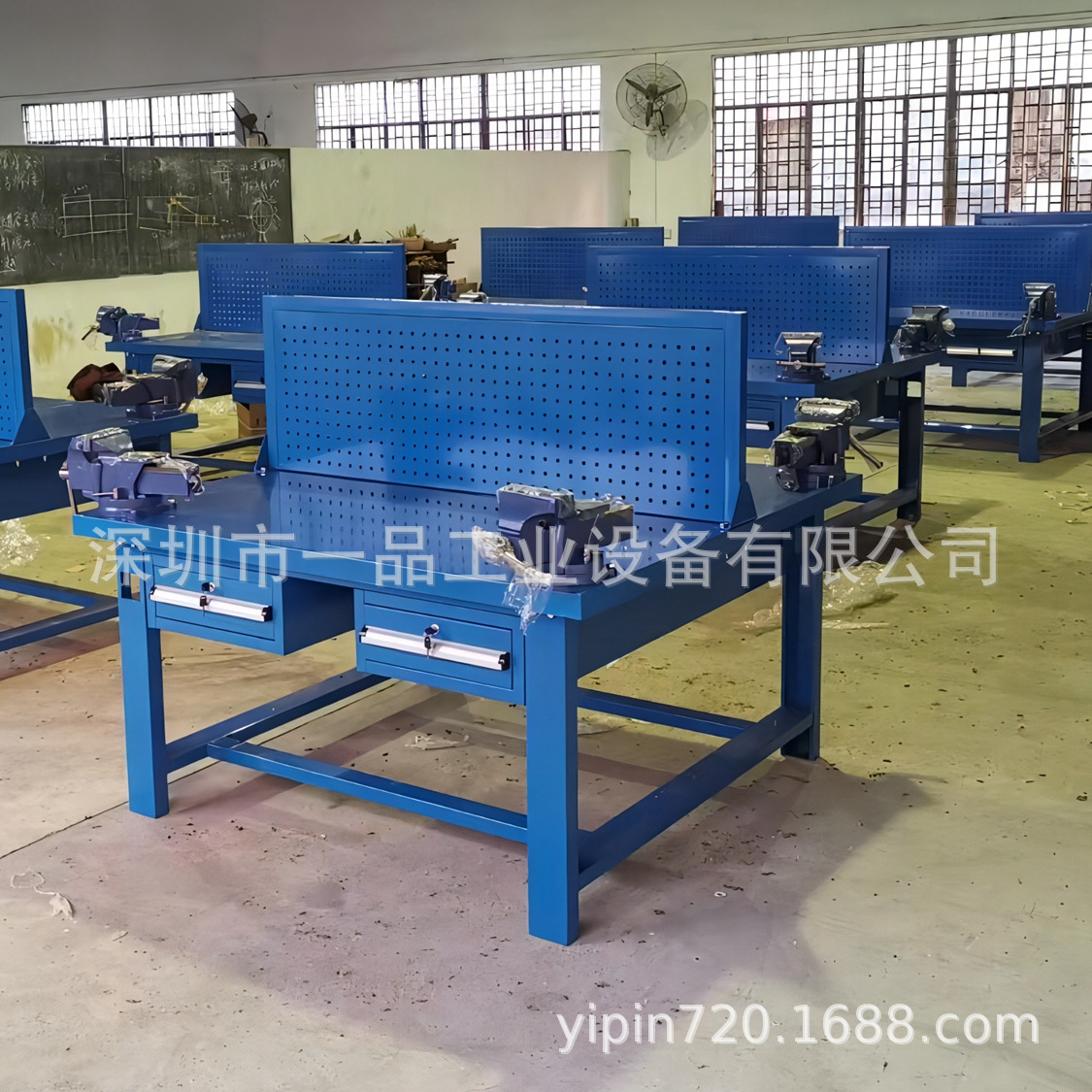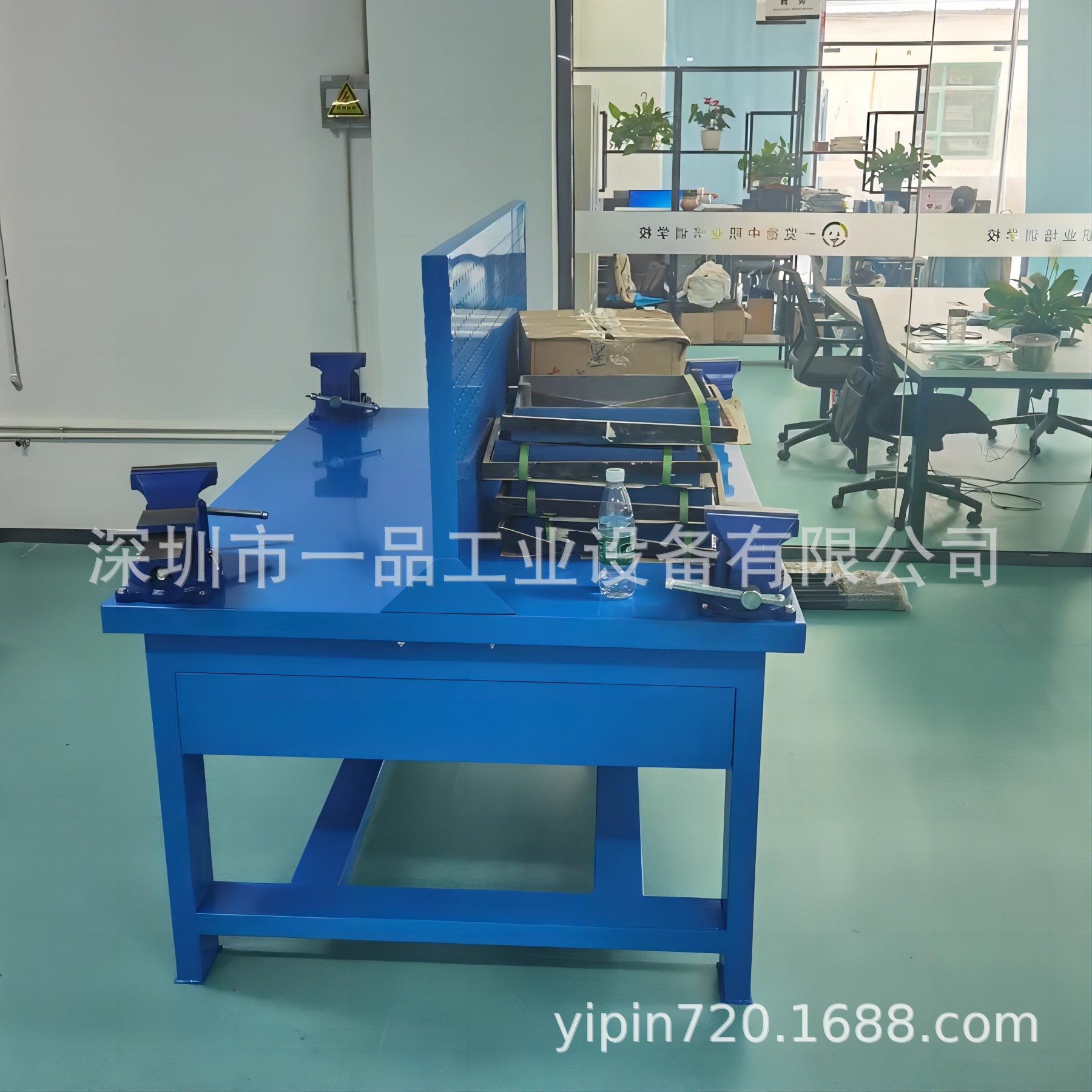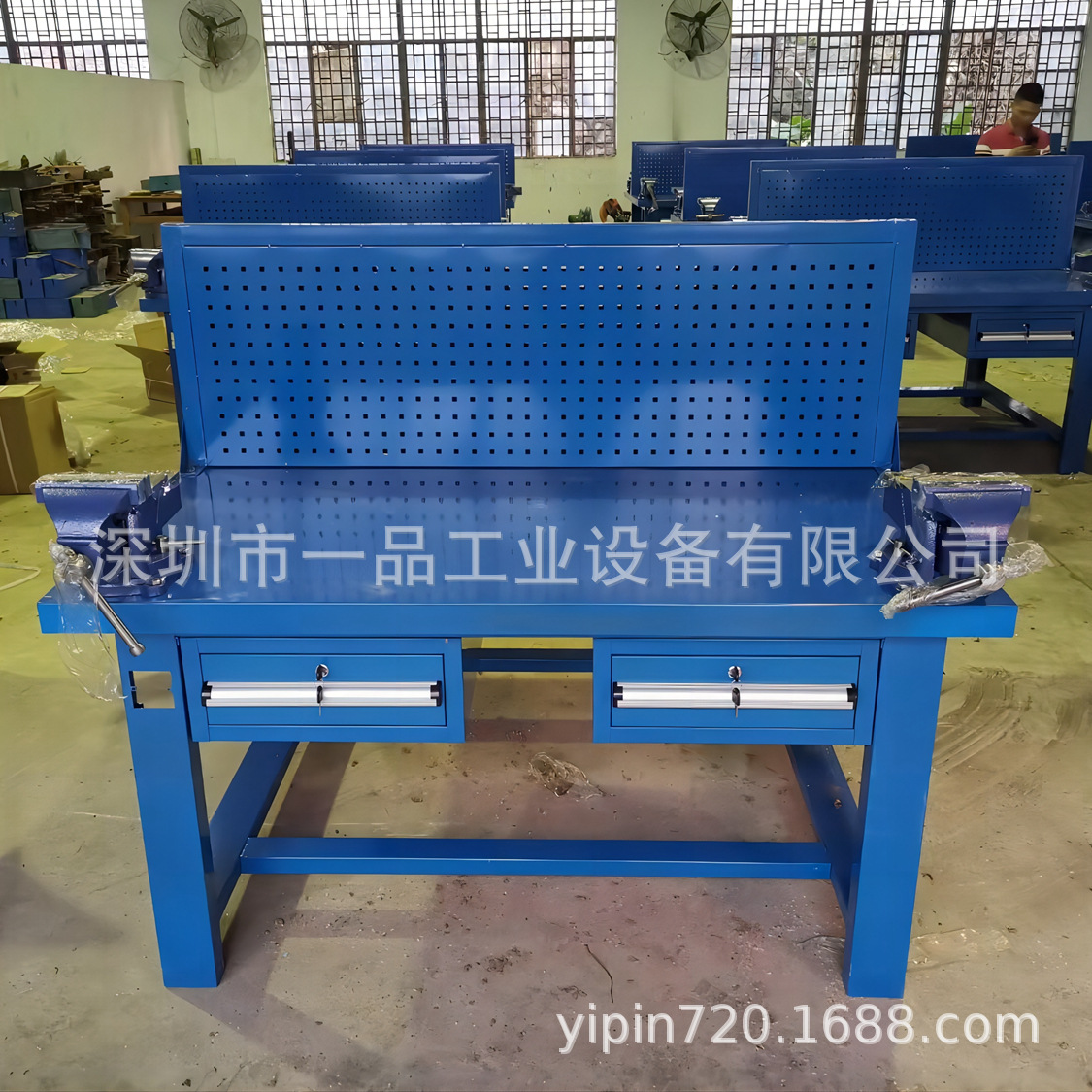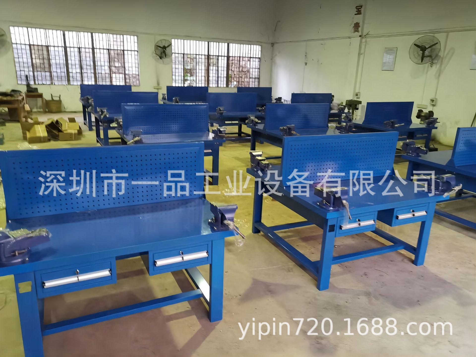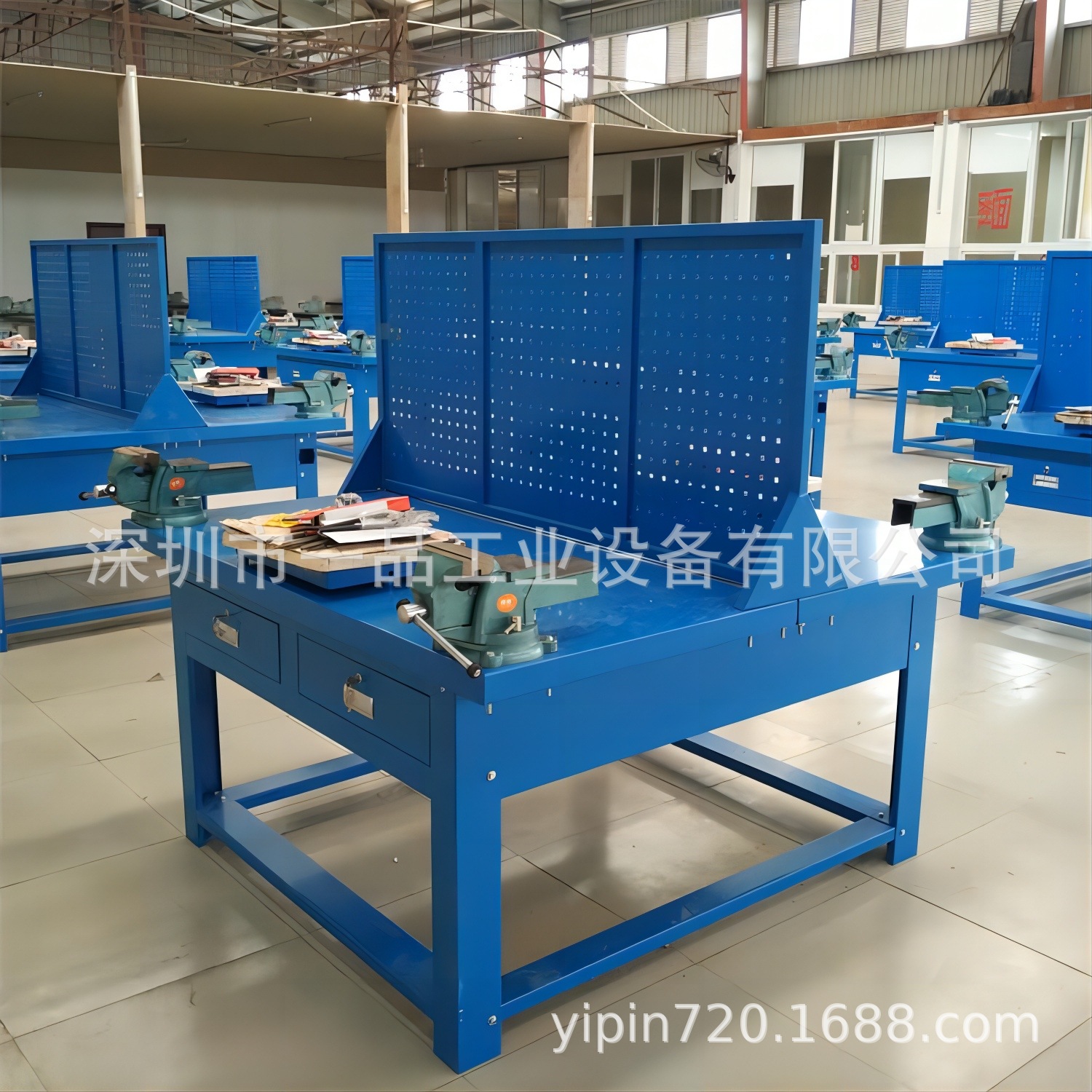 1、钳工桌尺寸(长宽高)1500×750×800mm(挂板高度500,含挂板高度1300mm);