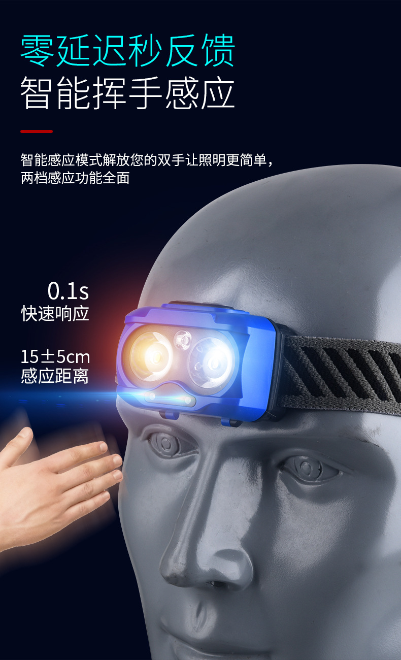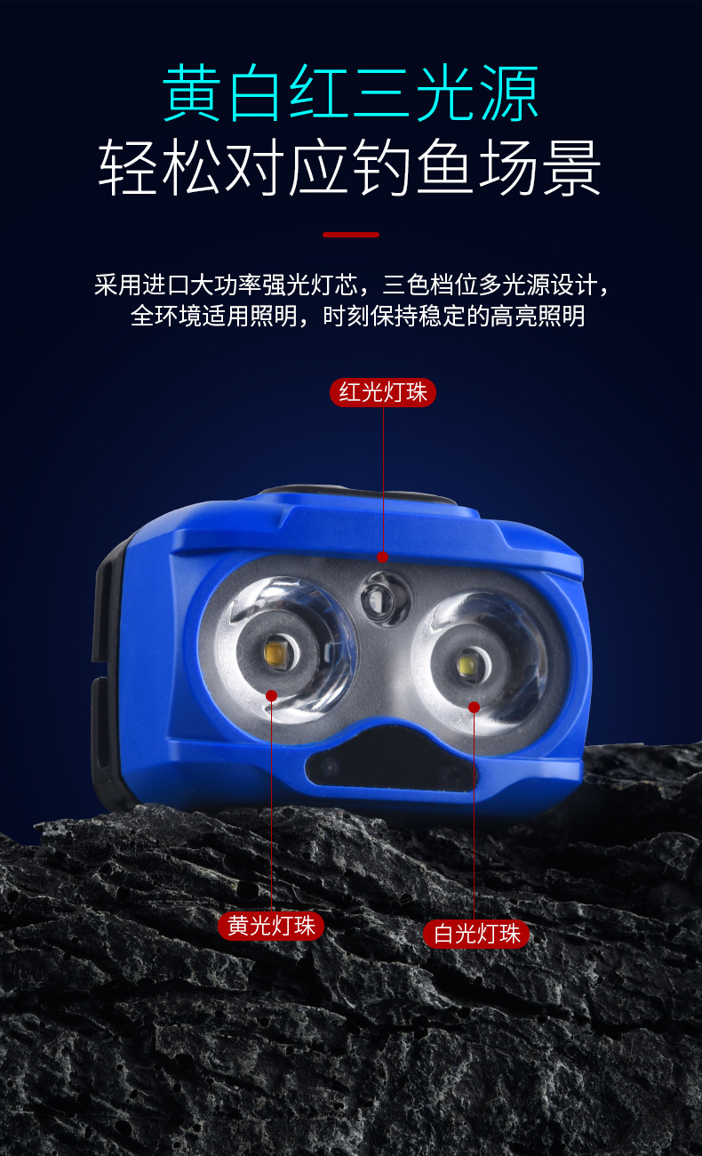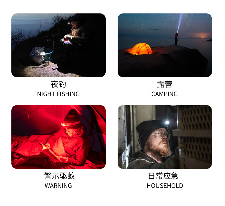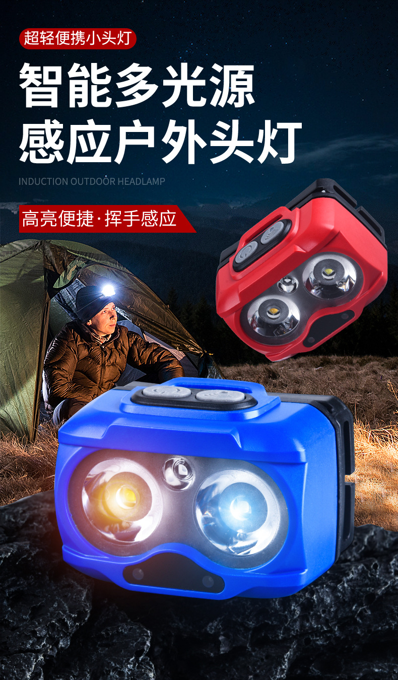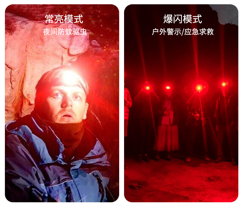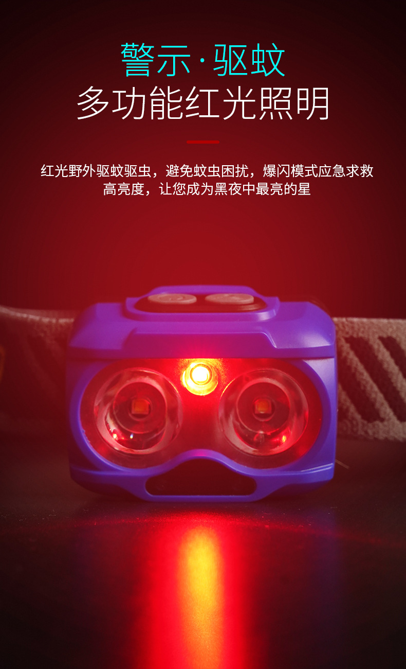 Lampu kepala bercahaya kuat dengan baterai yang dapat dilepas, jenis pengusir nyamuk lampu merah, senter yang dipasang di kepala, lampu LED ultra-terang portabel untuk luar ruangan