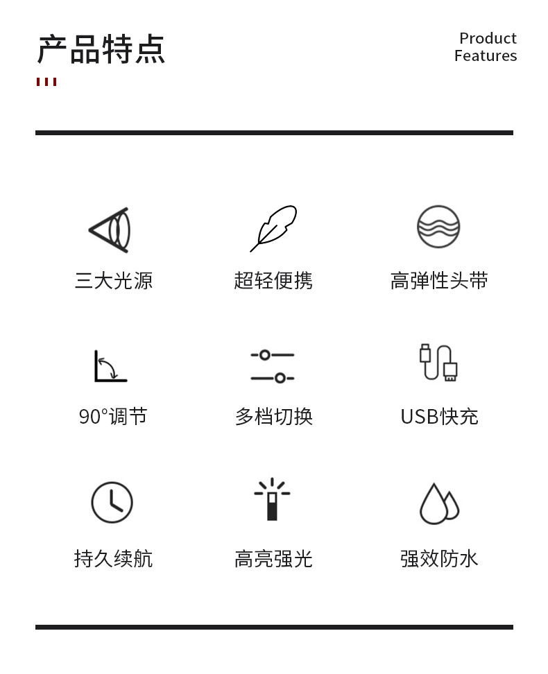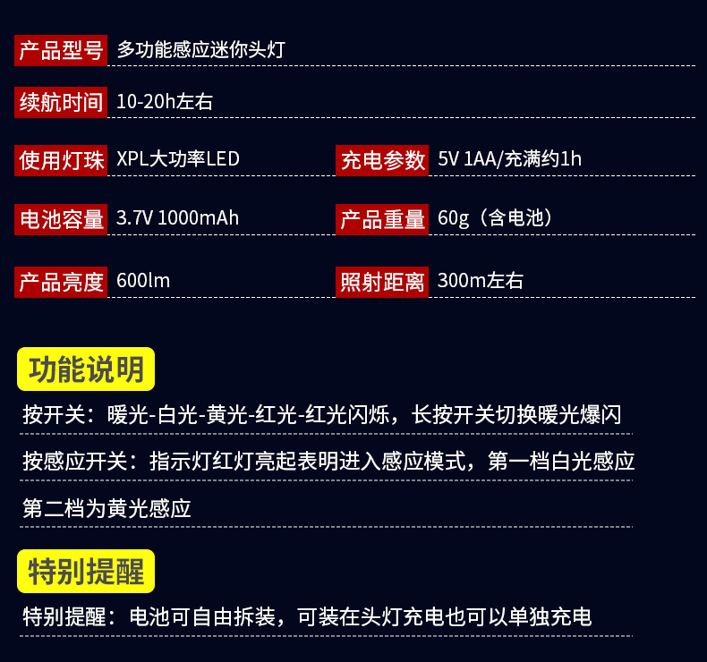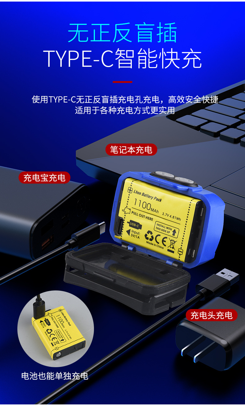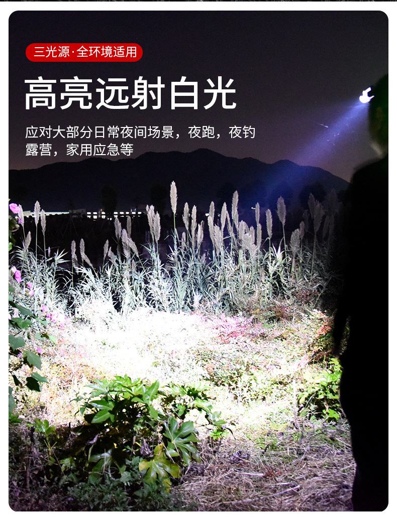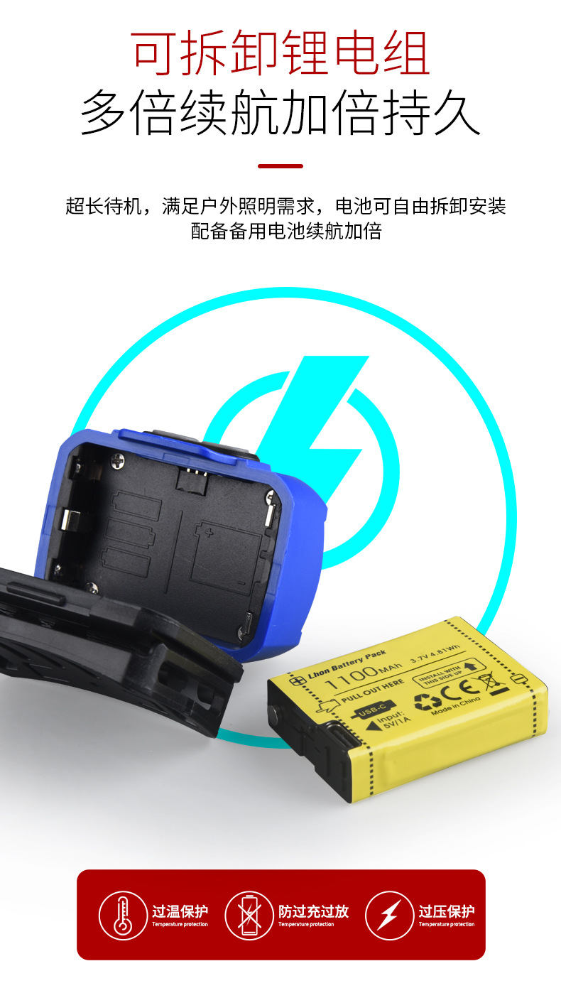 Lampu kepala bercahaya kuat dengan baterai yang dapat dilepas, jenis pengusir nyamuk lampu merah, senter yang dipasang di kepala, lampu LED ultra-terang portabel untuk luar ruangan