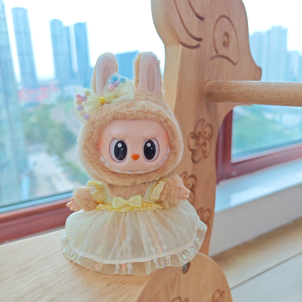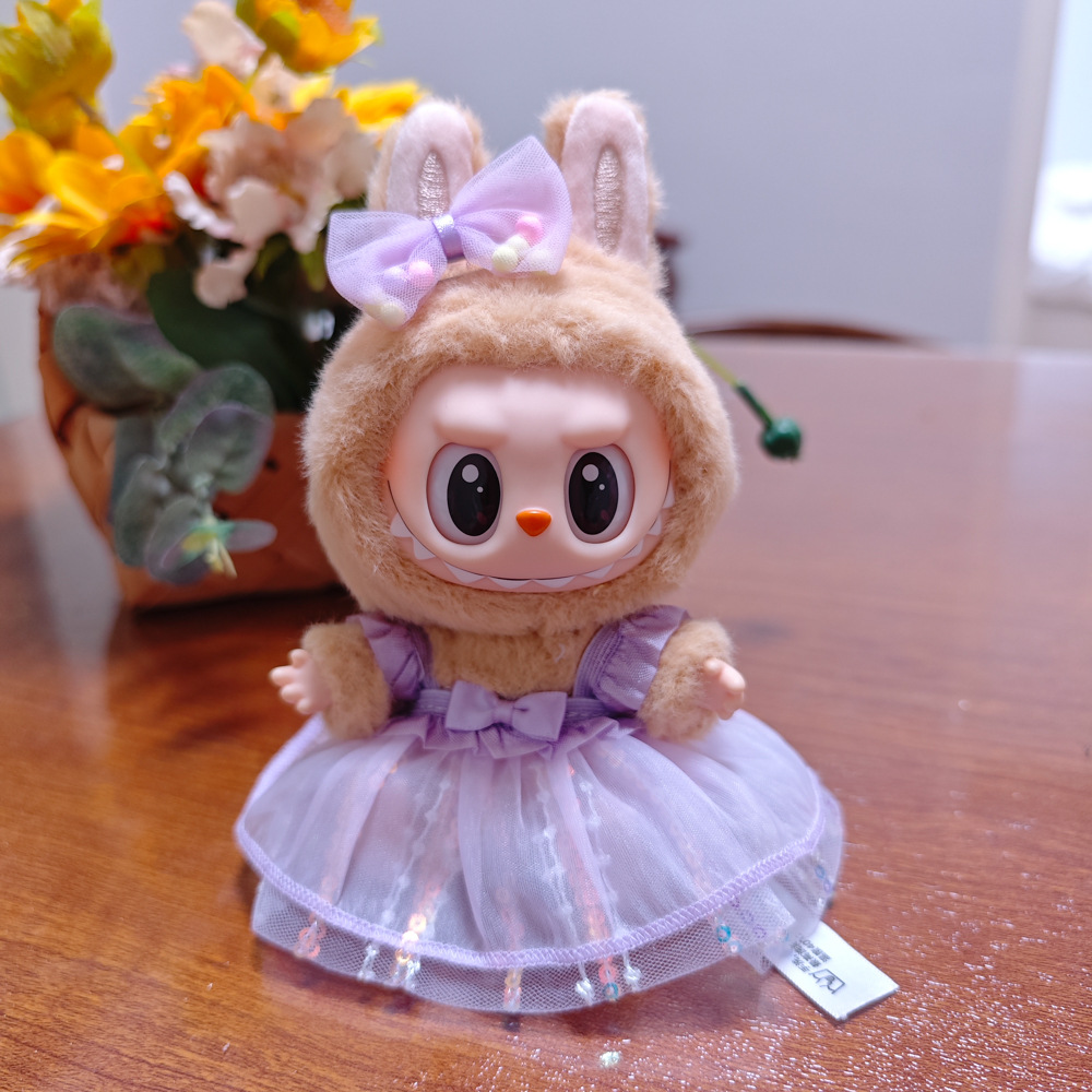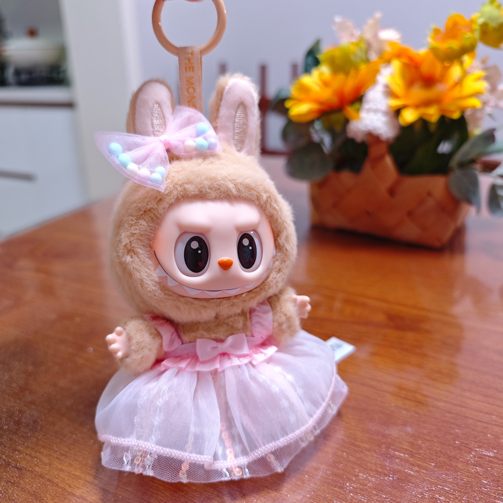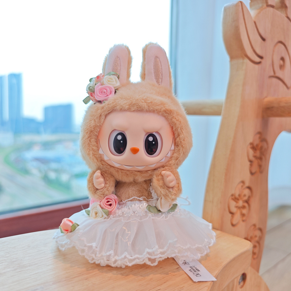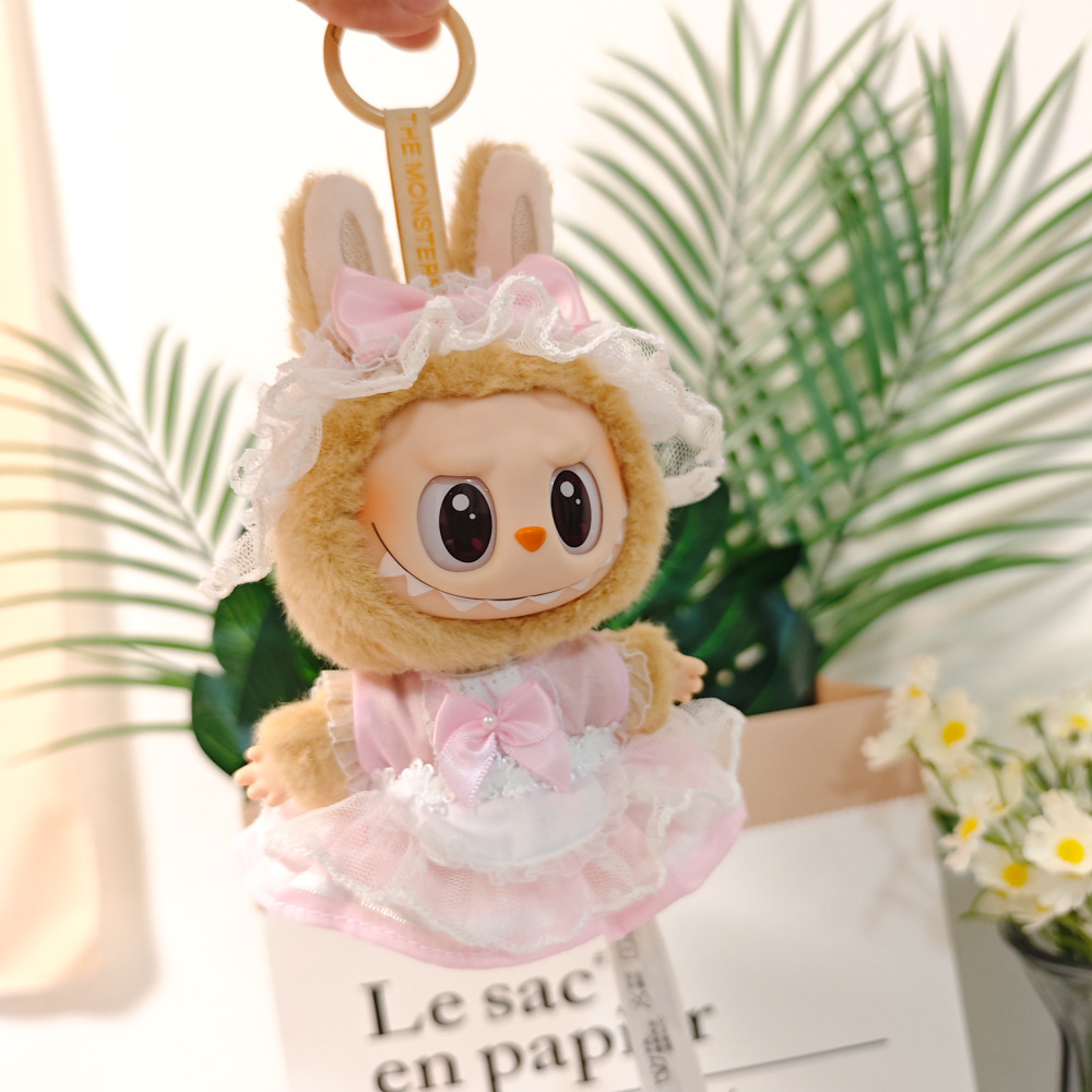 Hanya Pakaian Labubu Kain Labu Wol Plush Kotak Buta Gantungan Pakaian Bayi Gaun Putri Pernikahan