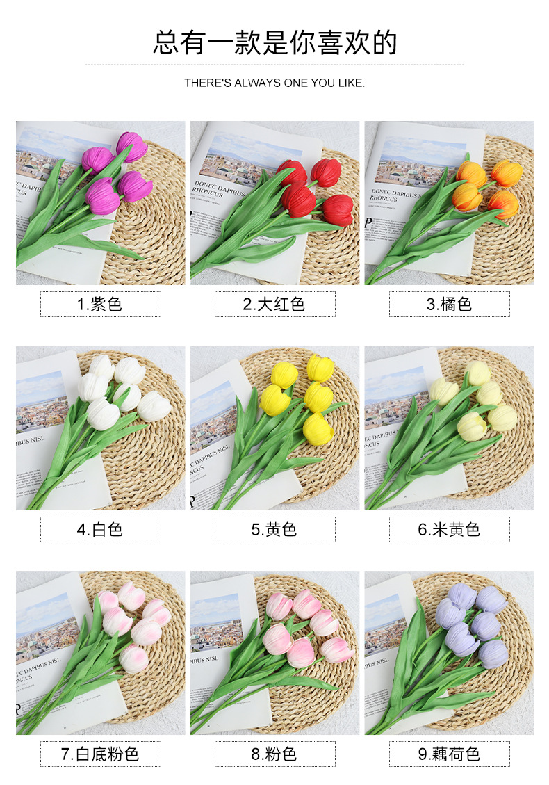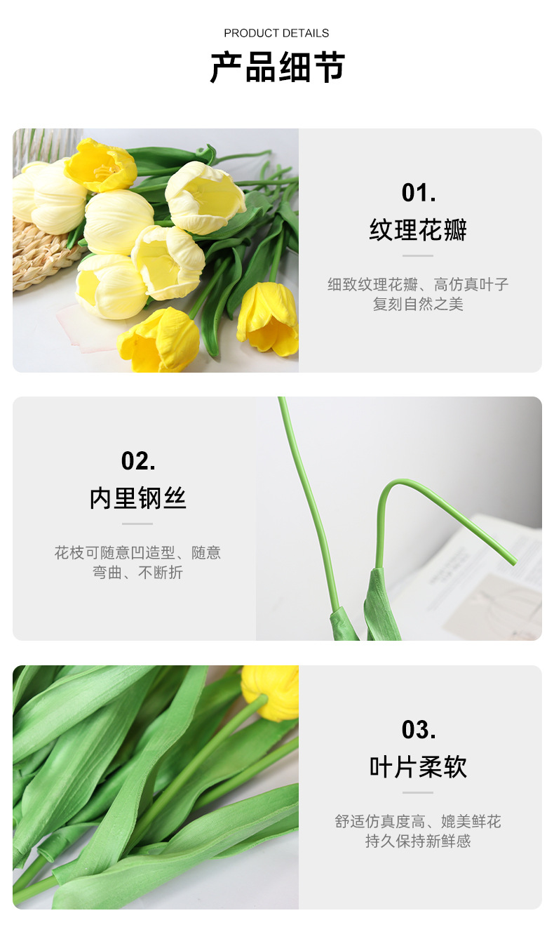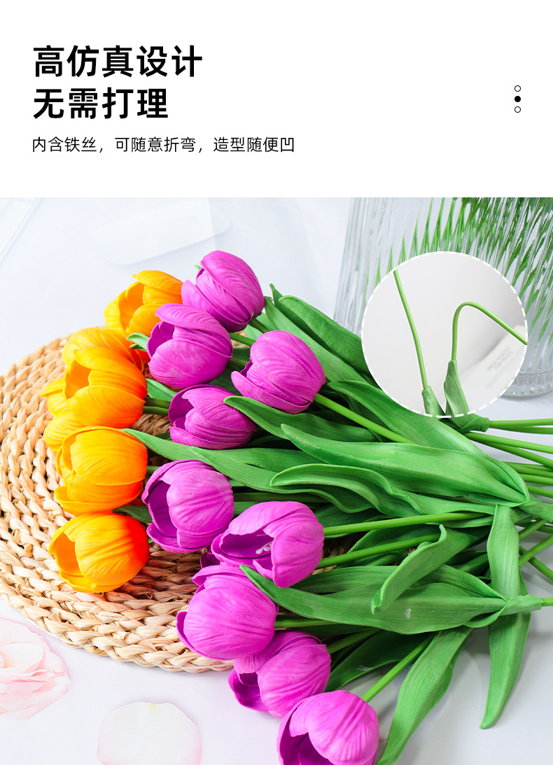 Baishun Tulip Bunga Buatan Pernikahan Buket Bunga Palsu Alat Peraga Fotografi Dekorasi Ruang Tamu Rumah Bunga Buatan PU Grosir