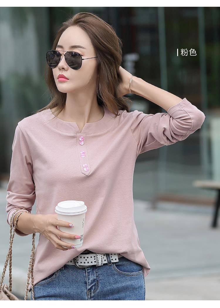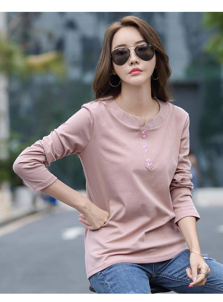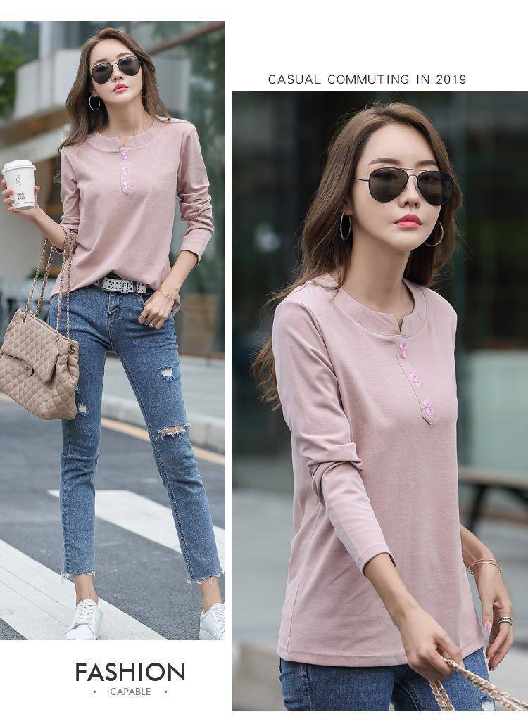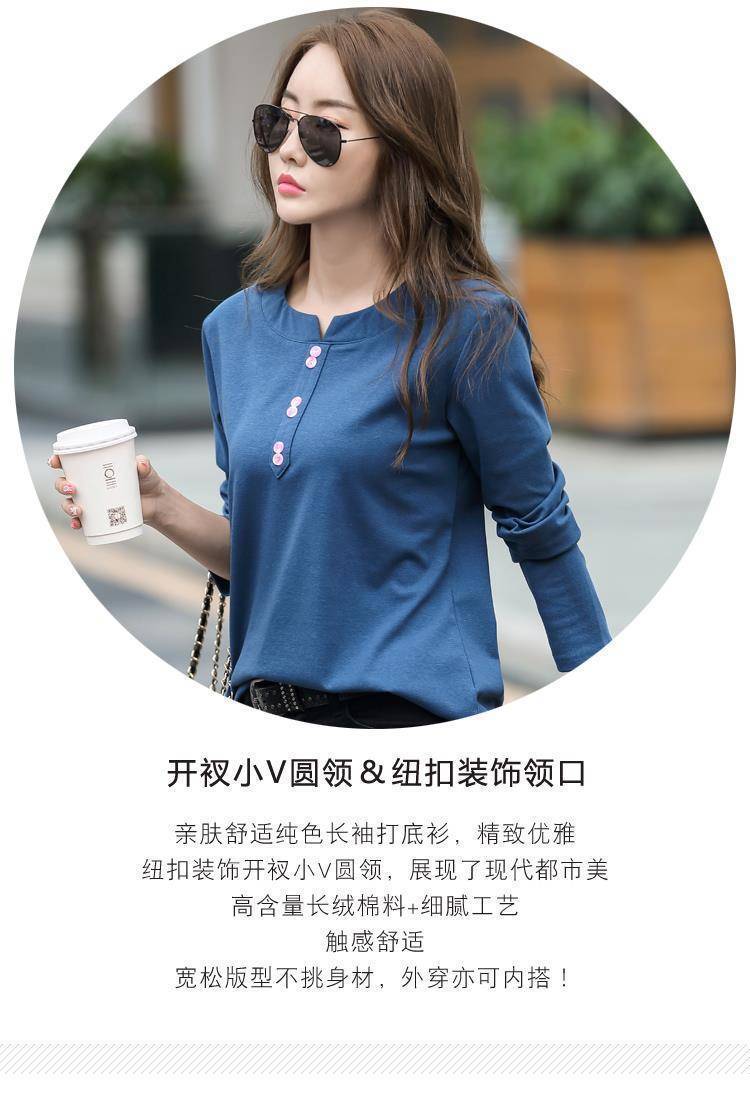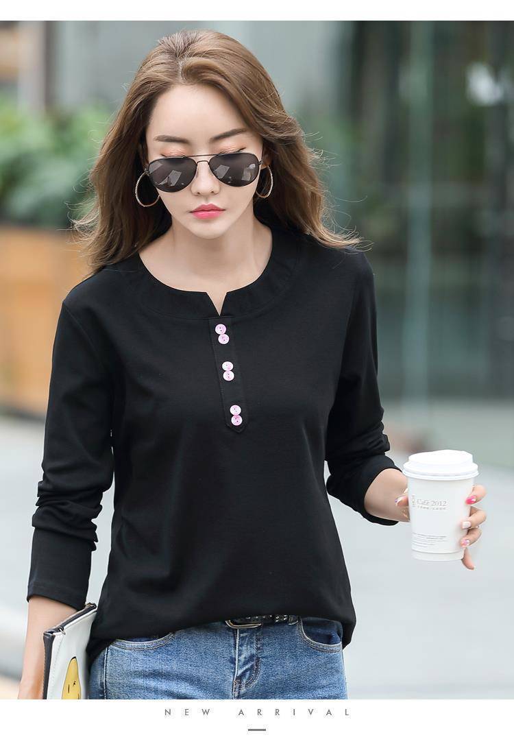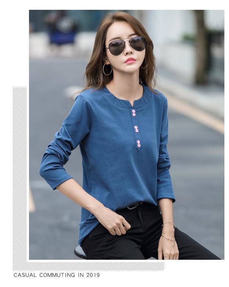 Pakaian Musim Semi dan Musim Gugur 2025 Kaus Lengan Panjang Ukuran Besar Katun Murni Baru Kaus Leher-v Longgar Wanita Kaus Bawahan Atasan Wanita Gaya Korea