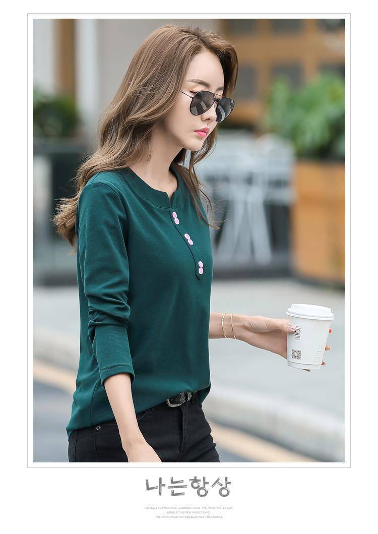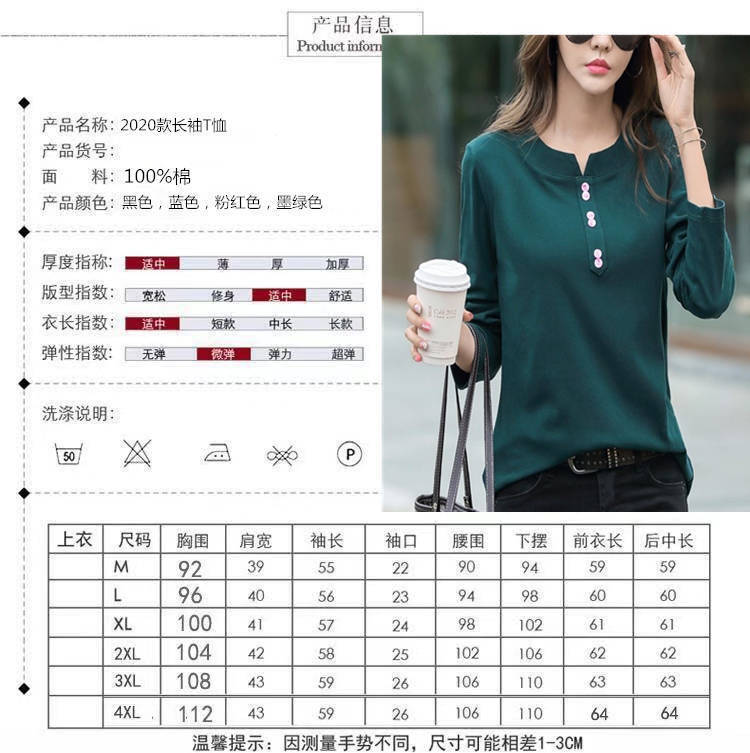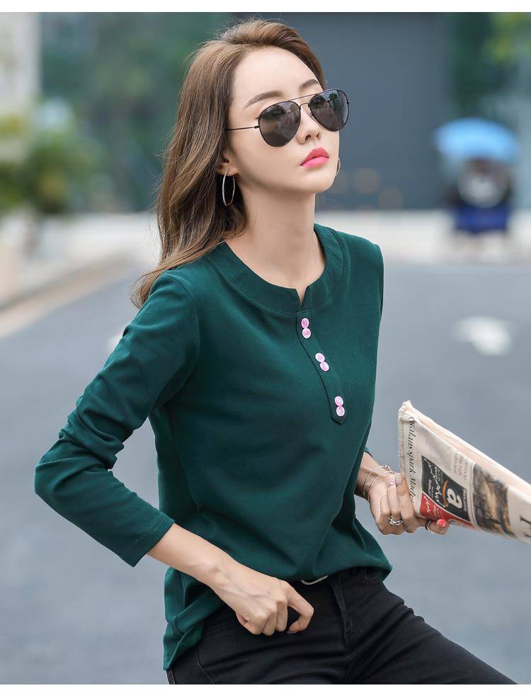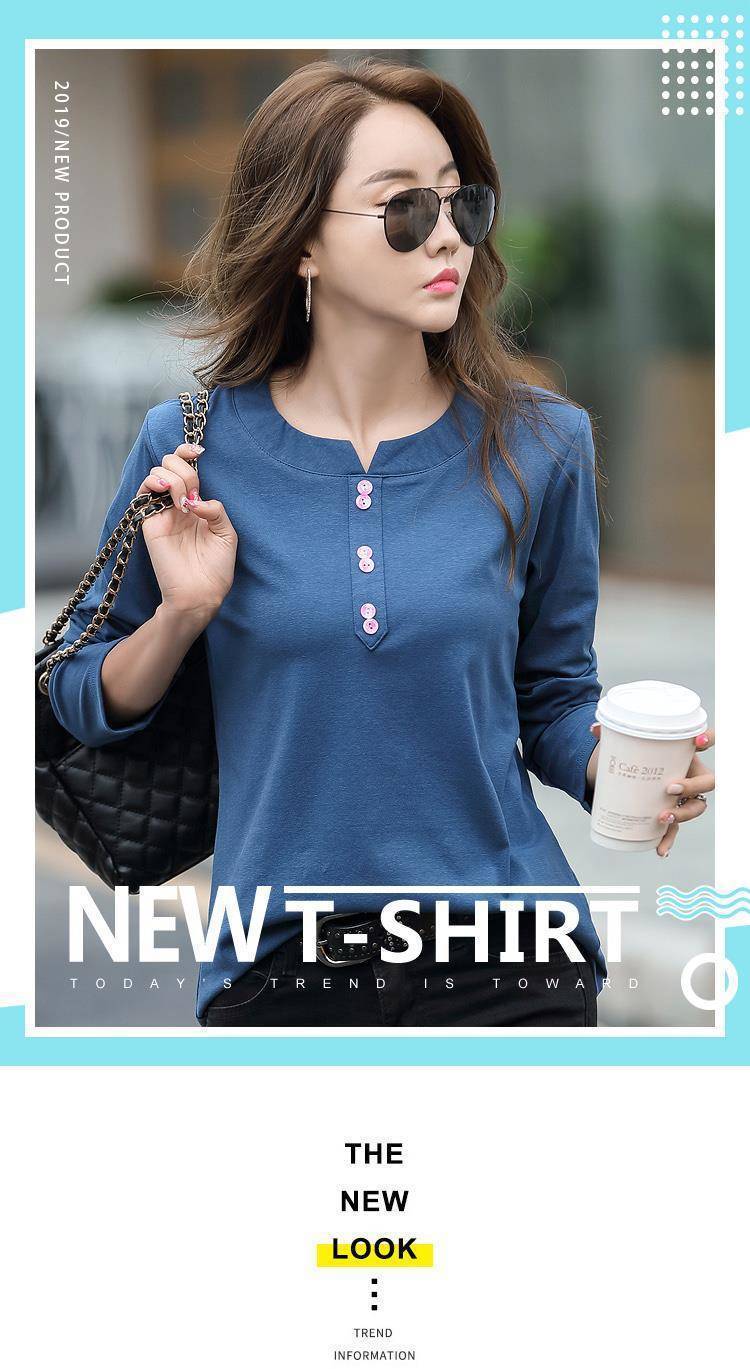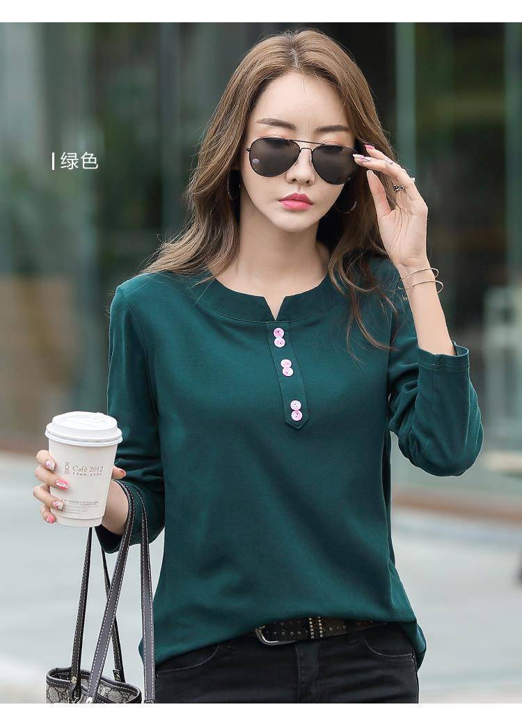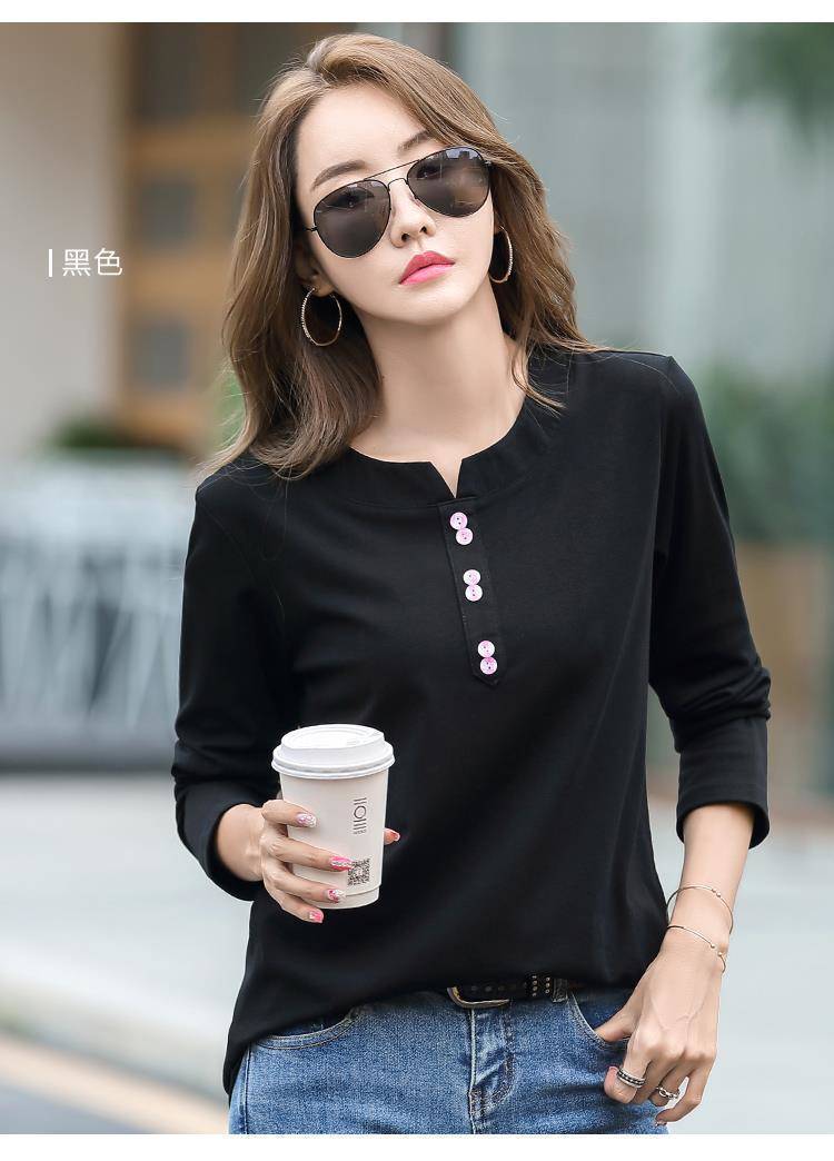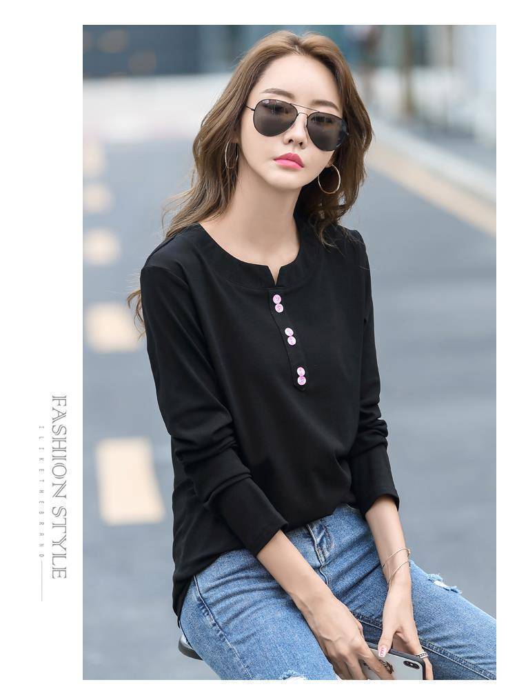 Pakaian Musim Semi dan Musim Gugur 2025 Kaus Lengan Panjang Ukuran Besar Katun Murni Baru Kaus Leher-v Longgar Wanita Kaus Bawahan Atasan Wanita Gaya Korea